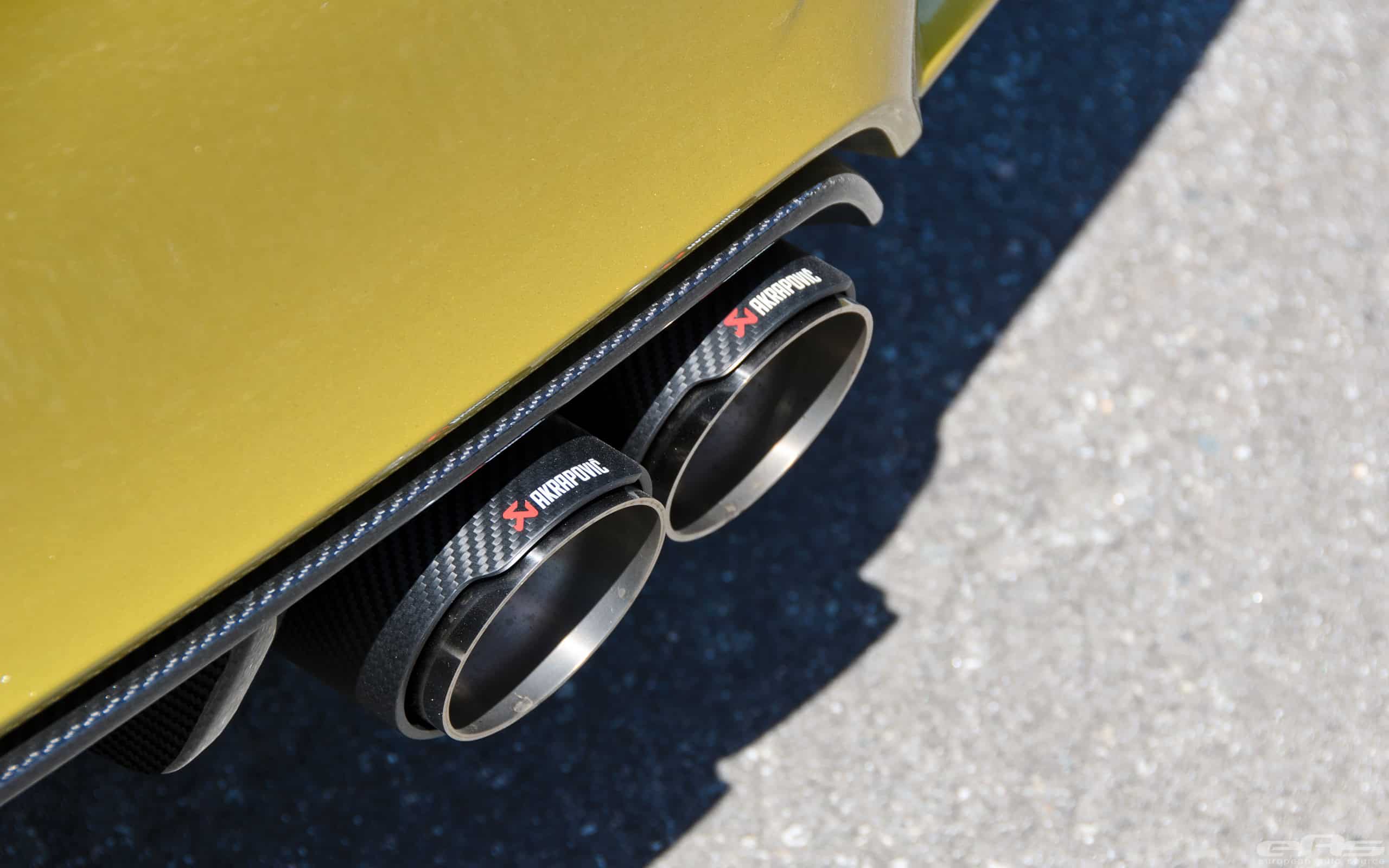 The first order of business was swapping out the OEM exhaust with something much louder. As seen on their previous project cars, they opted to install the Akrapovic Evolution Titanium Exhaust Syste but they added the carbon fiber tips this time. After that, they mated the new exhaust to a pair of Evolution Racewerks catless downpipes to create an even freer flowing system.