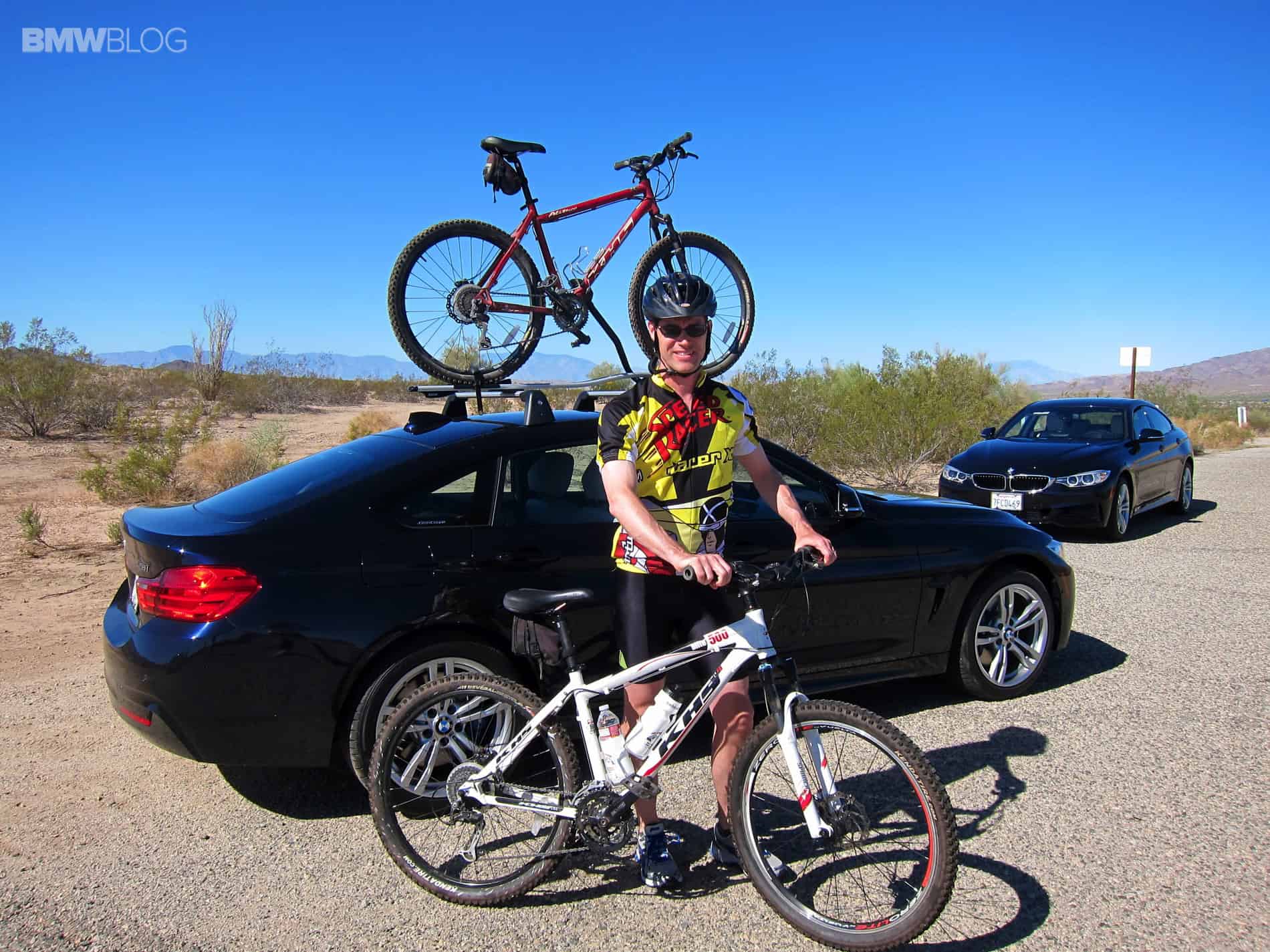To evaluate the 428i Gran Coupe’s highway manners we headed up Interstate 10 to the old training tank grounds for World War II in the Palm Desert. Here we also got to see BMW bike racks on the 428i Gran Coupe. As a side note, we did hit the desert on some mountain bikes there and the terrain was killer.  The desert sand was exhausting to pedal in because it was so soft but the scenery was gorgeous.