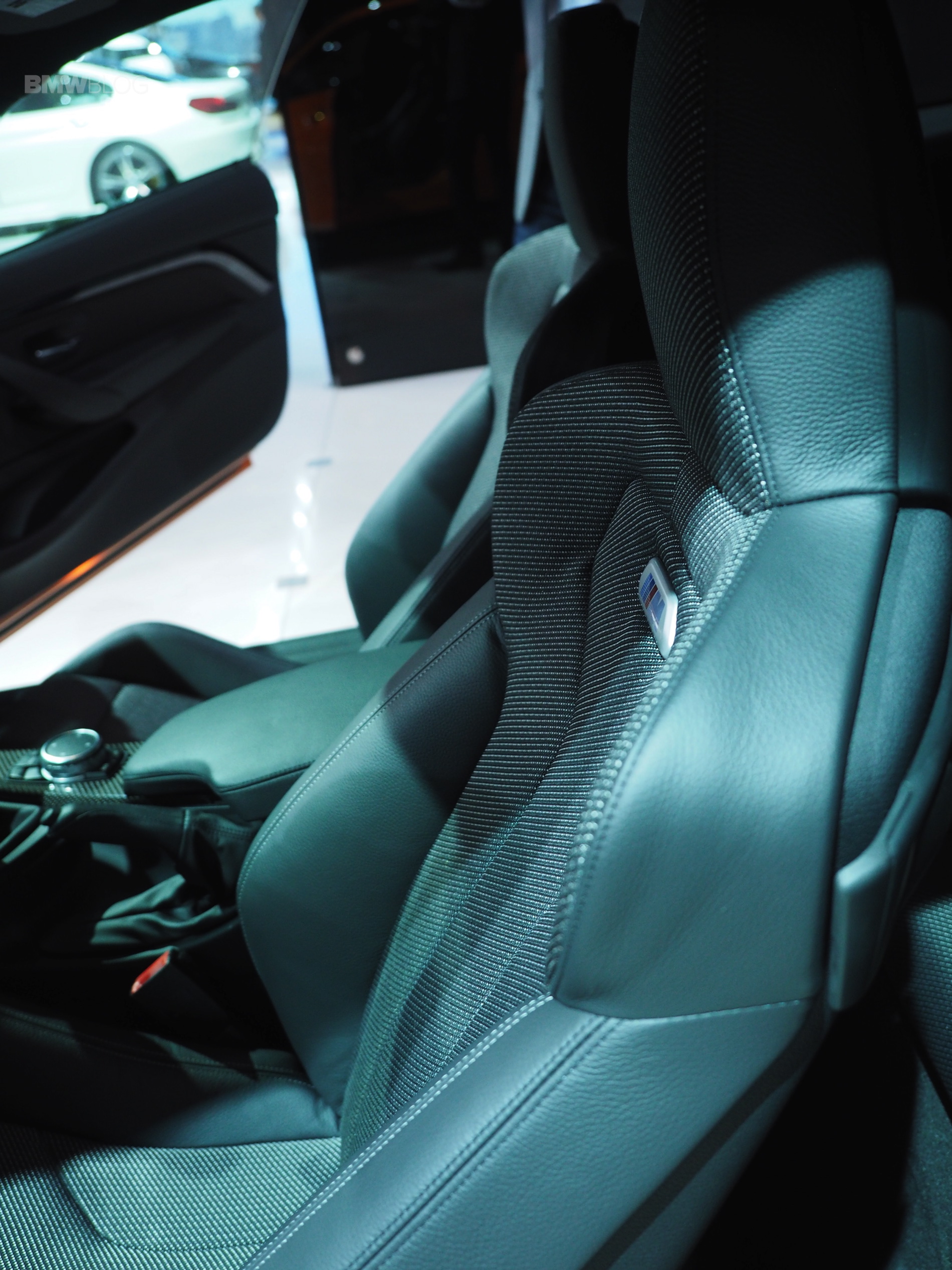The model displayed in LA also comes with a few M Performance Parts installed. At the front, the carbon fiber inserts are highly visible in the bumper, while in the rear, the M Performance trunk lid and rear diffuser give the car an exclusive and fast look.