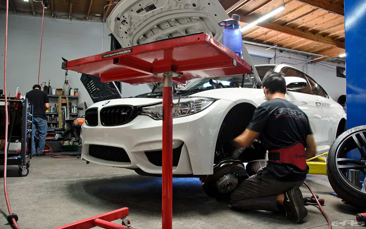 The folks over at European Auto Source got working on the car and first installed the KW HAS (Height Adjustable Lowering Spring Sleeve-Over Kit). KW’s sleeve kit for the F80/F82 M3/M4 allows a large range of height adjustment while retaining the factory electronic damping control. The factory spring perches are removed from the front dampers, and KW’s own threaded height-adjustable perches are installed.