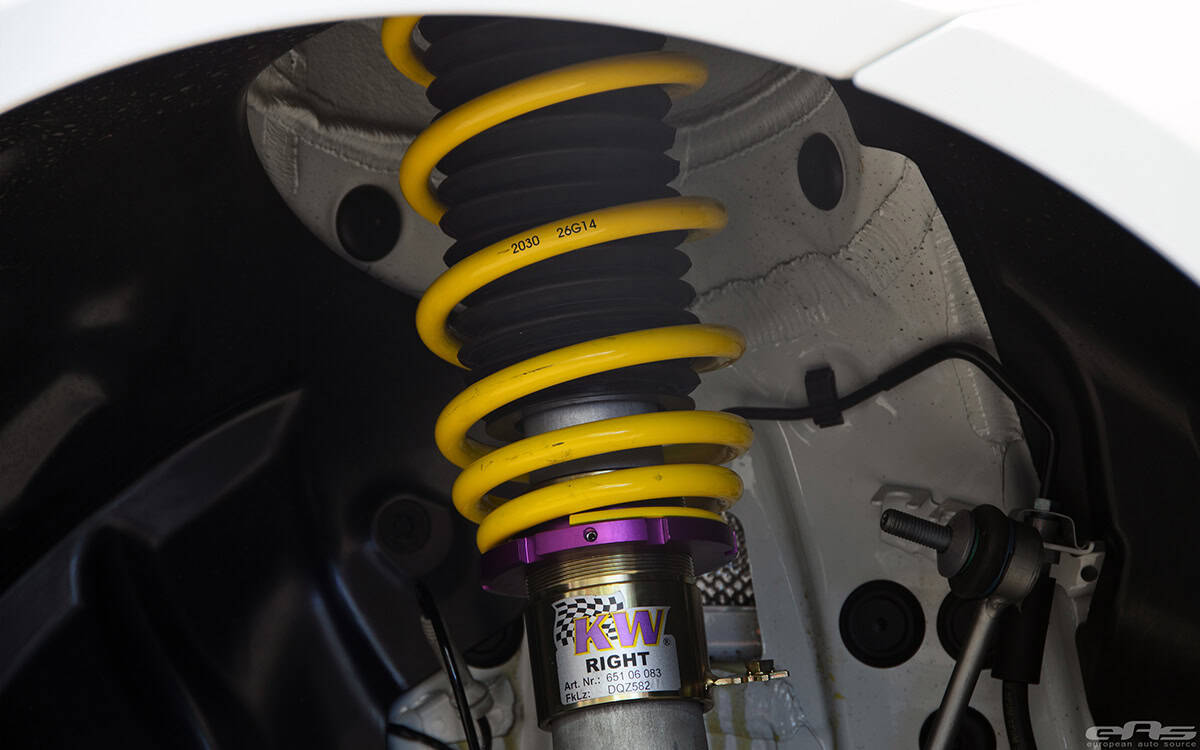 The kit includes progressive rate lowering springs for each corner of the car, height adjustable spring perches for the front and rear, strengthened and shortened bump stops and KW shock sleeves to protect the OE BMW dampers. The KW H.A.S. kit is EDC compatible.