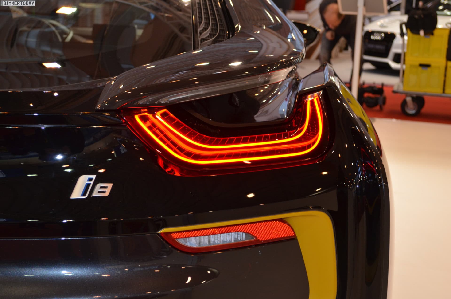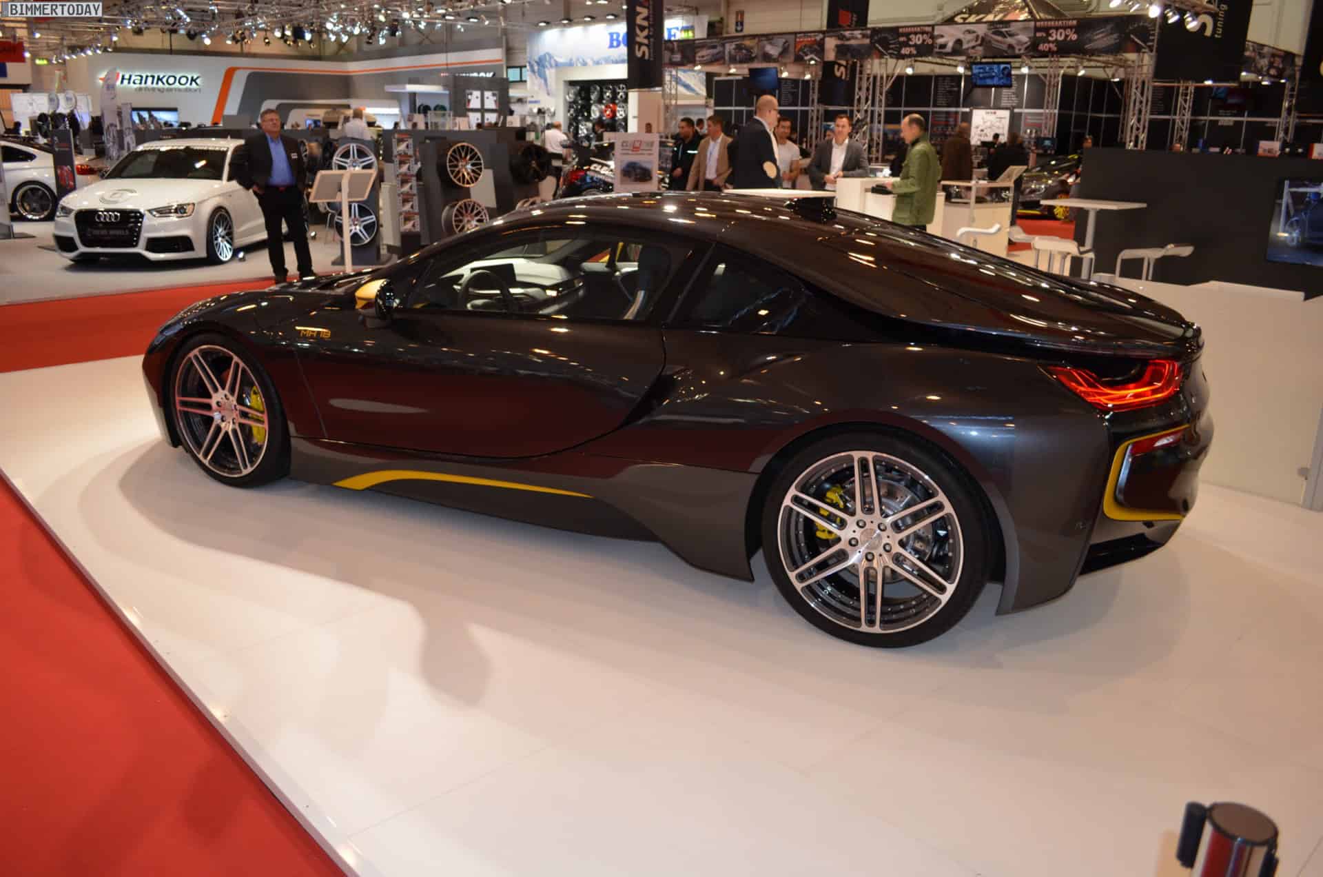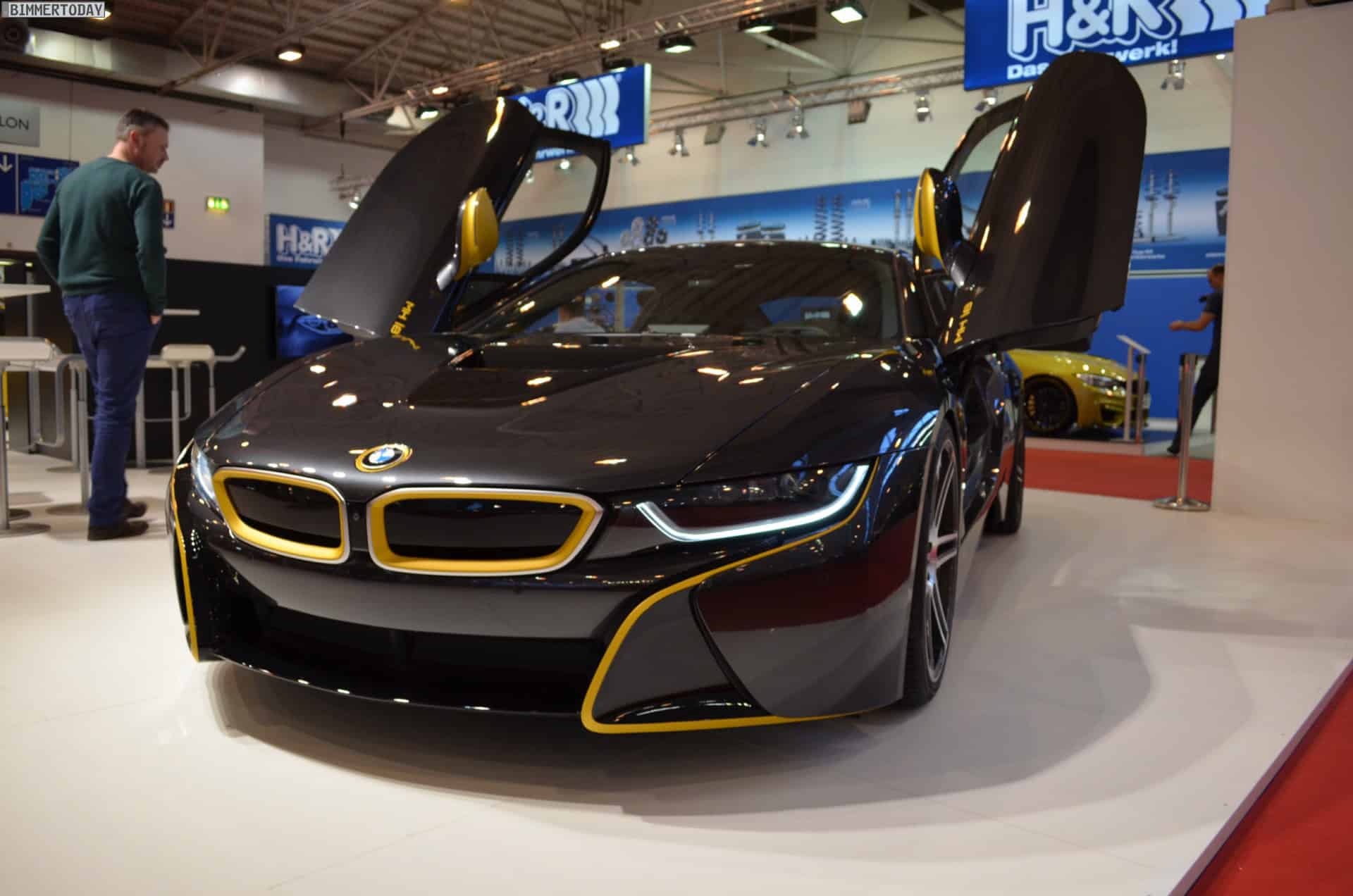 The MH2 400 WB employs a similar paint job as the i8, a dark base color with yellow accents, giving the car an even more aggressive and flashy look.