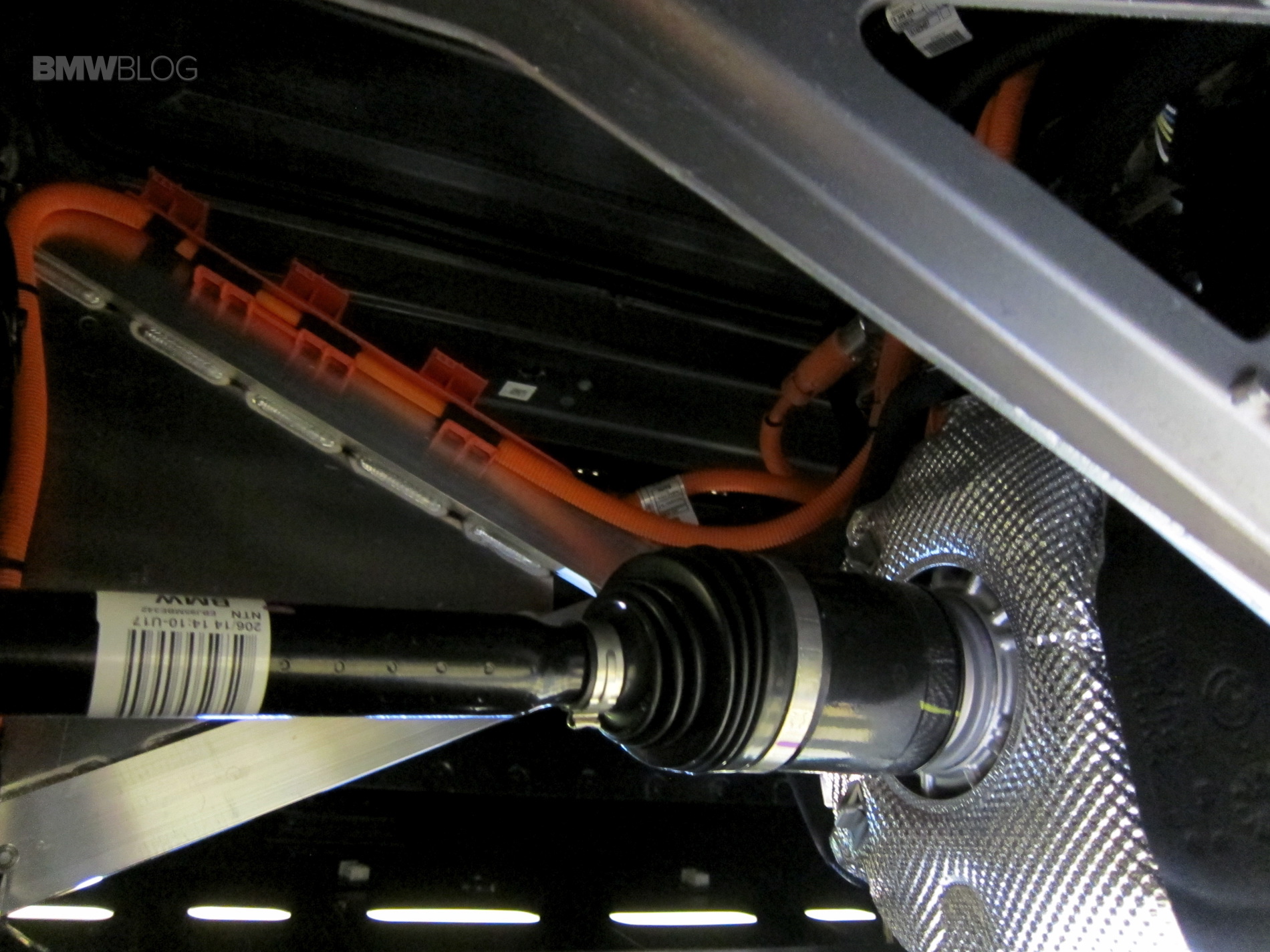 In the i3 BEV, on the passenger side, there is a large cavity – this is where the 600 cc two cylinder engine/generator lives. The i3 REx has an exhaust that aims directly at the ground. This area is just covered up with a panel in the i3 BEV.