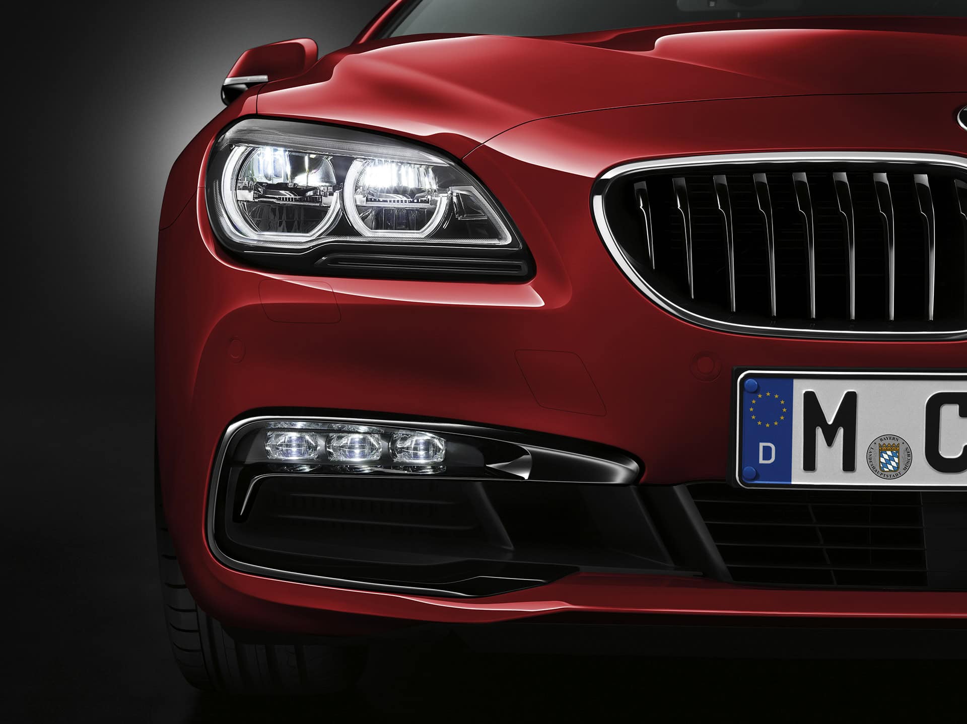 The new contours of the kidney grille bars (in aluminum matt on the 650i variants and black on 640i models) underline the forward-surging stance of the grille. The new front apron, whose lower air intake is now a single stylistic unit that accentuates the 6 Series’ width, radiates sports performance and solidity. The front foglamps, which are positioned at the far outer edges of the front end, consist of three adjacent LED units and now feature a decorative surround. This trim element is chrome on the new BMW 6 Series Convertible and comes in high-gloss black for the new 6 Series Coupe and Gran Coupe.