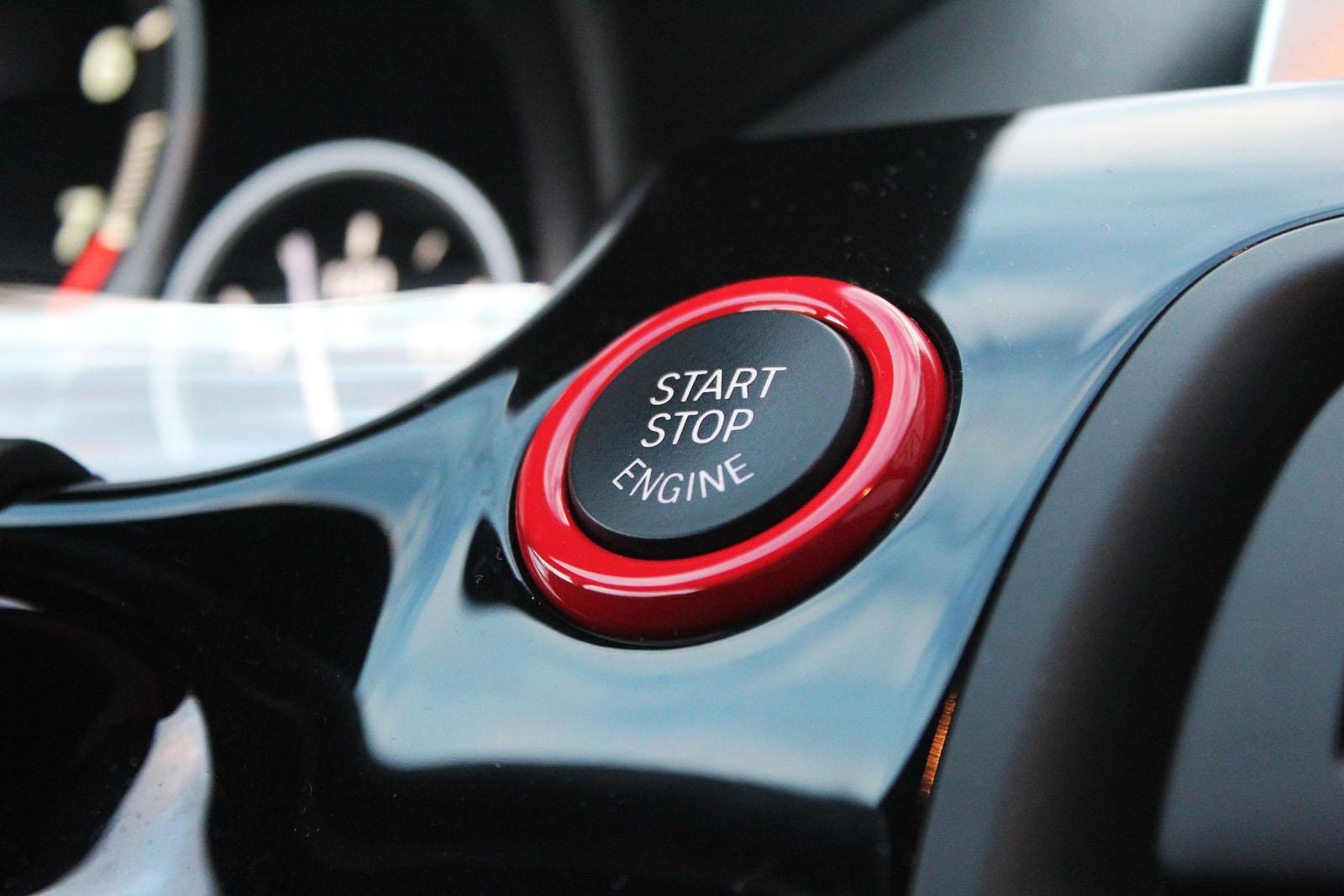 Inside, the cabin features a gloss black trim with red accents and a sporty steering wheel.