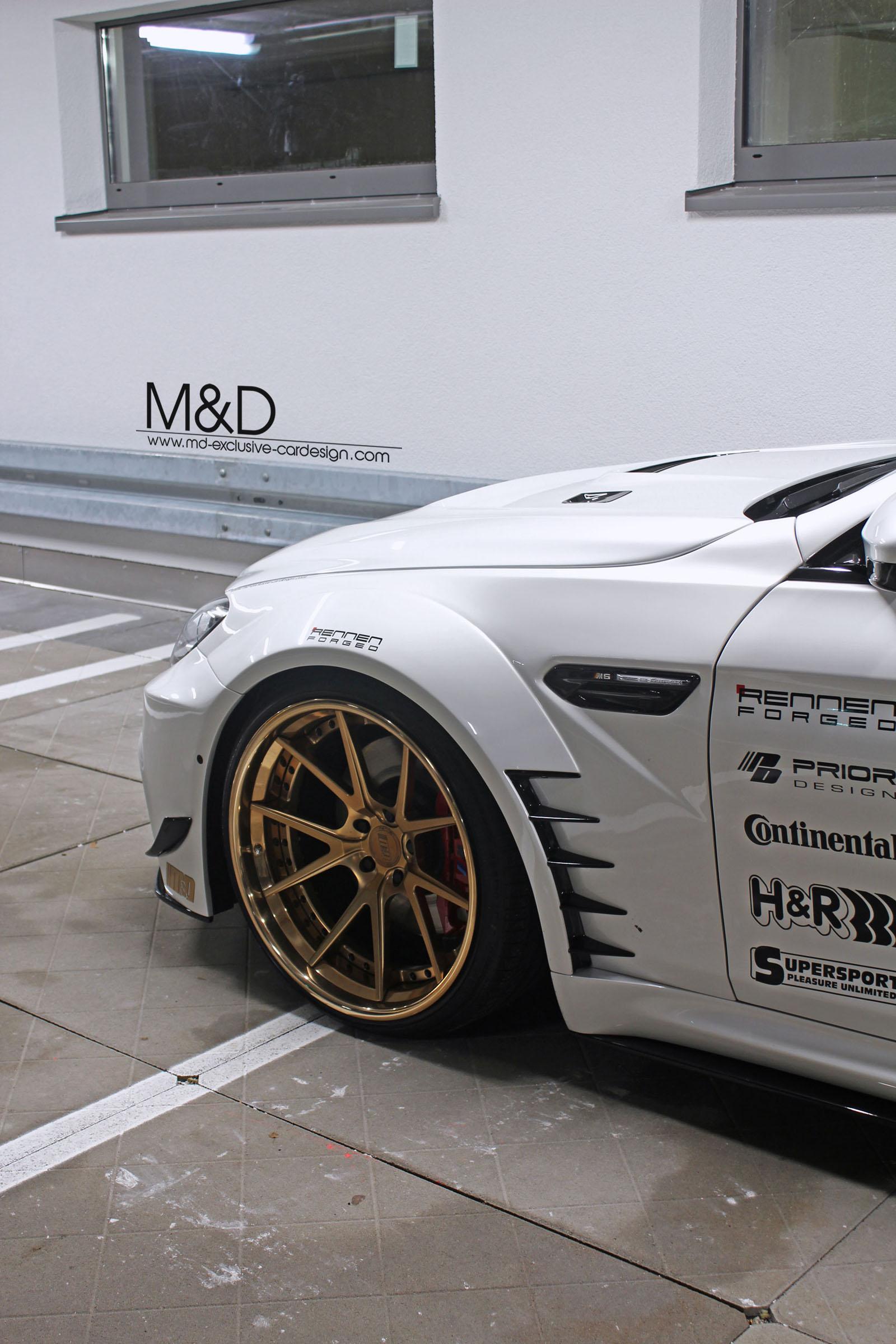 The exterior of the 640i gets the PD6XX widebody kit from the Prior Design M6 project. The aero upgrades include new front and rear bumpers, revised side skirts and wider fenders.