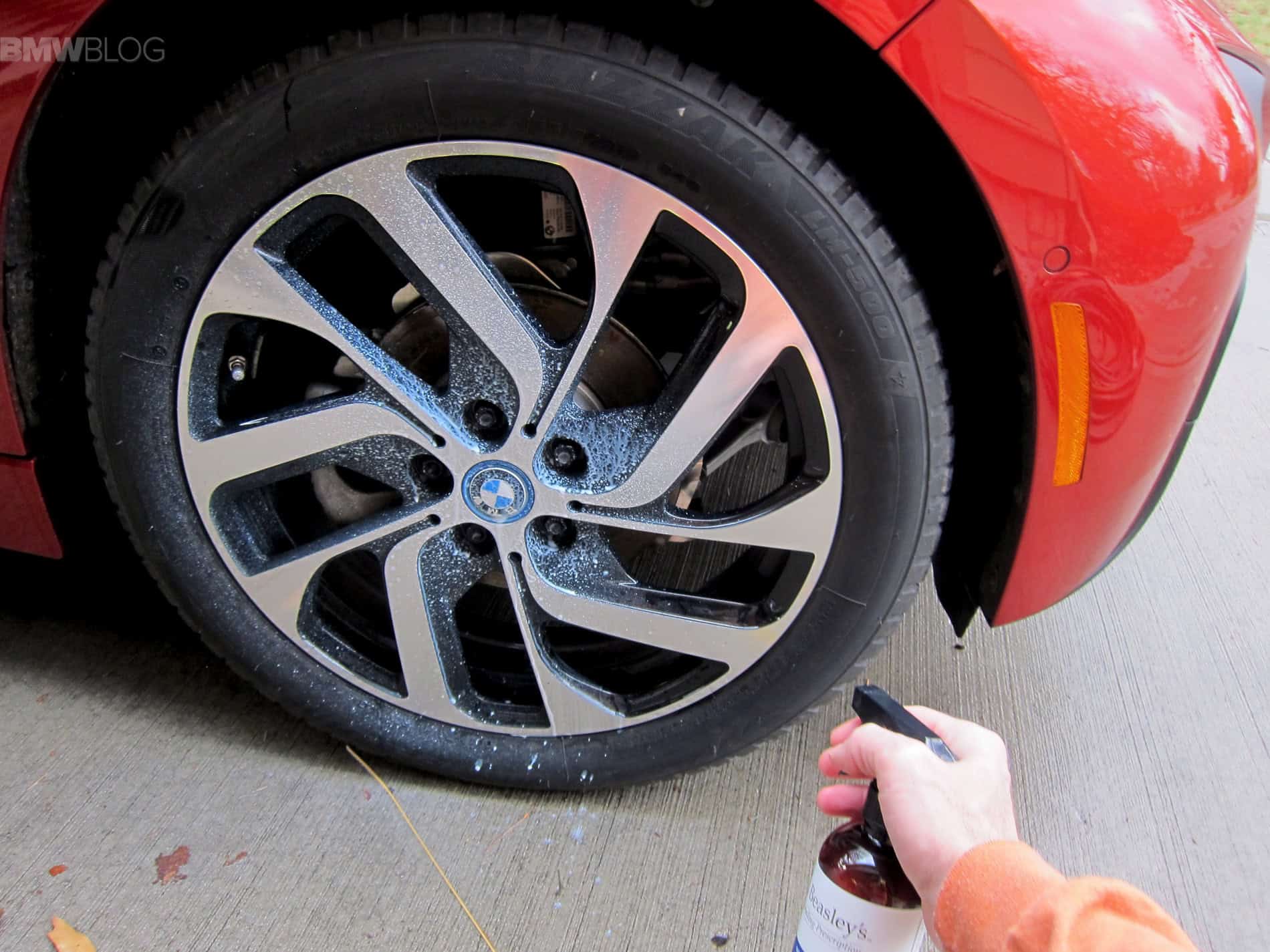 The to finish the i3’s look, I tried their Tire Conditioner. It is a surfactant free tire conditioner that penetrates the rubber to moisturize and revitalize the rubber. This helps maintain a tires appearance and prevent browning. It doesn’t sling off or break down in water. It made our i3’s Blizzak’s look new again.