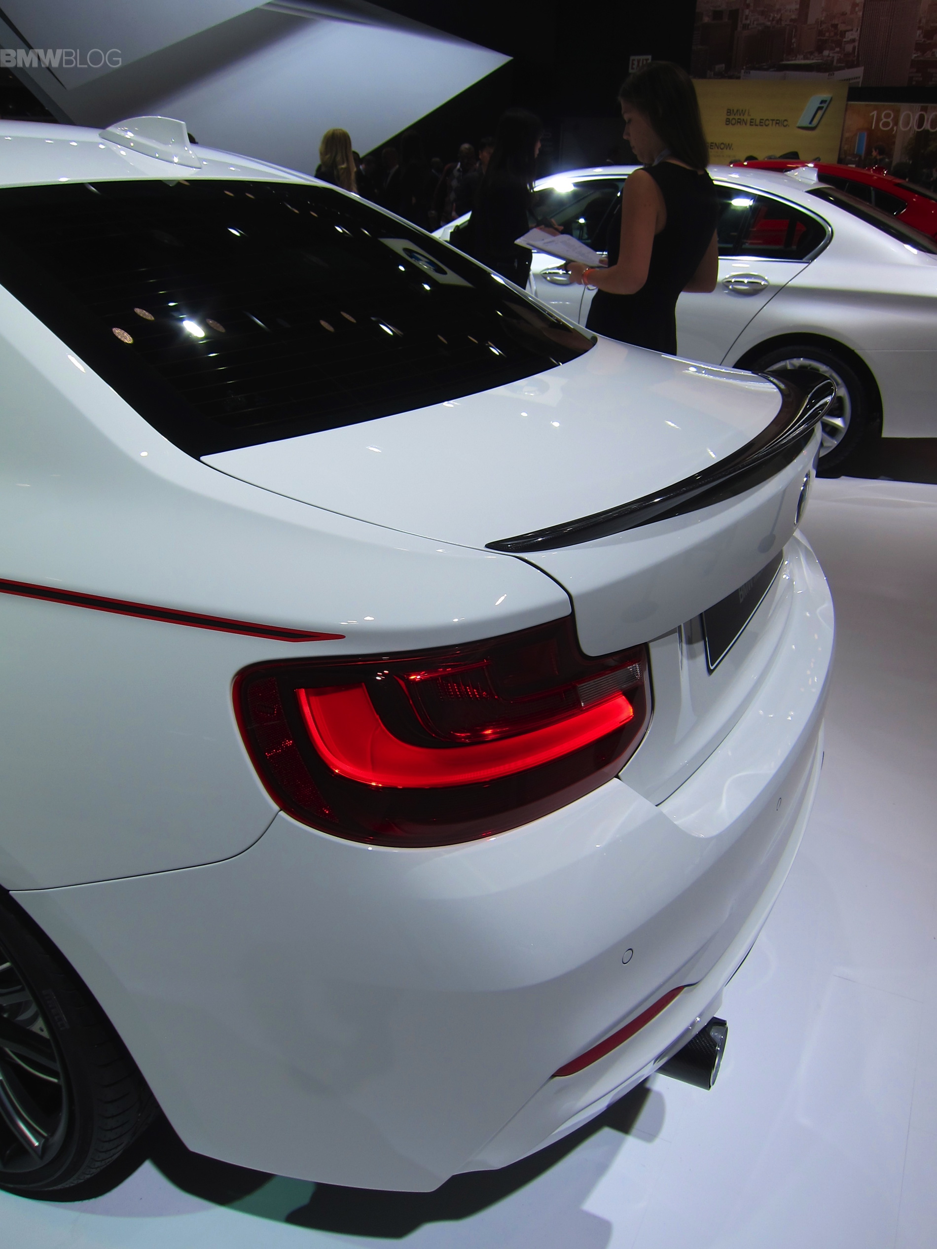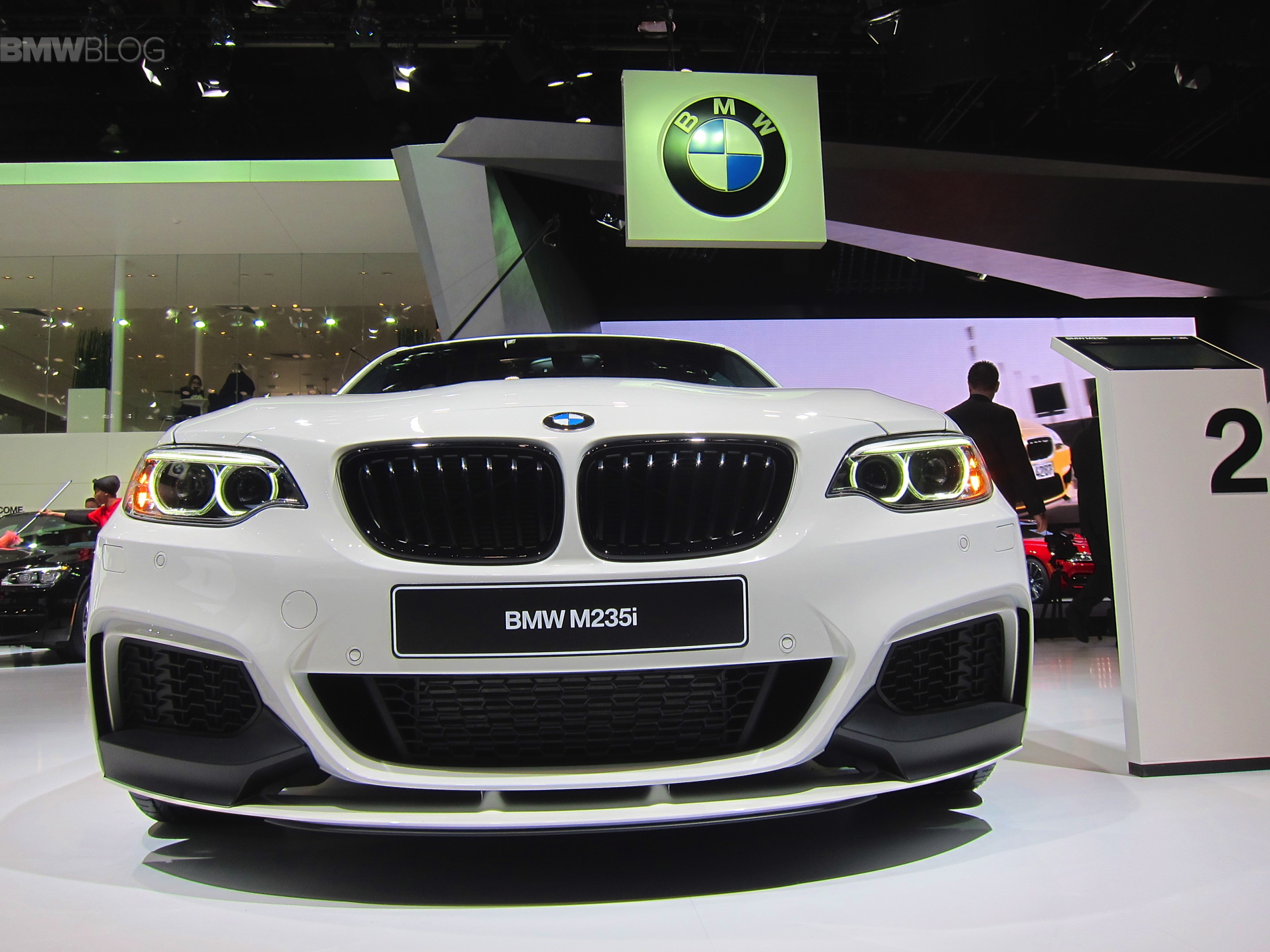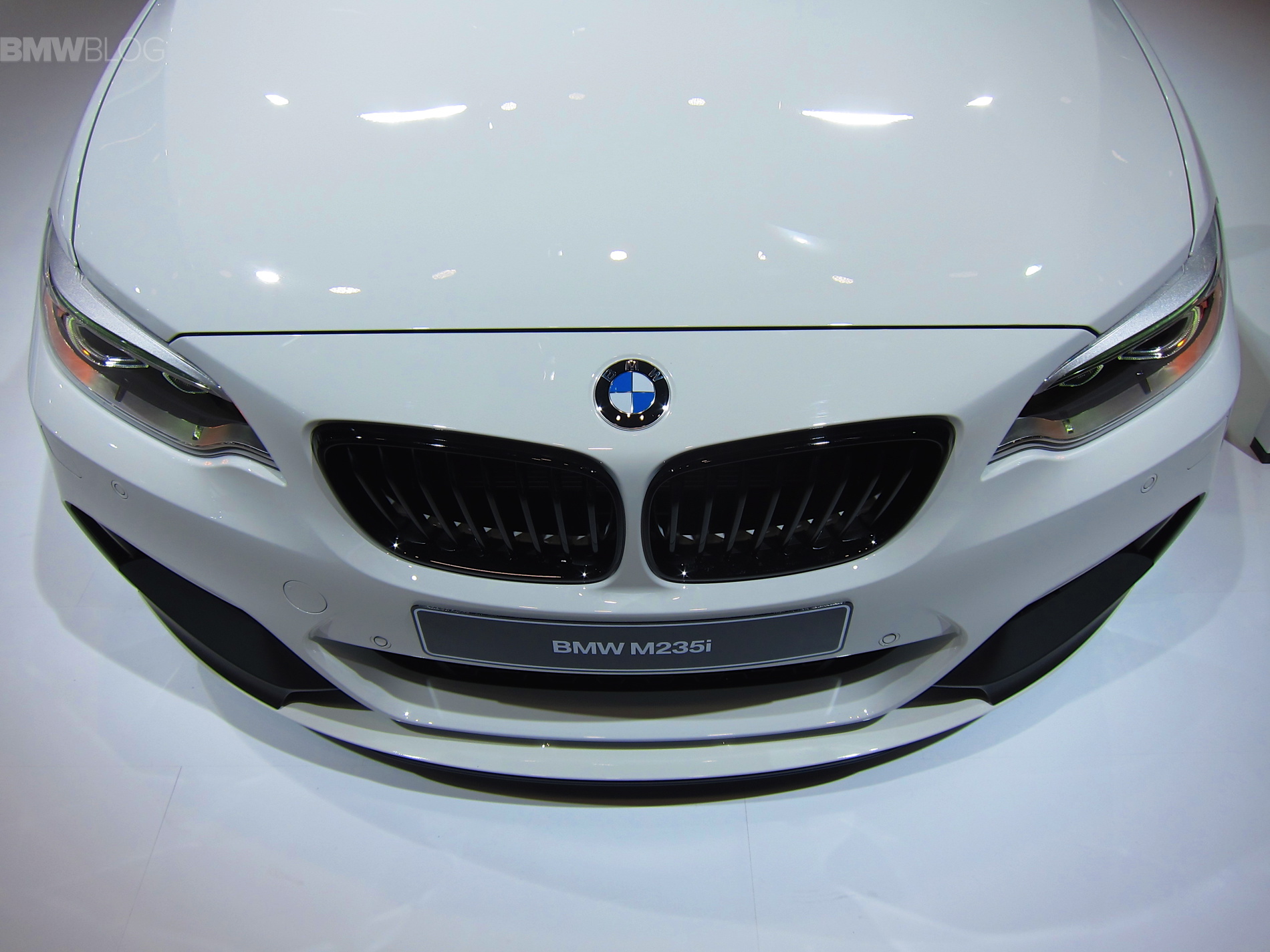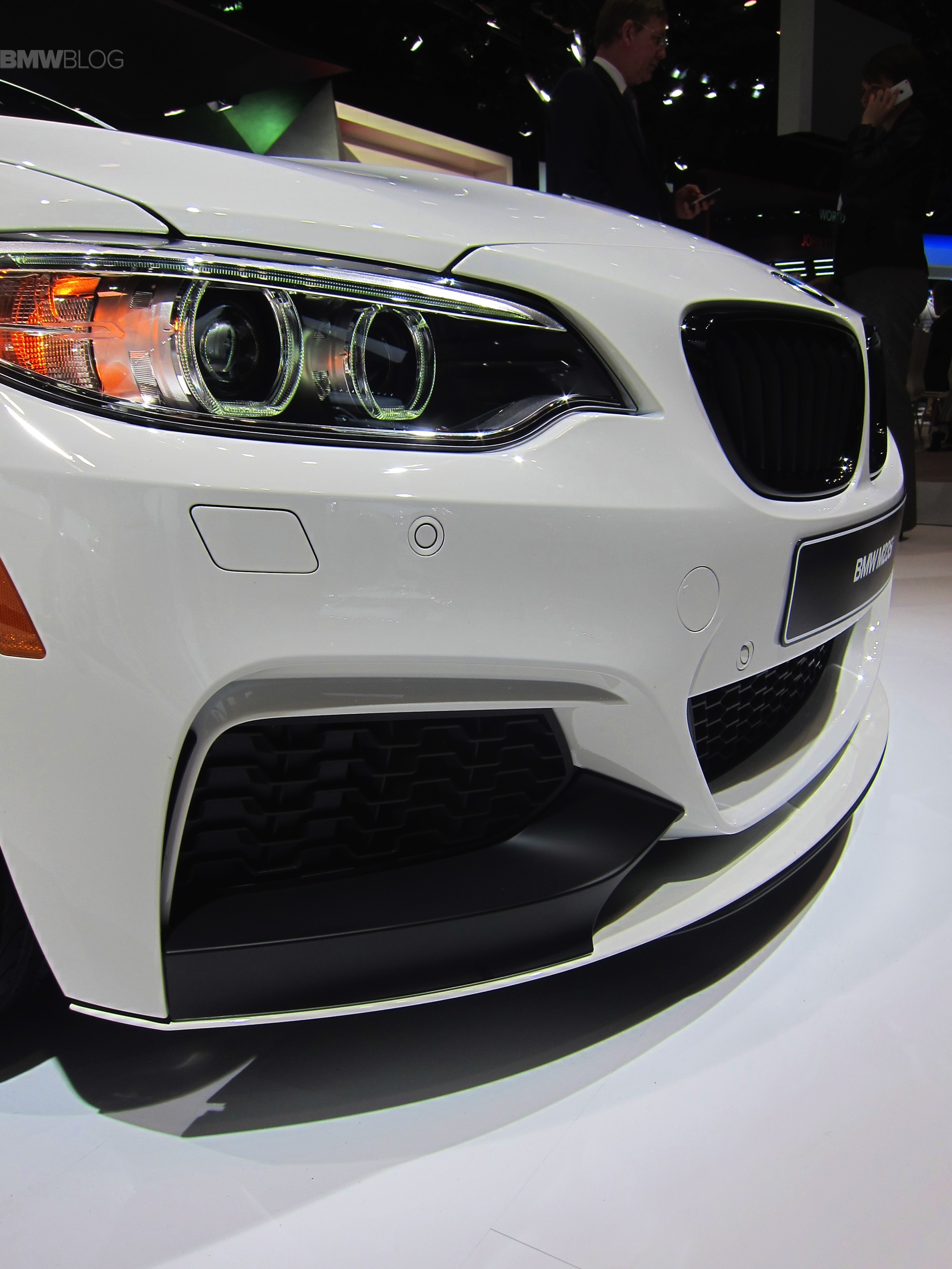 At the BMW exhibit in Detroit, one model that stands out is an Alpine White BMW M235i with all the possible M Performance Parts.