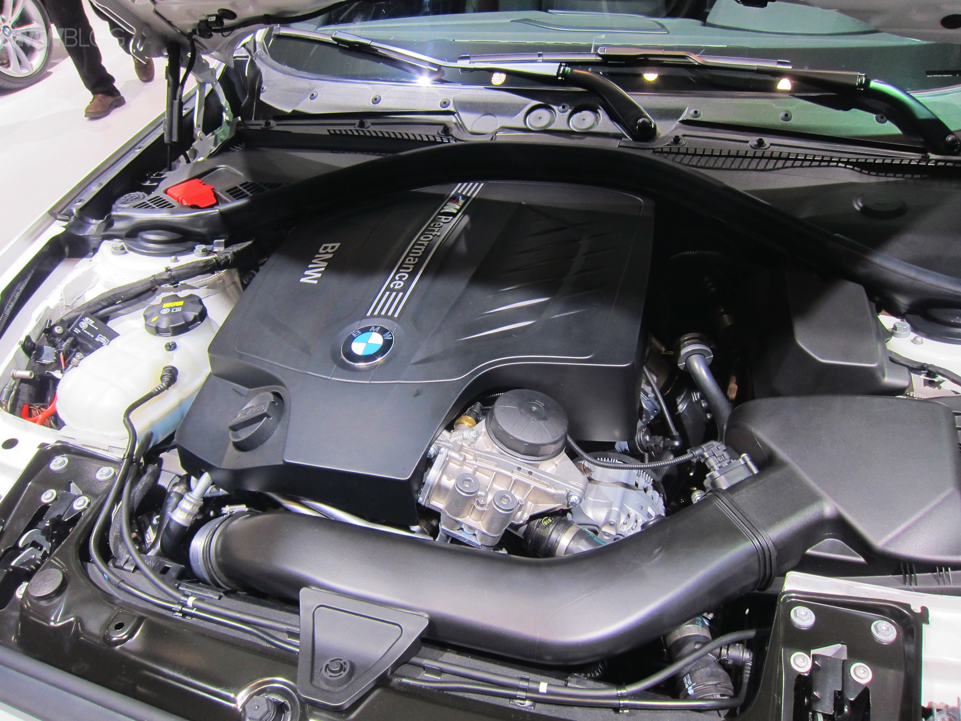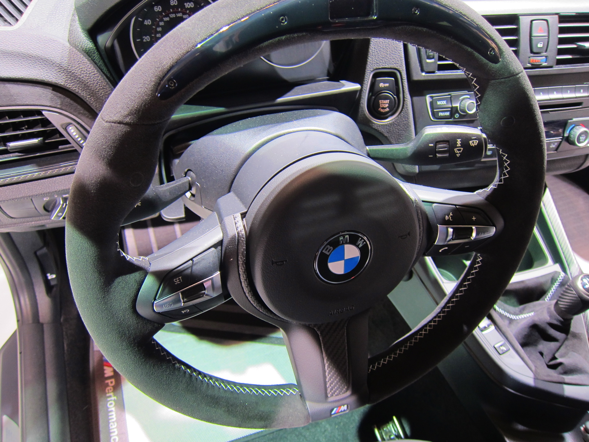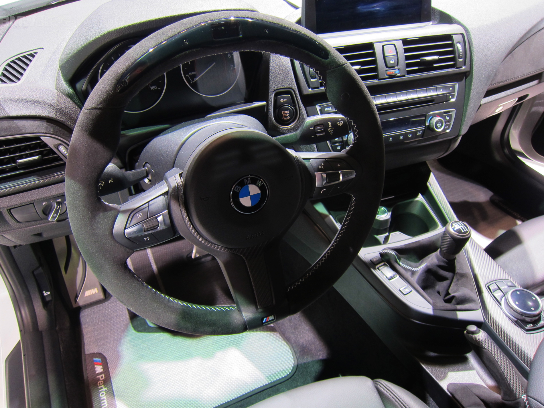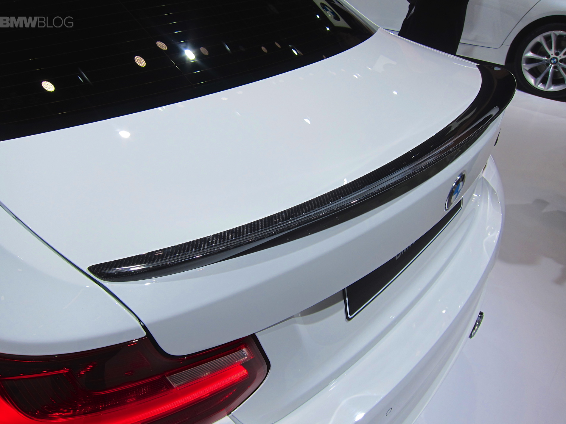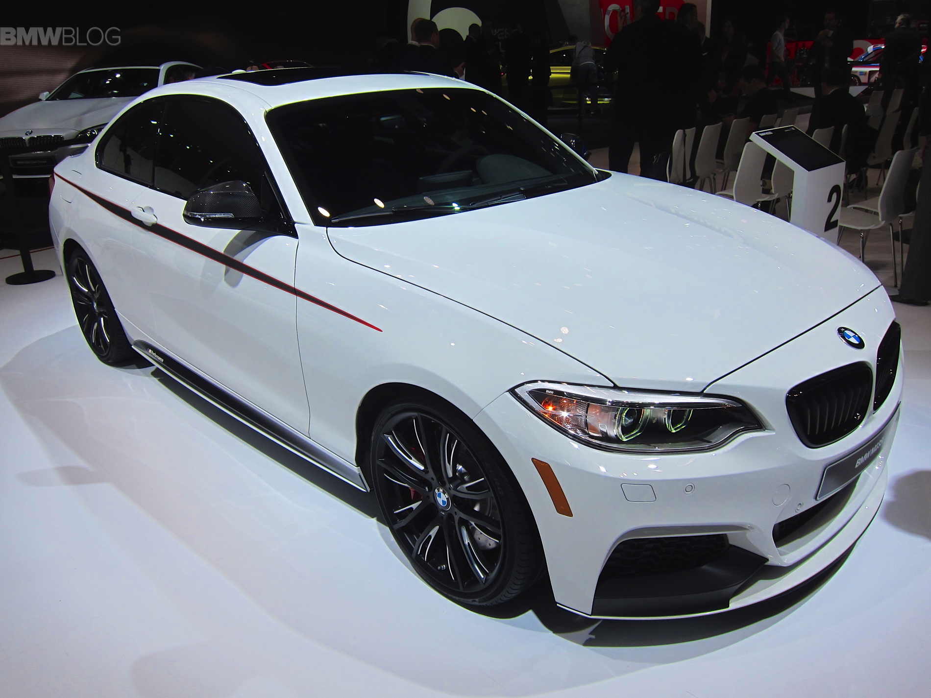 At the BMW exhibit in Detroit, one model that stands out is an Alpine White BMW M235i with all the possible M Performance Parts.