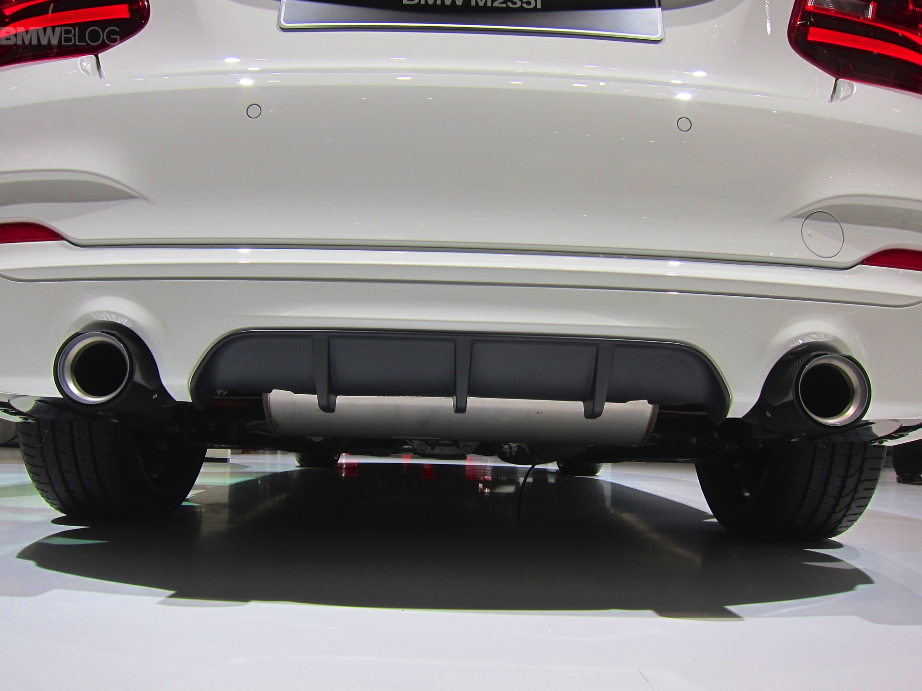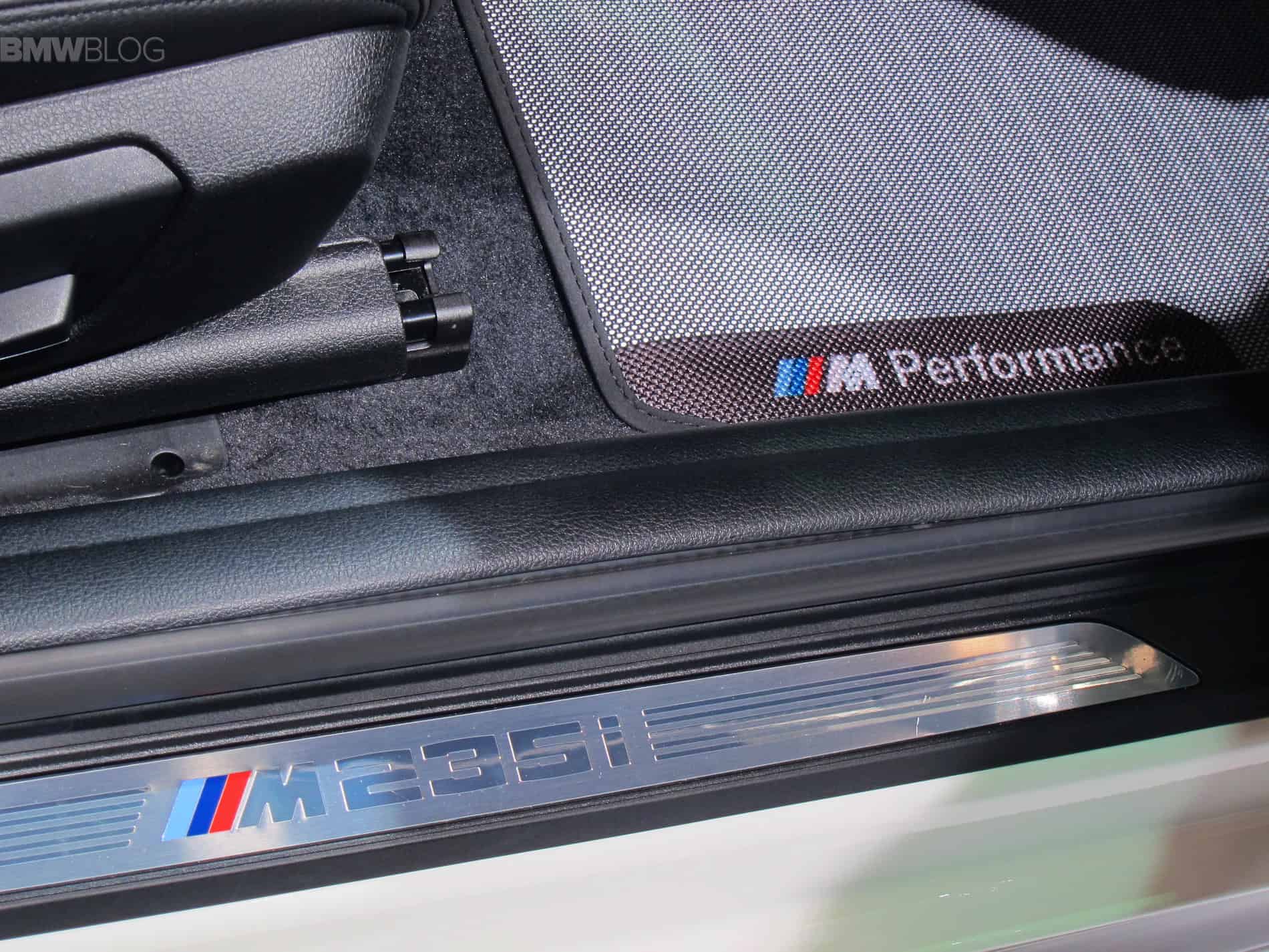The M235i M Performance Parts comes with the full M Performance Aerodynamics kit – M Performance rear diffuser, Black kidney grills and carbon fiber front splitter, M Performance Side Skirts with branding, M Performance Exhaust System, Carbon Mirror Caps – and segment exclusive 19” wheels for the M235i.
