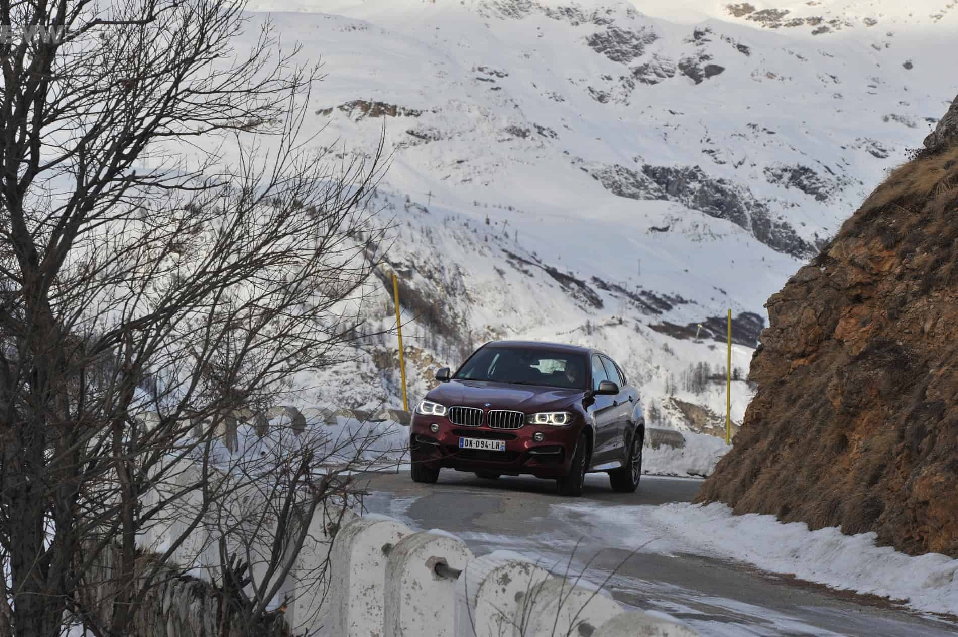 The new 2015 BMW X6 M50d goes in the French Alps for some winter driving.