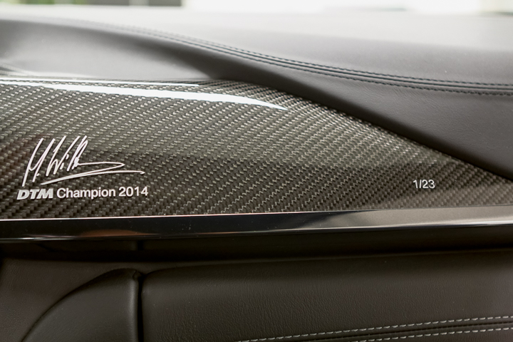 Inside, the door sill plates bear Marco Wittmann’s autograph, while carbon interior trim strips – likewise signed by the 24-year-old from Fürth, Germany – feature “DTM Champion 2014” lettering and the car’s serial number.