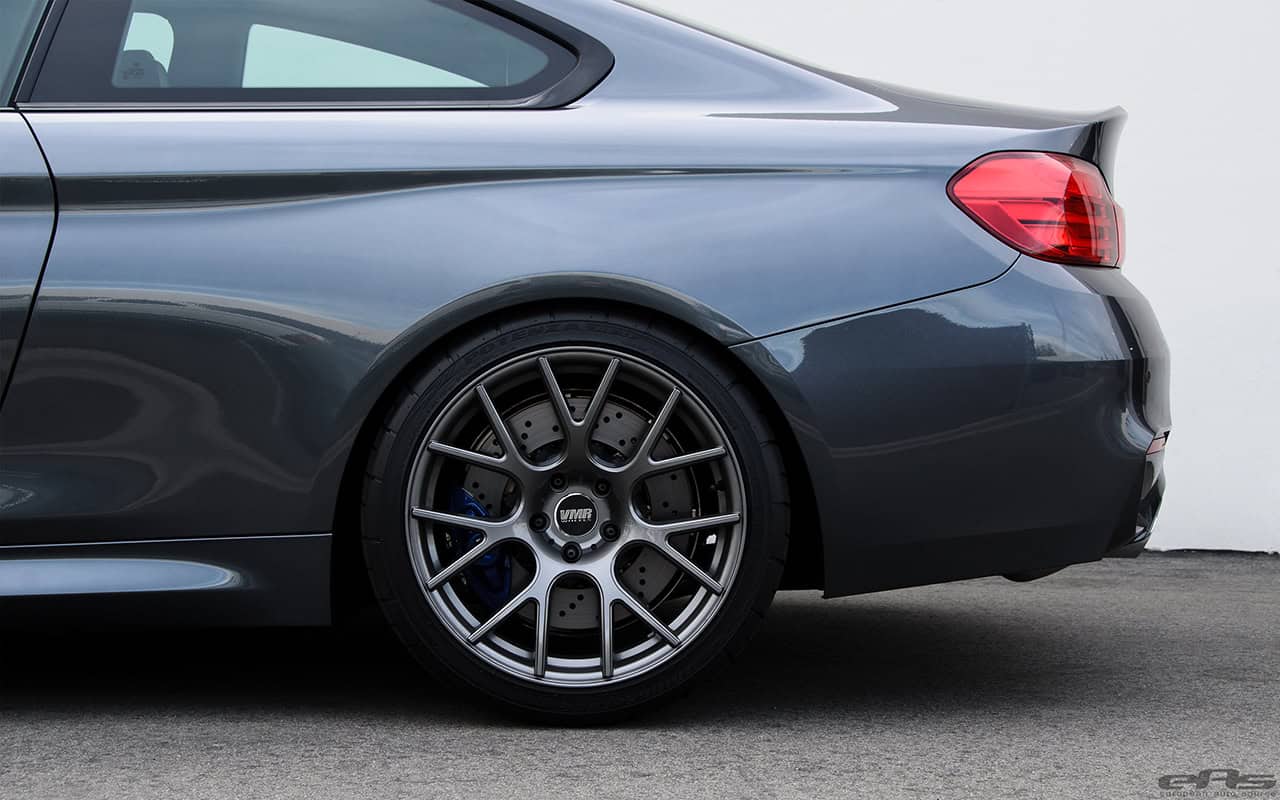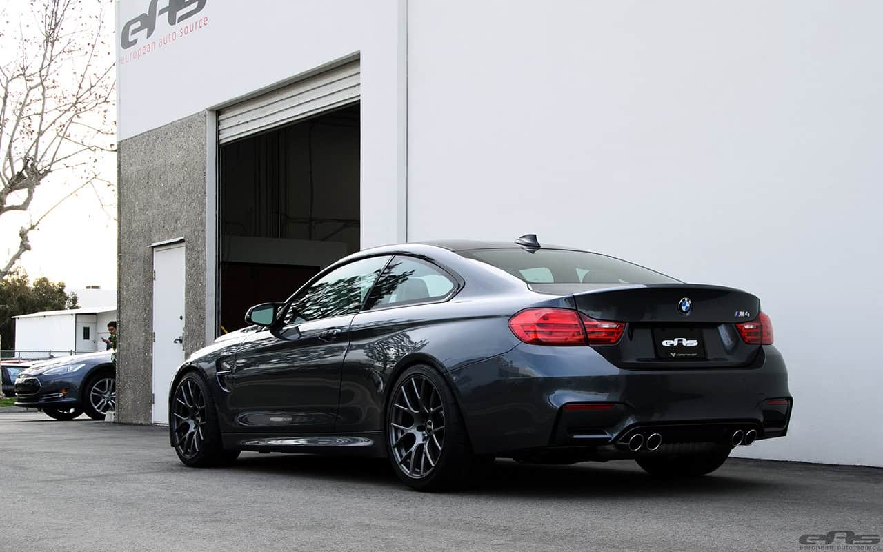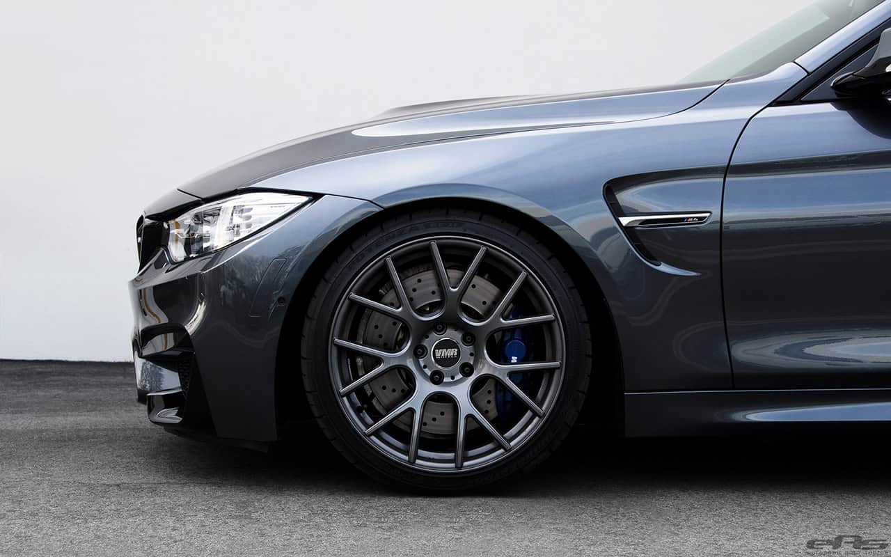 It’s all about the wheels with this build! The Mineral Gray BMW F82 M4 certainly looks spectacular even in stock form, but the addition of some aftermarket wheels puts the performance vehicle over the top completely. European Auto Source installed on the car a set of VMR Wheels, a JB4 performance tune, some cosmetic mods while lowering the car to enhance its stance.