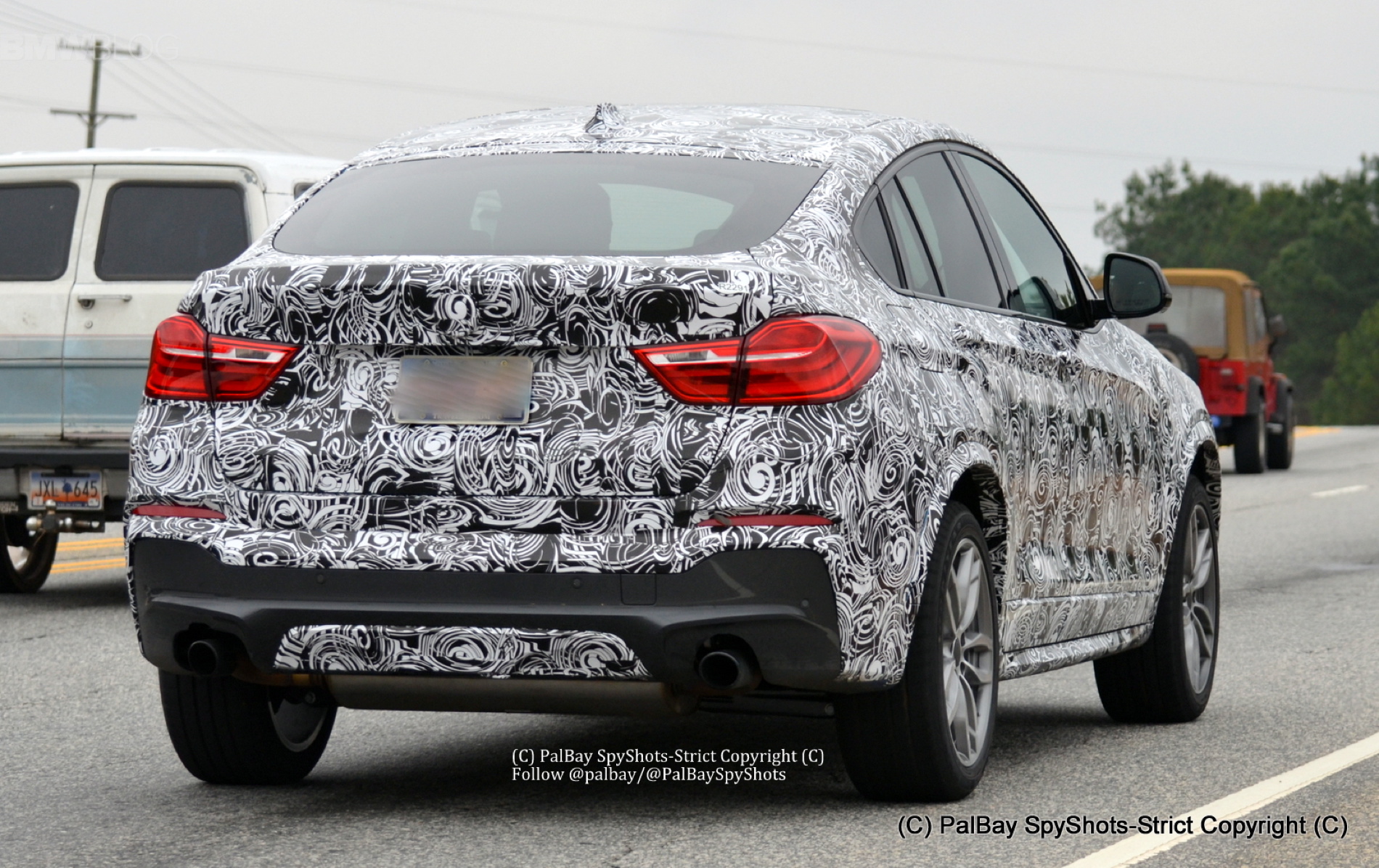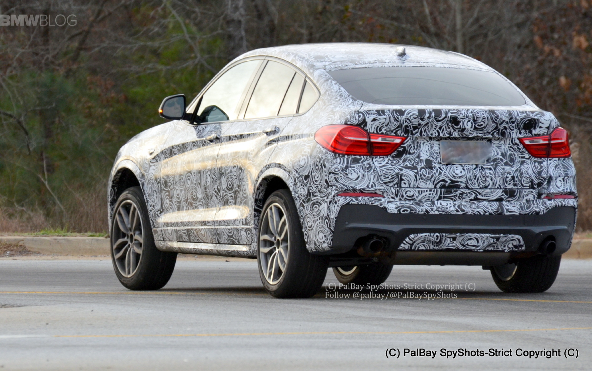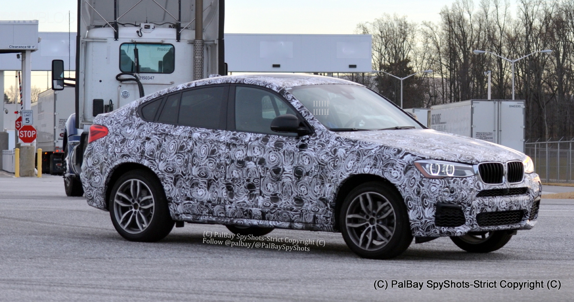 The upcoming BMW X4 M40i was spotted for the first time on U.S. soil. The South Carolina-based spy photographer, Palbay, spied an X4 M40i prototype as it was being driven near the BMW Spartanburg plant. Compared to the BMW X4 X35i with M Sport Package, the X4 M40i has slightly different air intakes openings on the side, a redesigned front and rear bumper, and two exhaust pipes surrounding the rear diffuser.