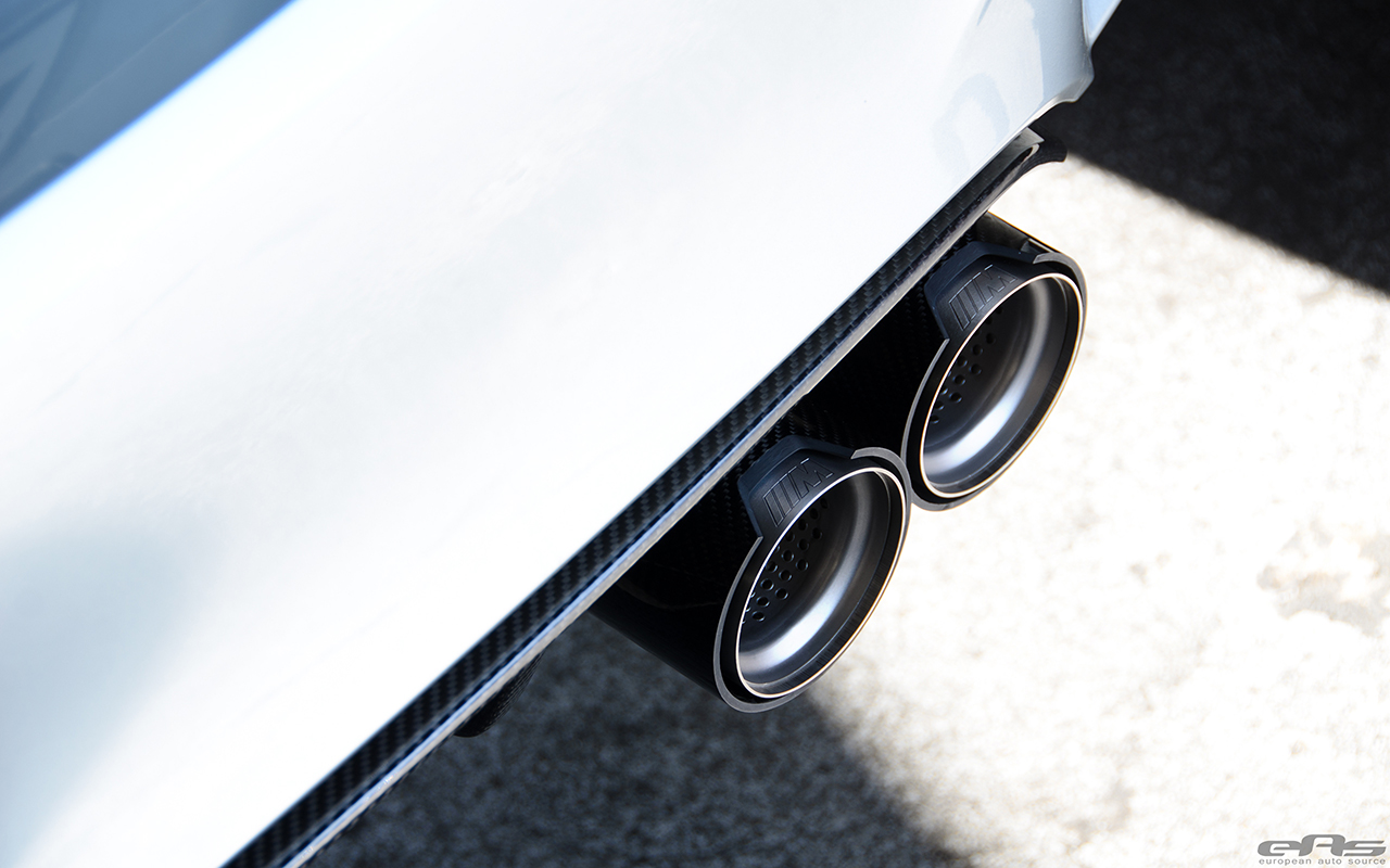 Next, a wide range of BMW M Performance Parts were added. The crew at European Auto Source installed a set of BMW M Performance carbon fiber mirror caps, BMW M Performance carbon fiber rear diffuser, a BMW M Performance carbon fiber rear spoiler, the BMW M Performance gloss black kidney grilles and a set of BMW M Performance gloss black side markers.