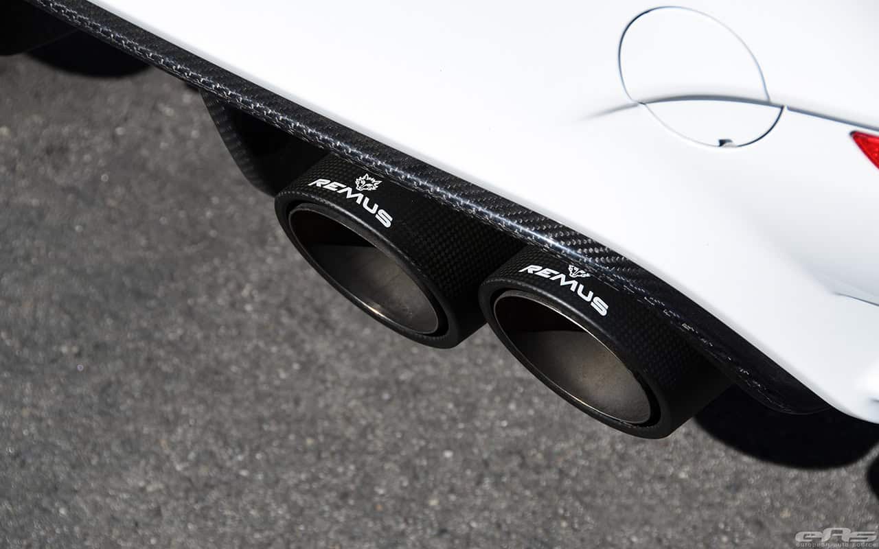 Recently released, the Remus Exhaust System for the BMW M4 is an excellent choice for owners that require a bit more power and a louder exhaust sound from their cars. Featuring increased performance and louder growl, the Remus BMW M4 fits well with carbon fiber parts on the Alpine White M4. The project was undertaken by European Auto Source at their shop in California.