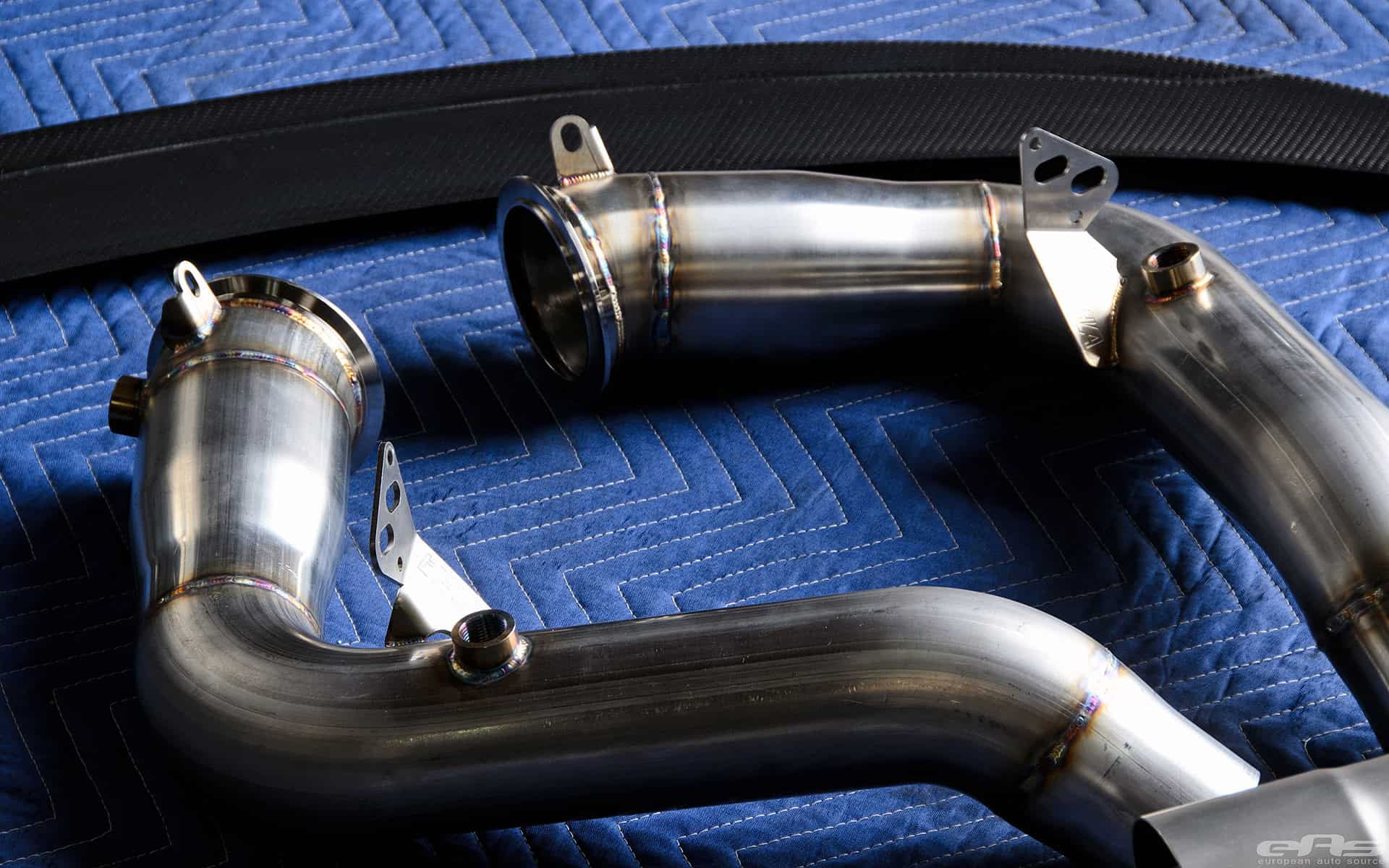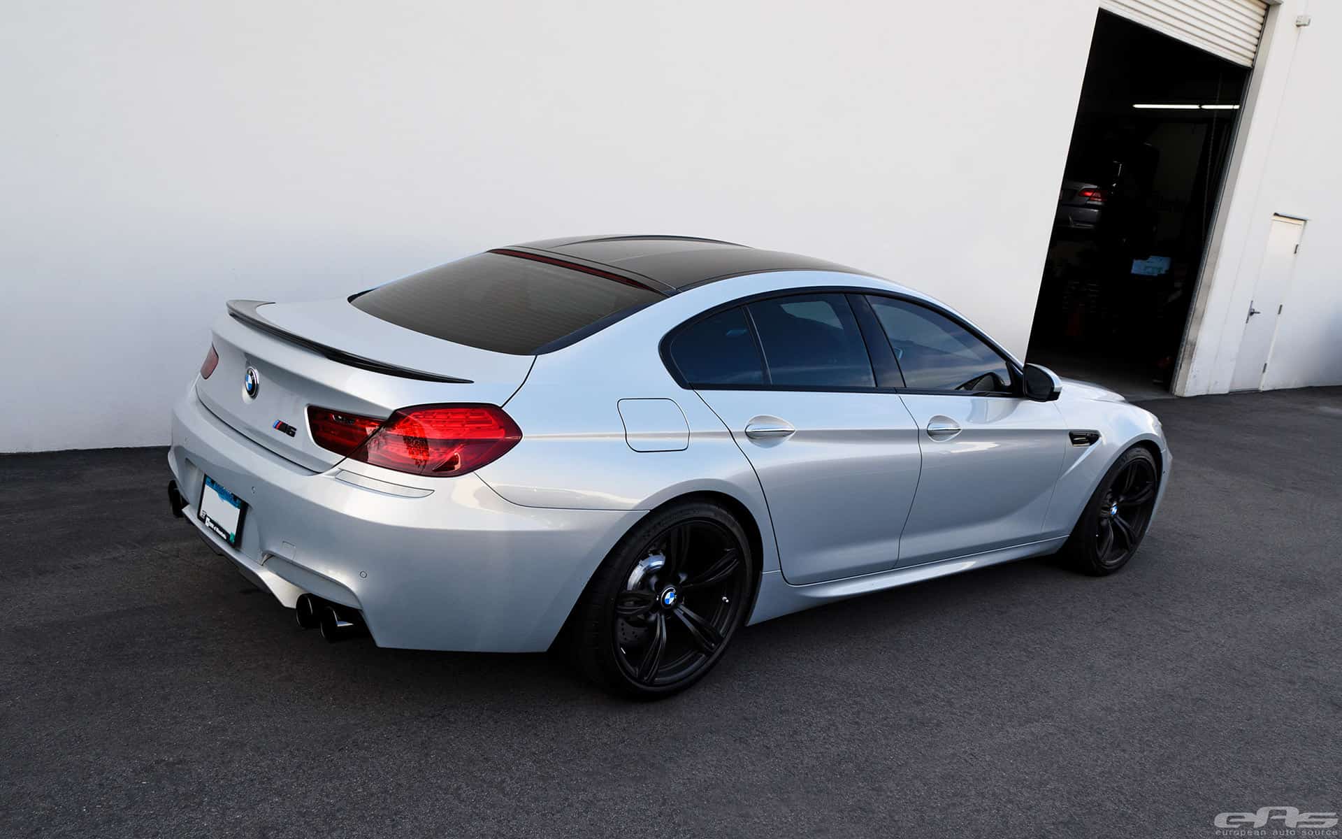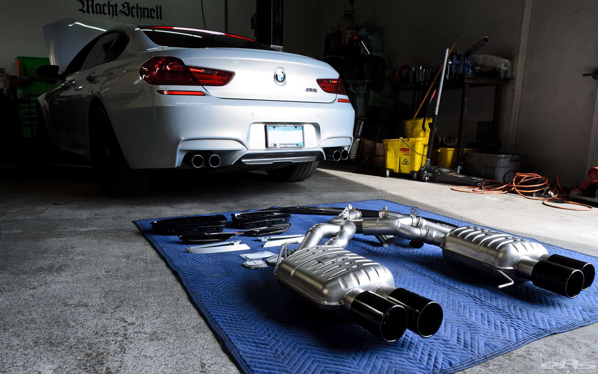 This Moonstone Metallic M6 Gran Coupe was at European Auto Source to receive cosmetic parts and some sound upgrades. A full custom exhaust system is what really gives this car the sound to go with its aggressive looks. In this case, the exhaust system comes from Eisenmann (combined with AMS S63Tu Catless Downpipes) and their race inspired system works fits perfectly the M6 Coupe, Convertible and Gran Coupe.