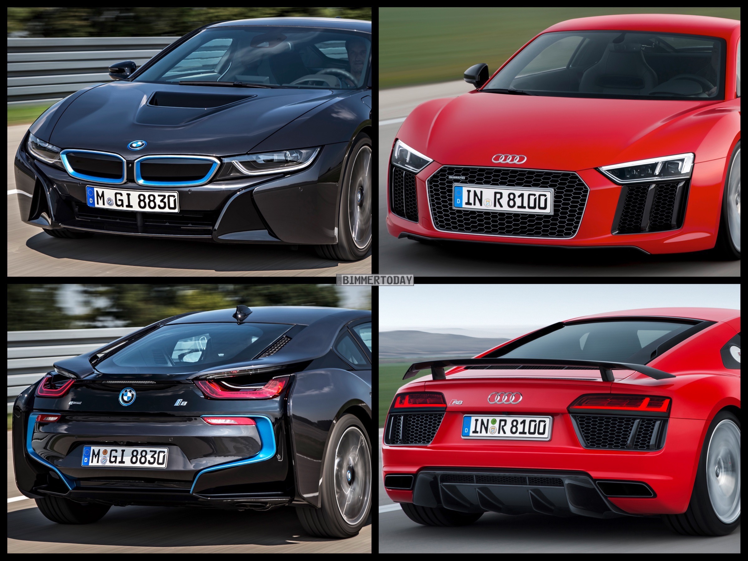 In a few days, the new 2015 Audi R8 will debut at the Geneva Motor Show and first photos are already available on the Internet. We take this opportunity to create a direct photo comparison with the BMW i8, two models fundamentally different at their core but often compared to each other.