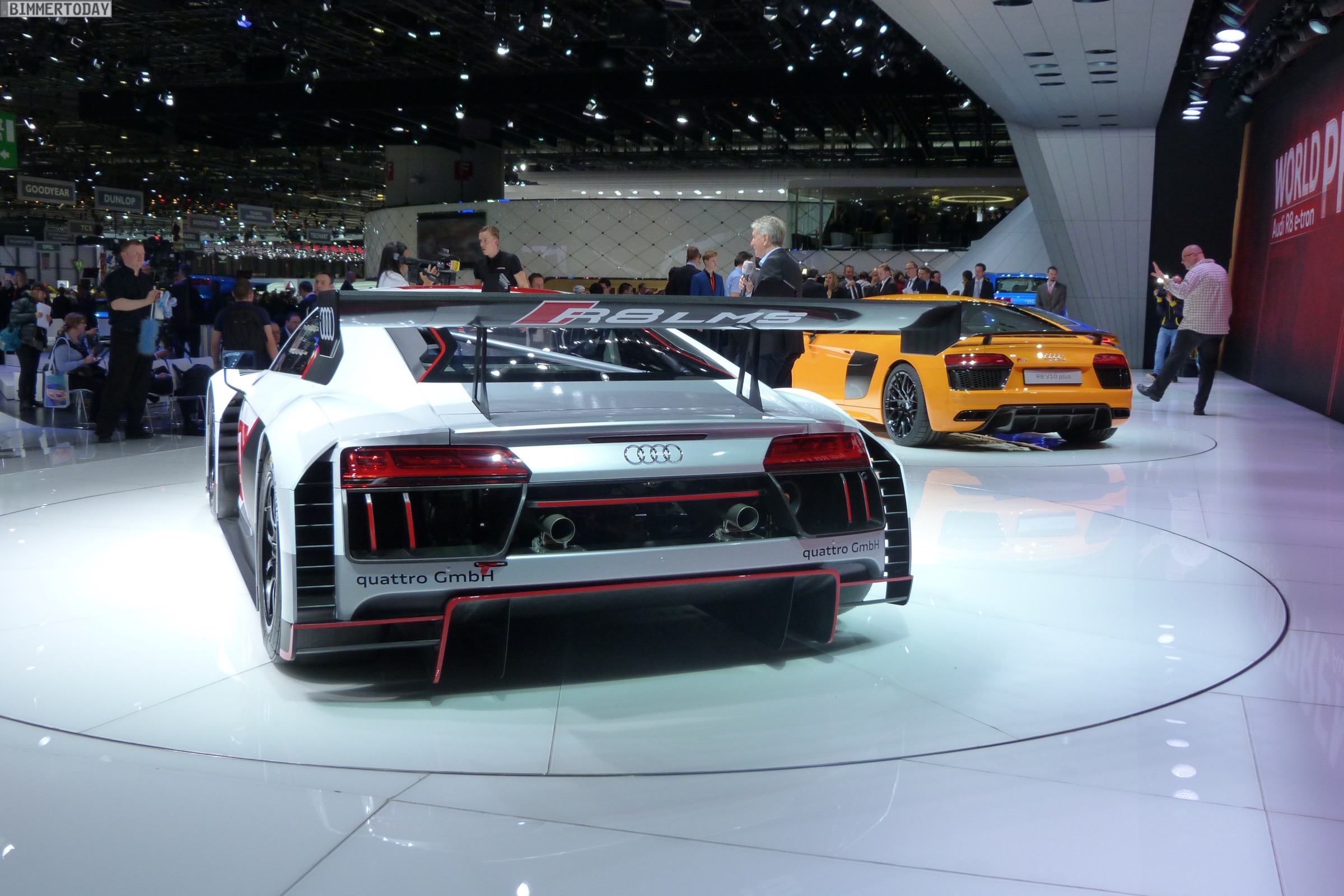 Audi’s brand new R8 is stealing headlines at the 2015 Geneva Motor Show. The R8 will come in three different flavors; V10, V10 Plus and e-tron. But also on display is the Audi R8 LMS race car. While not a radical design change from the previous R8, it’s more of a small evolutionary step, the new R8 looks very good, indeed.