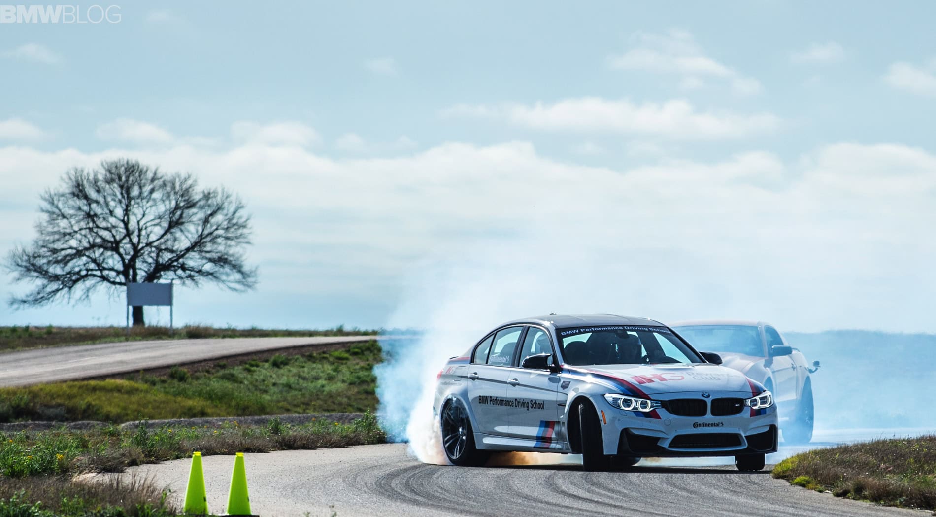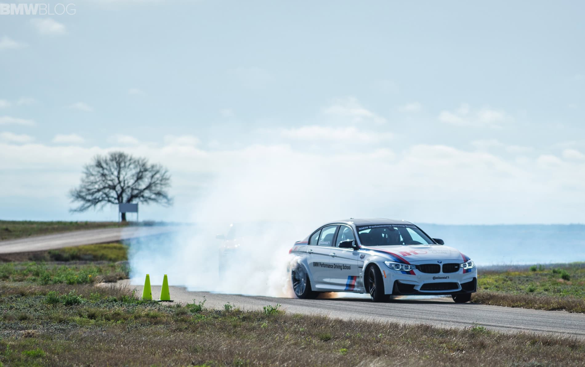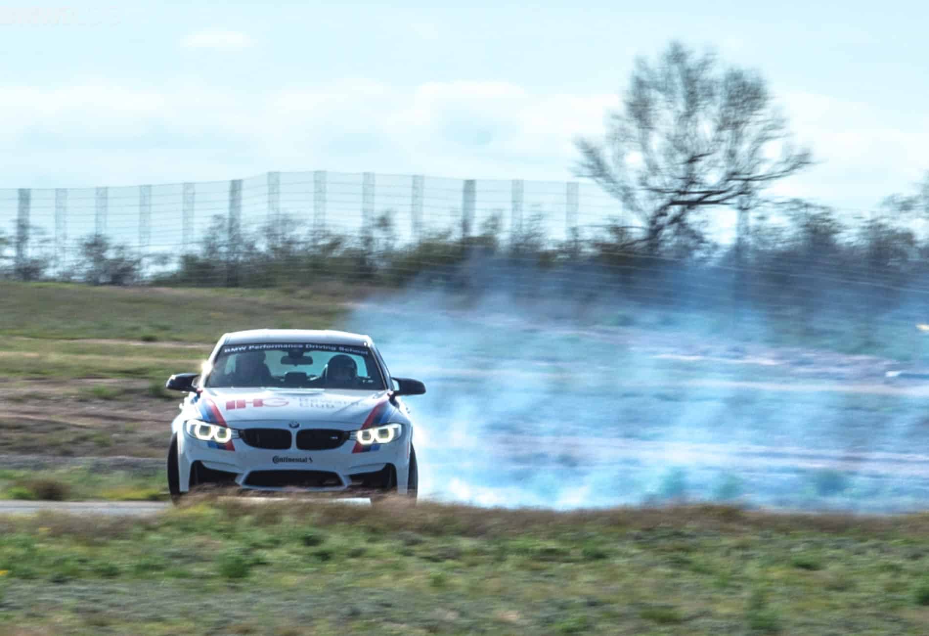 Before having a moment to even fix my attention on the tail-wagging M235i, we’re hovering no more than 10 feet above the carbon fiber rooftop of a Performance Driving Center F80 M3 festooned with the M tri-colors and sponsor names monstering around the dry traction circuit.