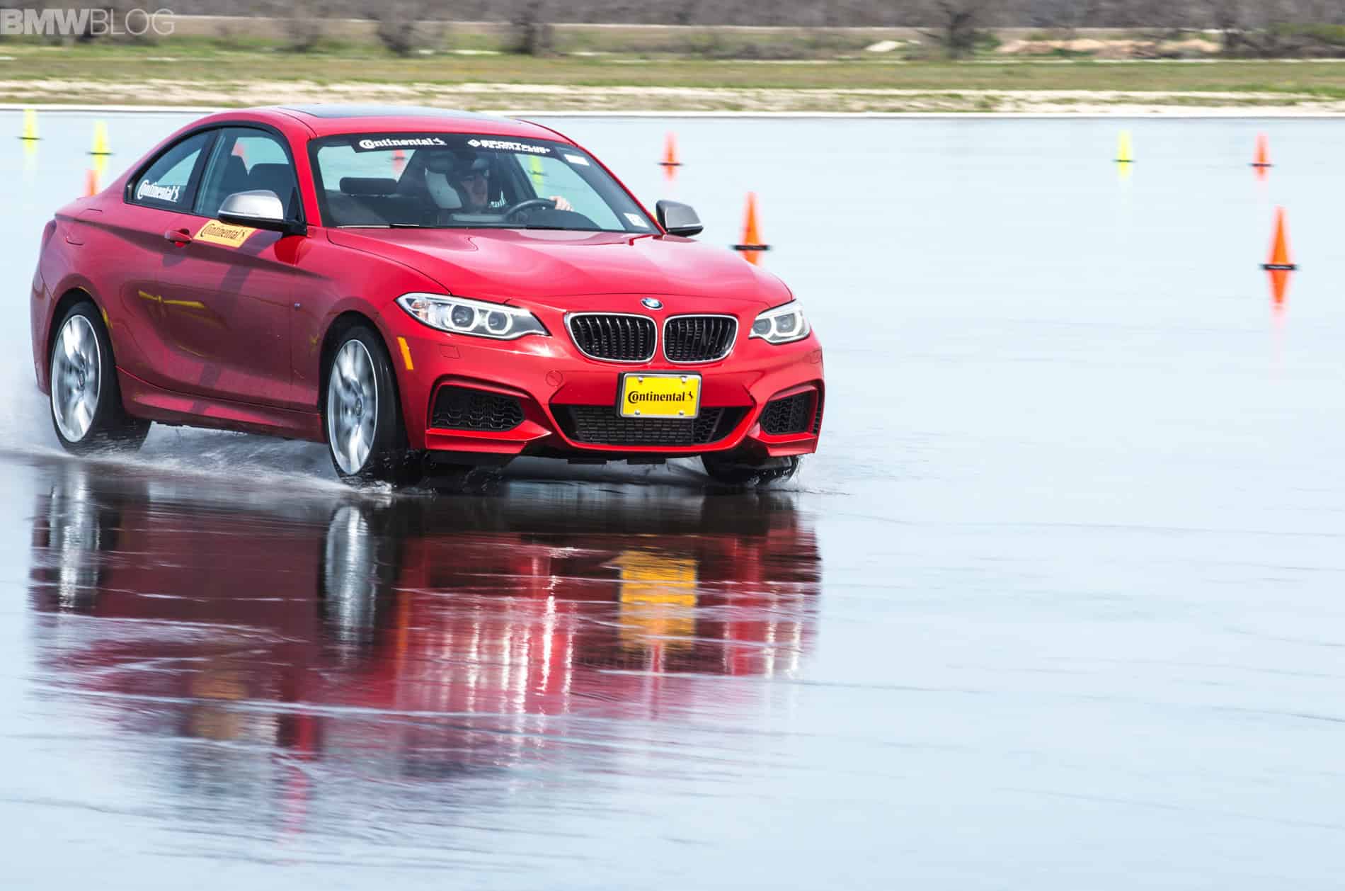 Interestingly, the M235is were equipped first with a set of the brand new Conti DWS06 tires and then the previous generation of DWS for comparison. One of the Mustangs was equipped with the DWS06 while the other sported Yokohama ADVAN SportAS tires. Slipping onto the skidpad lined with cones to mark a tight circuit, I was tasked with testing all four vehicles and their respective rubber.