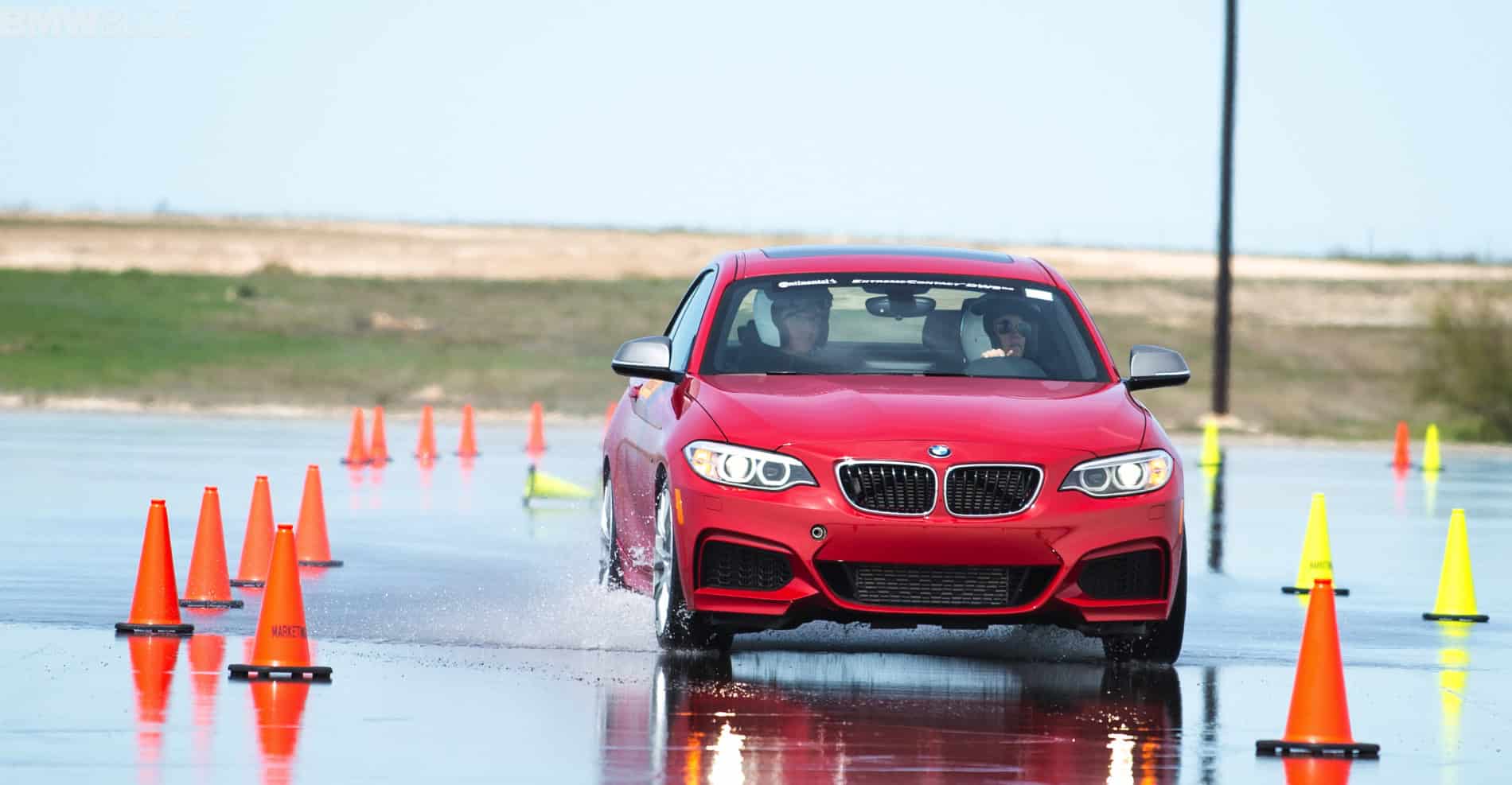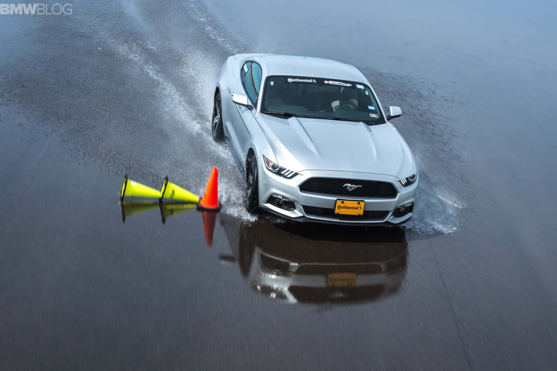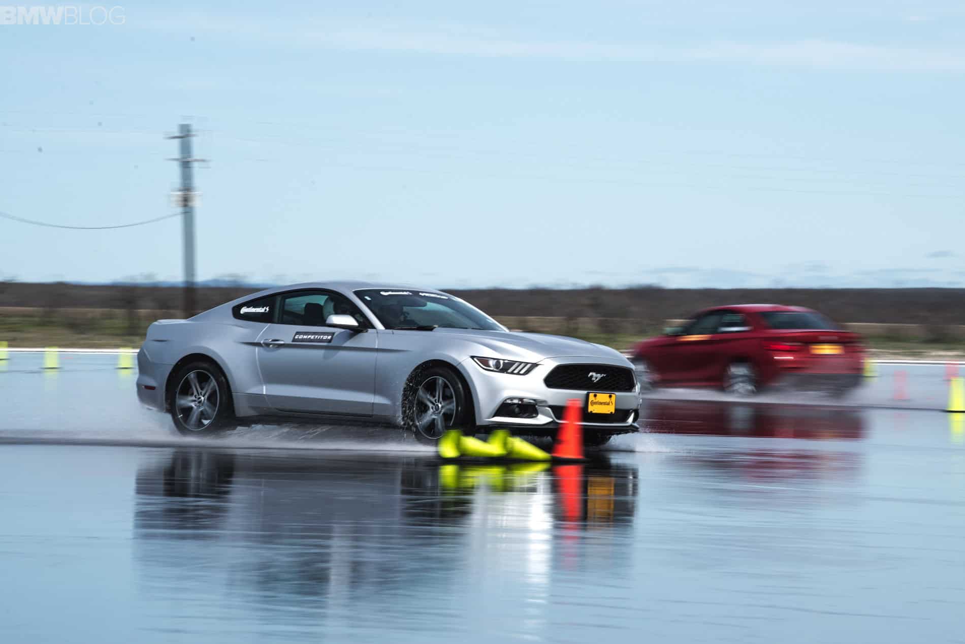 Later in the day we found ourselves standing next to a massive slab of asphalt soaked in a quarter inch of water – specifically designed to mirror the effect on grip a driver might experience on the road during a heavy rain. Lined next to the track were a pair of M235i cars accompanied by two 2015 V6-equipped Mustangs( a little piece of me was heartbroken by the lack of the 5.0L Coyote motor).