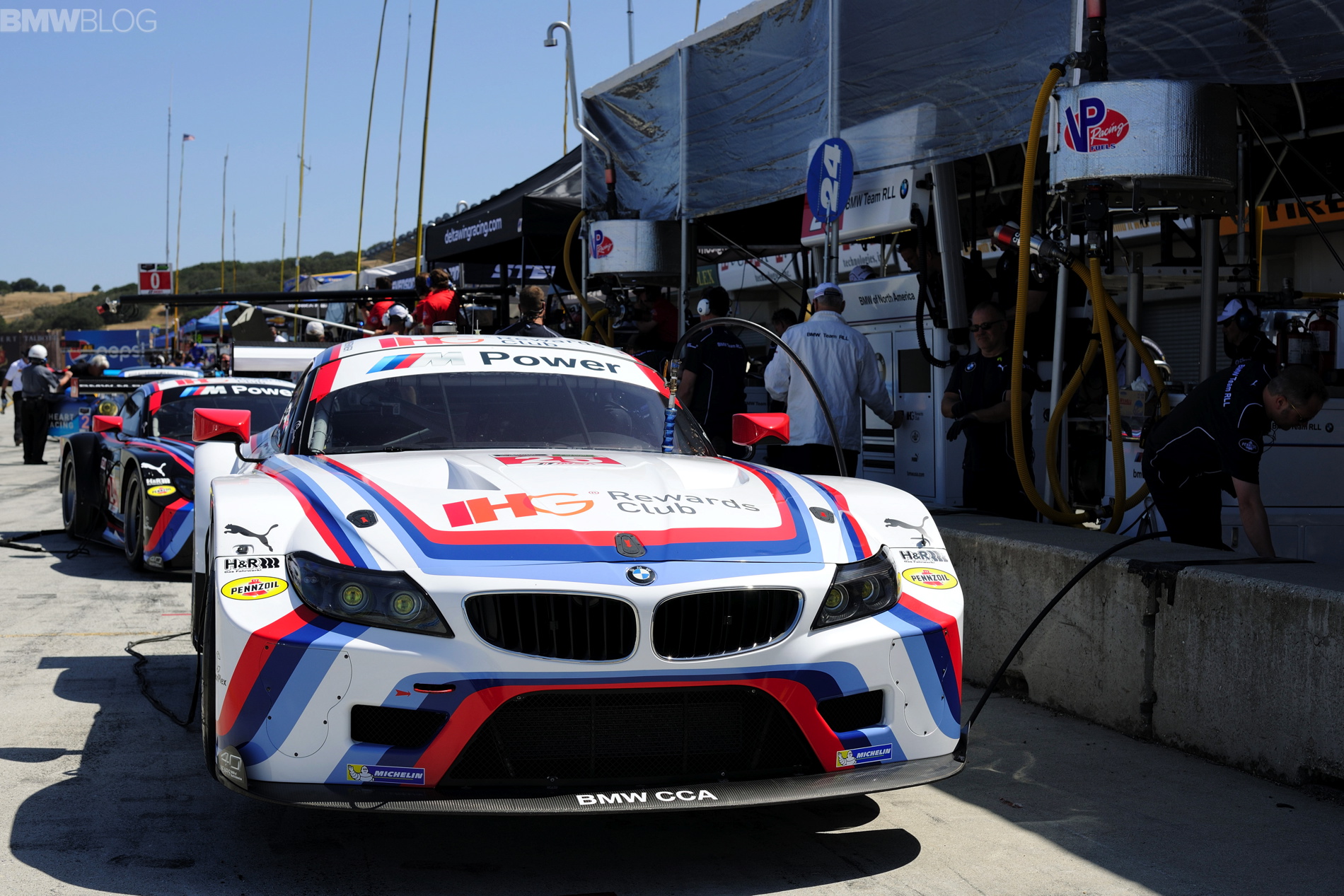The West Coast swing of the 2015 TUDOR United SportsCar Championship continues to be a good one for BMW Team RLL as the team swept the front row of the highly competitive GTLM class in today’s qualifying session for Sunday’s two-hour-and-forty-minute race at Mazda Raceway Laguna Seca, in Monterey, Calif. Two weeks ago the team captured its first TUDOR victory with a win from the pole for the No. 25 Z4 GTLM of Bill Auberlen and Dirk Werner at the Long Beach Grand Prix weekend.