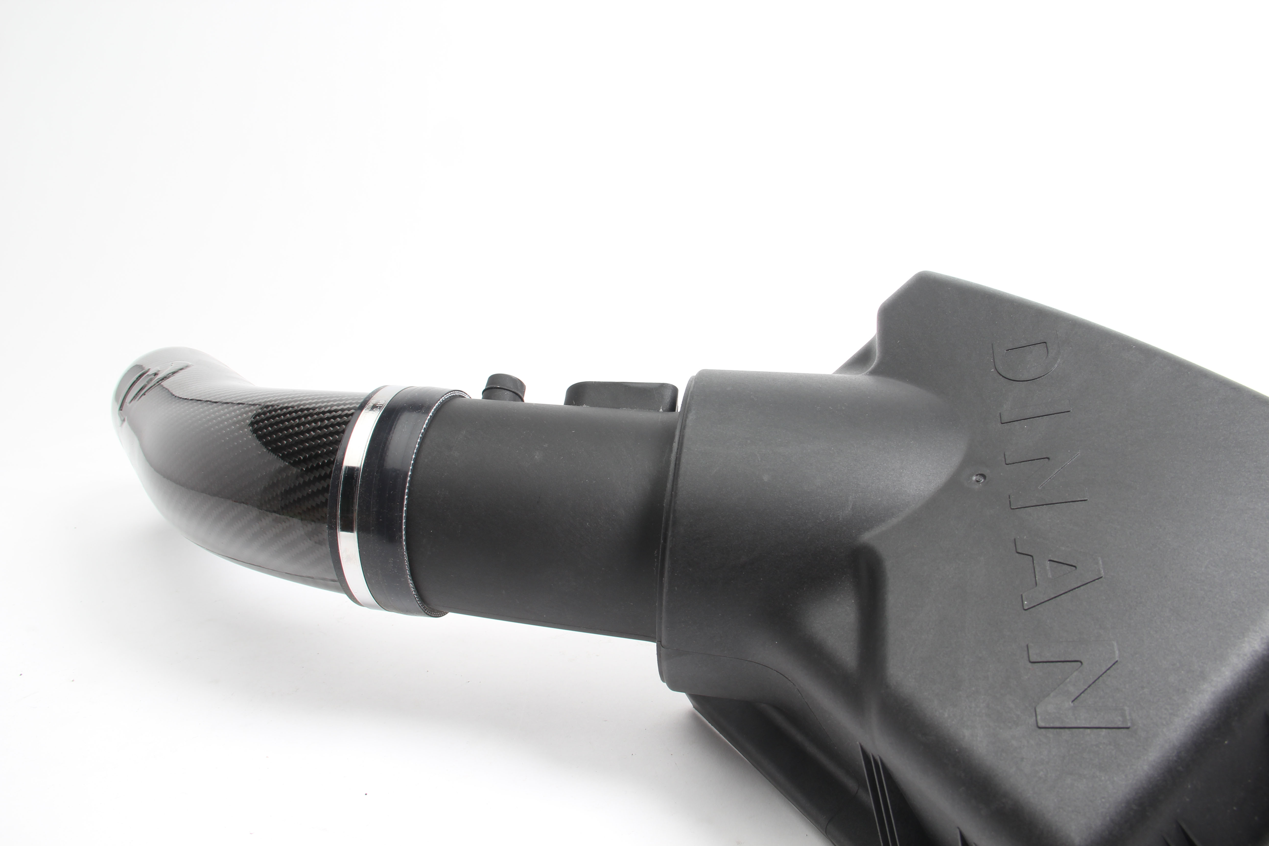 DINAN is pairing the Stage 2 tune with a new cold air intake which maximizes the efficiency of the factory design first by utilizing a sealed air box that prevents the intrusion of hot under hood air while retaining an excellent pickup location for cold air. Air is passed through a large high-flow filter, past an upgraded MAF sensor and into a carbon fiber tube that provides much less restriction than the stock piece.