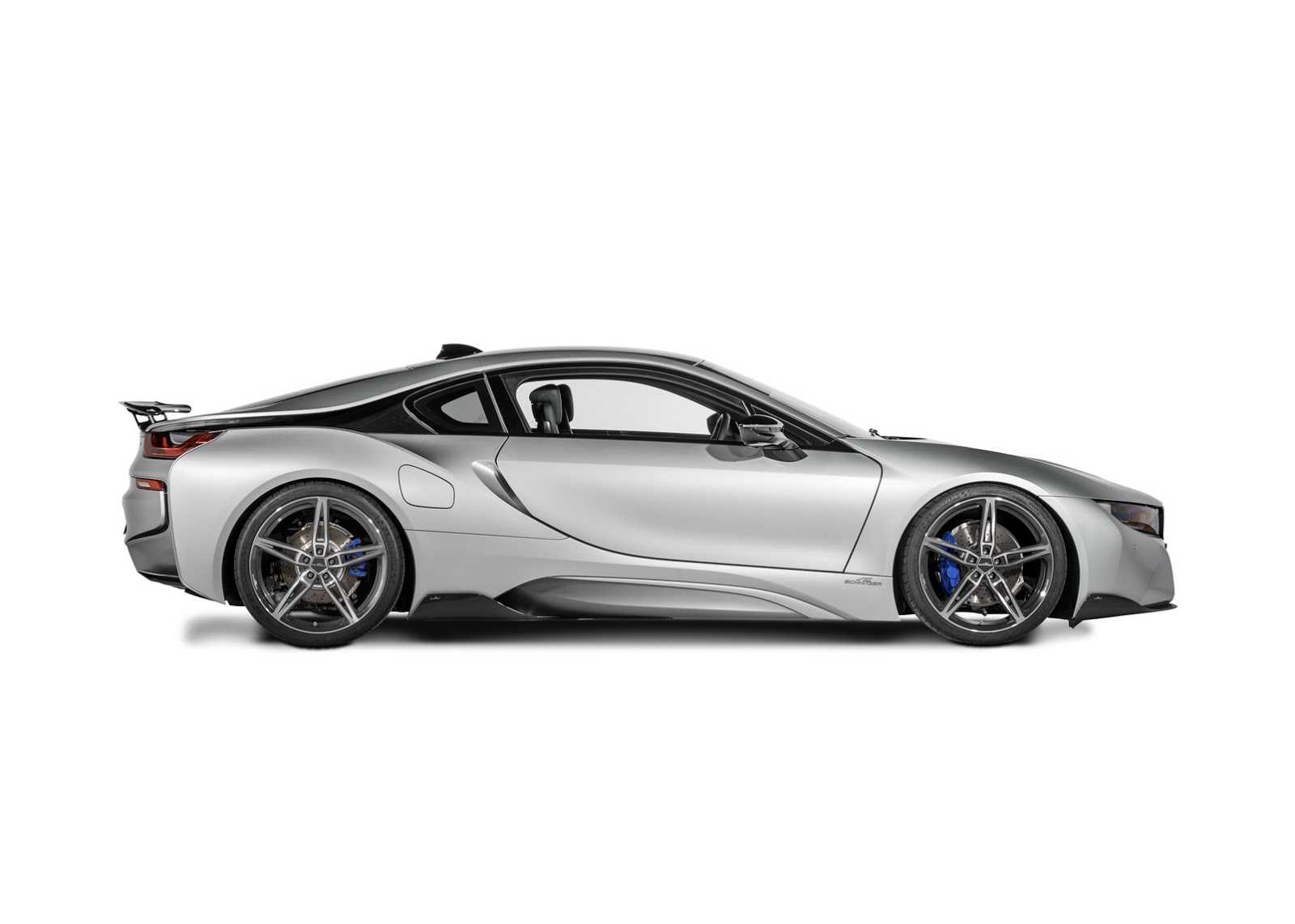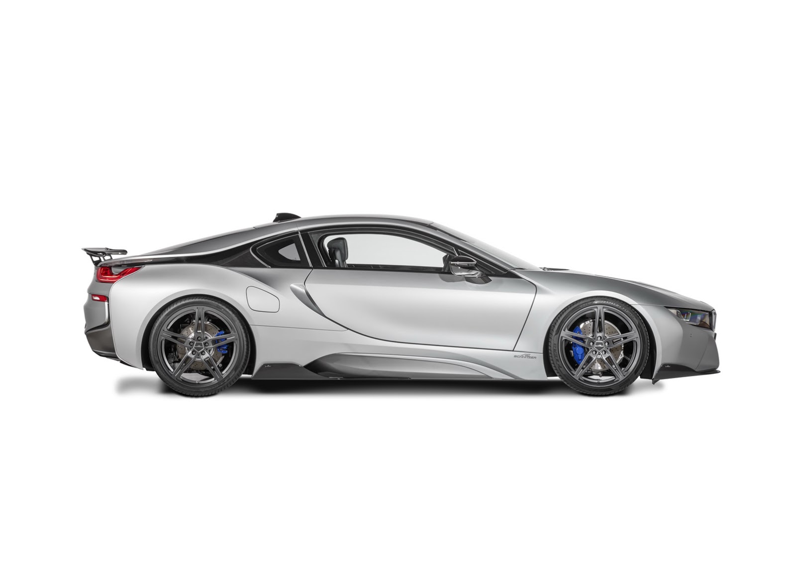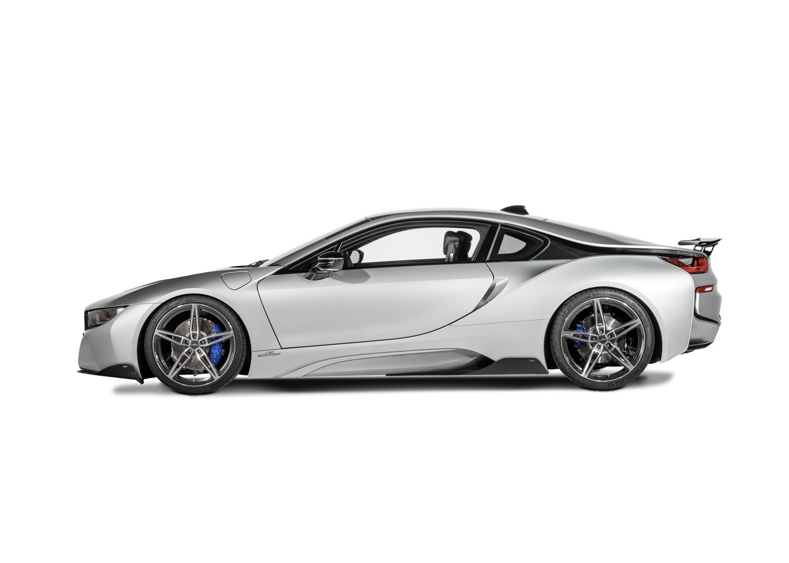 To enhance the driving dynamics, a lowering kit was applied to the i8 which reduces the ride height by 25mm front and 20mm at the rear. The i8 also sits now on 21-inch AC1 forged alloy wheels that are approximately 30% lighter than the standard wheels. The company says they are 4kg or 9 lbs lighter than the stock wheels.