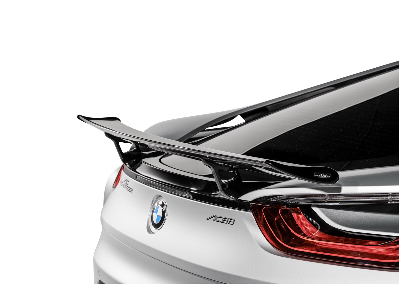 AC Schnitzer has introduced their aero program for the BMW i8. The styling package designed by AC Schnitzer includes a carbon fiber front spoiler, carbon fiber side skirts and a carbon fiber rear wing.