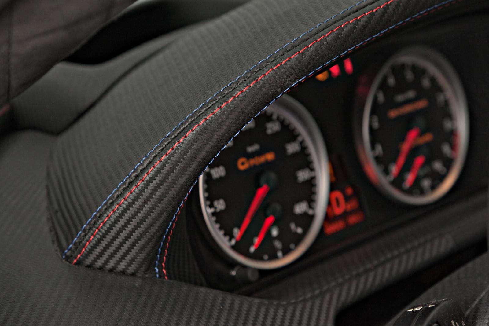 Inside, almost all surfaces are covered in high-quality leather or Alcantara, featuring an innovative carbon imprint. The ultra light race style seats have carbon-fibre backs and hold occupants firmly in place at speed.