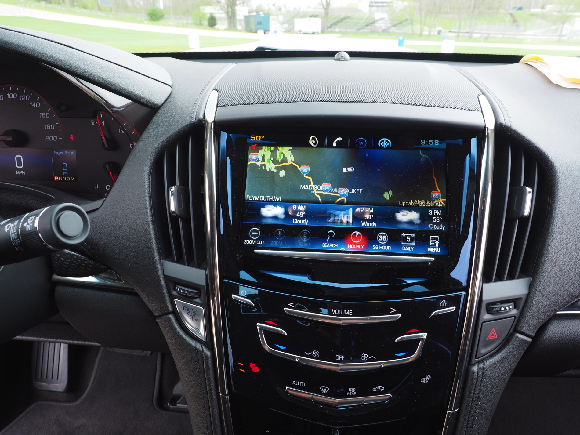 From Milwaukee to Elkhart Lake, we took the coupe model through about 100 miles of backroads. A car with over 400 horsepower is simply a tease on regular roads, regardless if it’s a Cadillac or a BMW, so best you can do is to keep the car in a lower gear and rev it up to redline, which in the ATS-V comes up real quick. The car has pull and certainly feels stiffer than the standard ATS. But is it better than the M3/M4? Despite the fairly short ride, we can say that BMW’s legendary M car feels like car that is in its fifth iteration: more refined, more planted on the road and while the engine is a bit smoother.