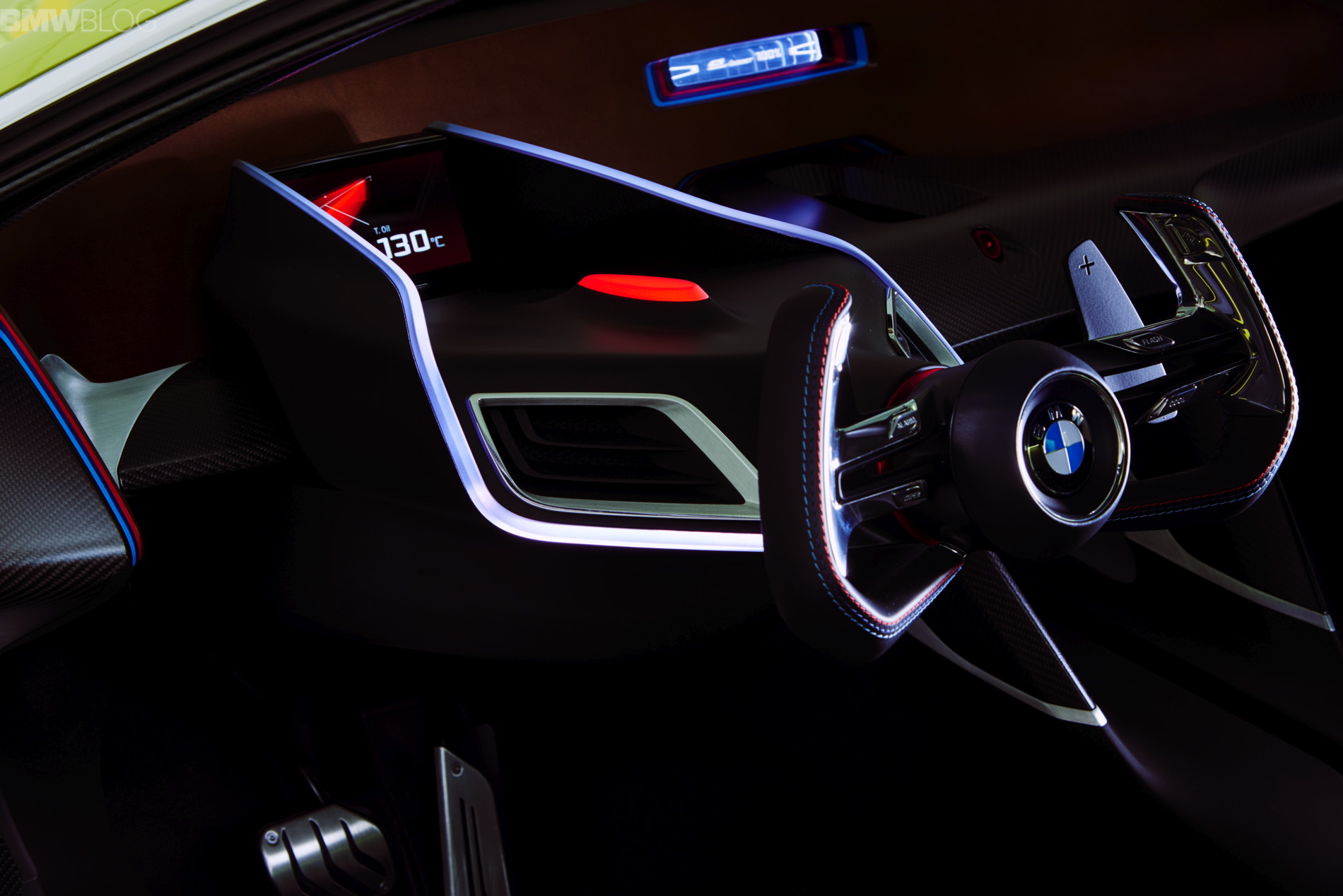 This is a clear reference to the interior of the earlier BMW 3.0 CSL, which featured an all-round wood trim throughout the interior. In the new version, only the small central eBoost charging display interrupts the wooden instrument panel. Infotainment is equally minimalist in concept: a central display on the steering column informs the driver of the current gear, speed, revs and shift point.