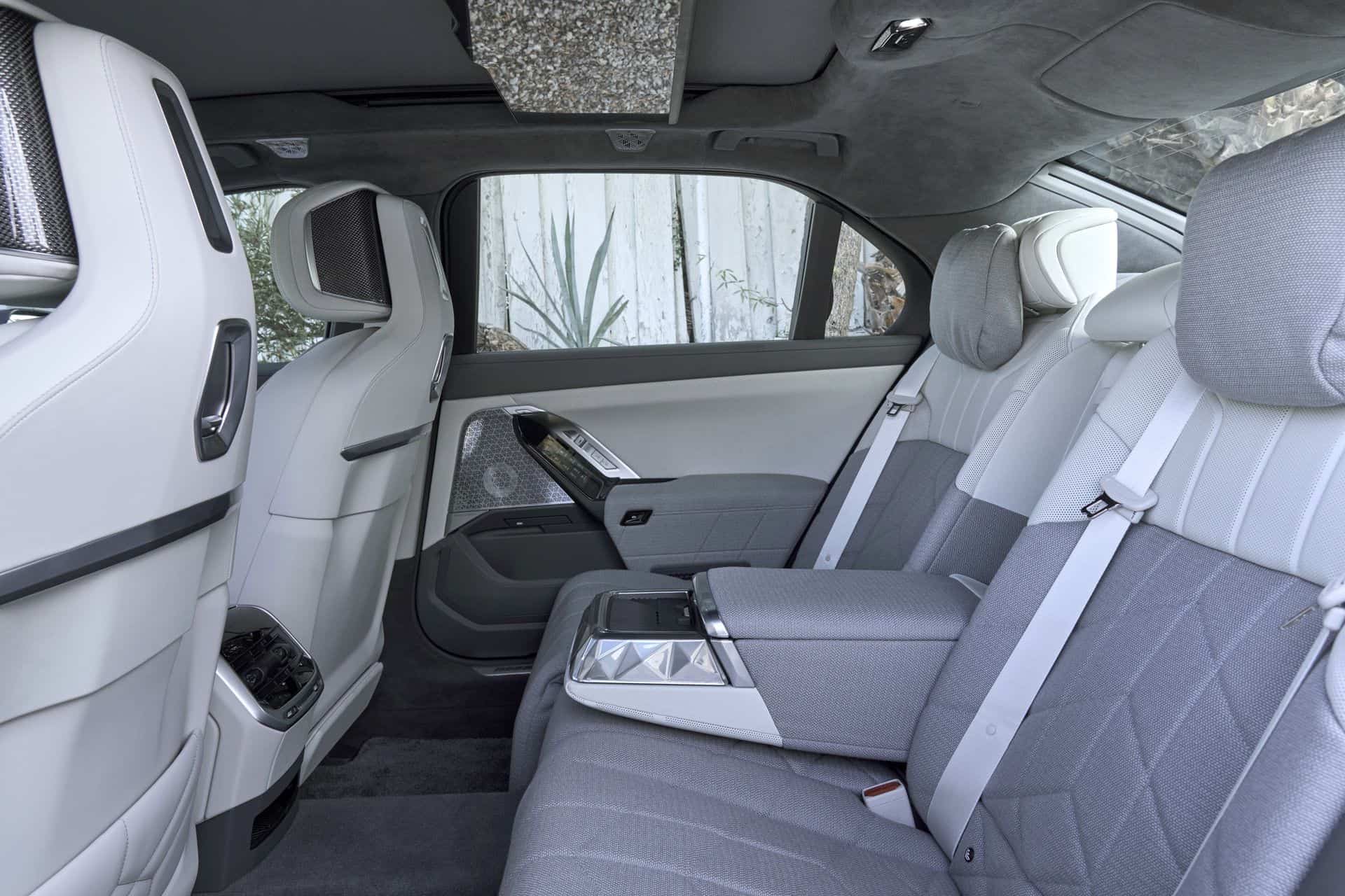All of the 7 Series’ we had on test were equipped with the now-famous rear theater package. That provides a massive 31-inch, 8k touchscreen that drops down from the ceiling to give rear passengers a theater screen. If you use the door screens to select Theater Mode, all the car’s sunshades close as the theater screen drops down, create a moody, theater like environment. It’s awesome.