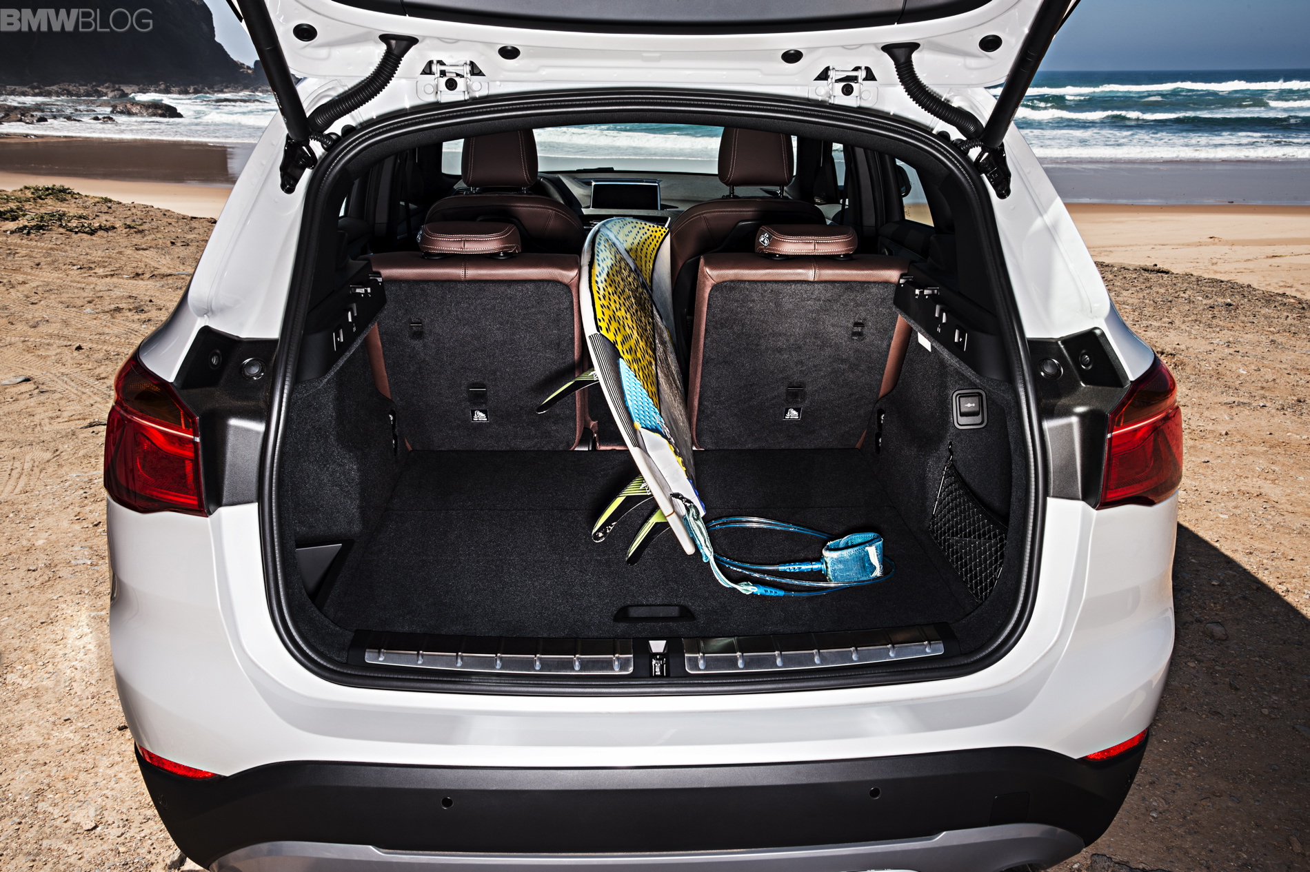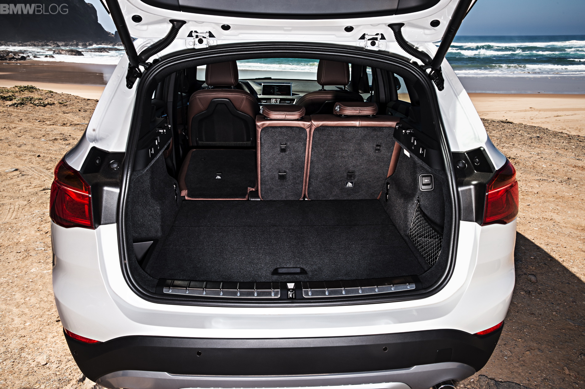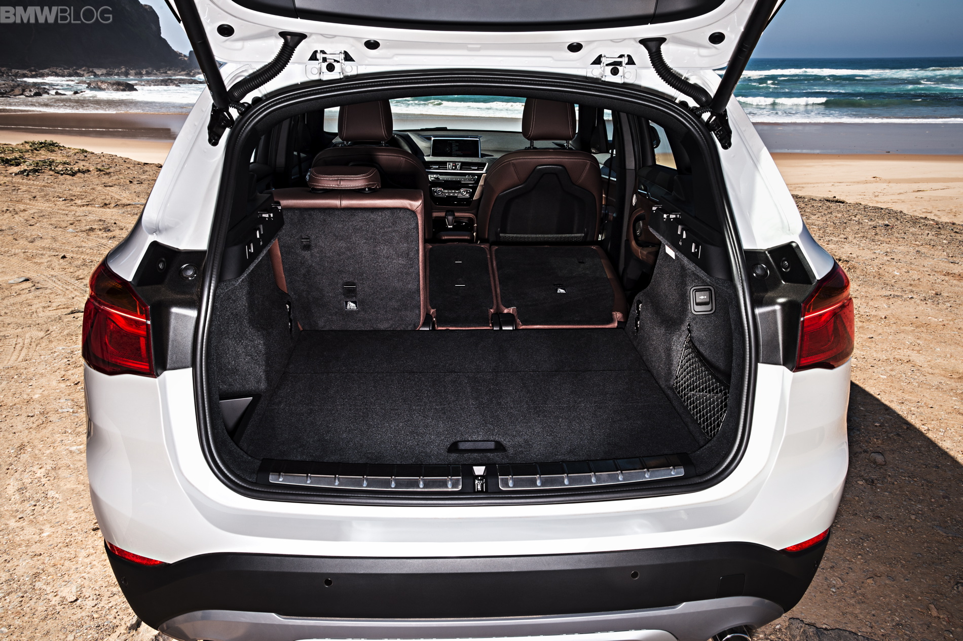The new 2016 BMW X1 has grown quite a bit over the previous model, sprouting 53 millimeters in height, with a 36 millimeter raise in the front seating position, to give the X1 a more commanding view of the road. This increase in size, and switch to front-wheel drive architecture, has also given the X1 better interior space, to the tune of 37 millimeters more rear knee room and 85 liters more cargo space, bringing the total to 505 liters. With the rear seats folded down, the X1 has 1,550 liters of cargo space.
