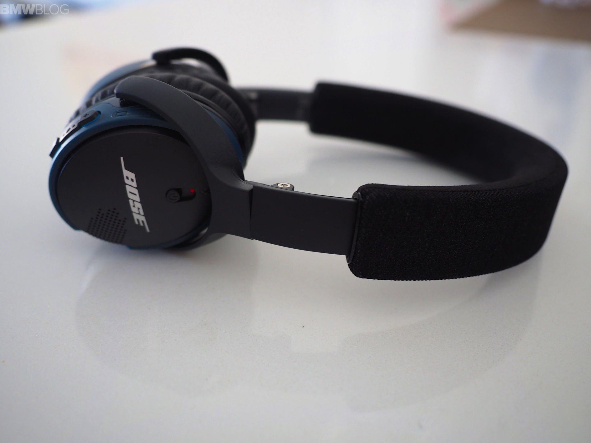 These Bose headphones weigh 5.5 ounces and are extremely comfortable on the ear without falling off, thanks to the soft and smooth fabric on top of the headband and the soft faux leather on the earcups. While there is no active noise cancellation, the soft cups that cover your ears block in more than enough sound. The sound is crystal clear, balanced and natural with good deep bass. Bose says that SoundLinks employ an adaptive audio adjustment which helps compensate for noises in the outside environment. To test the passive noise cancelling and the adaptive audio adjustment, we turned up the car’s audio system volume and our passenger ignored us. Clearly a sign that the headphones are doing their job.