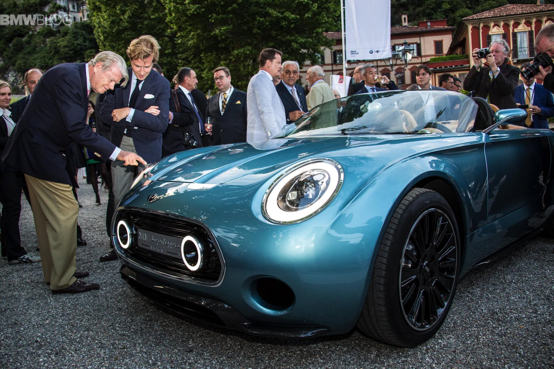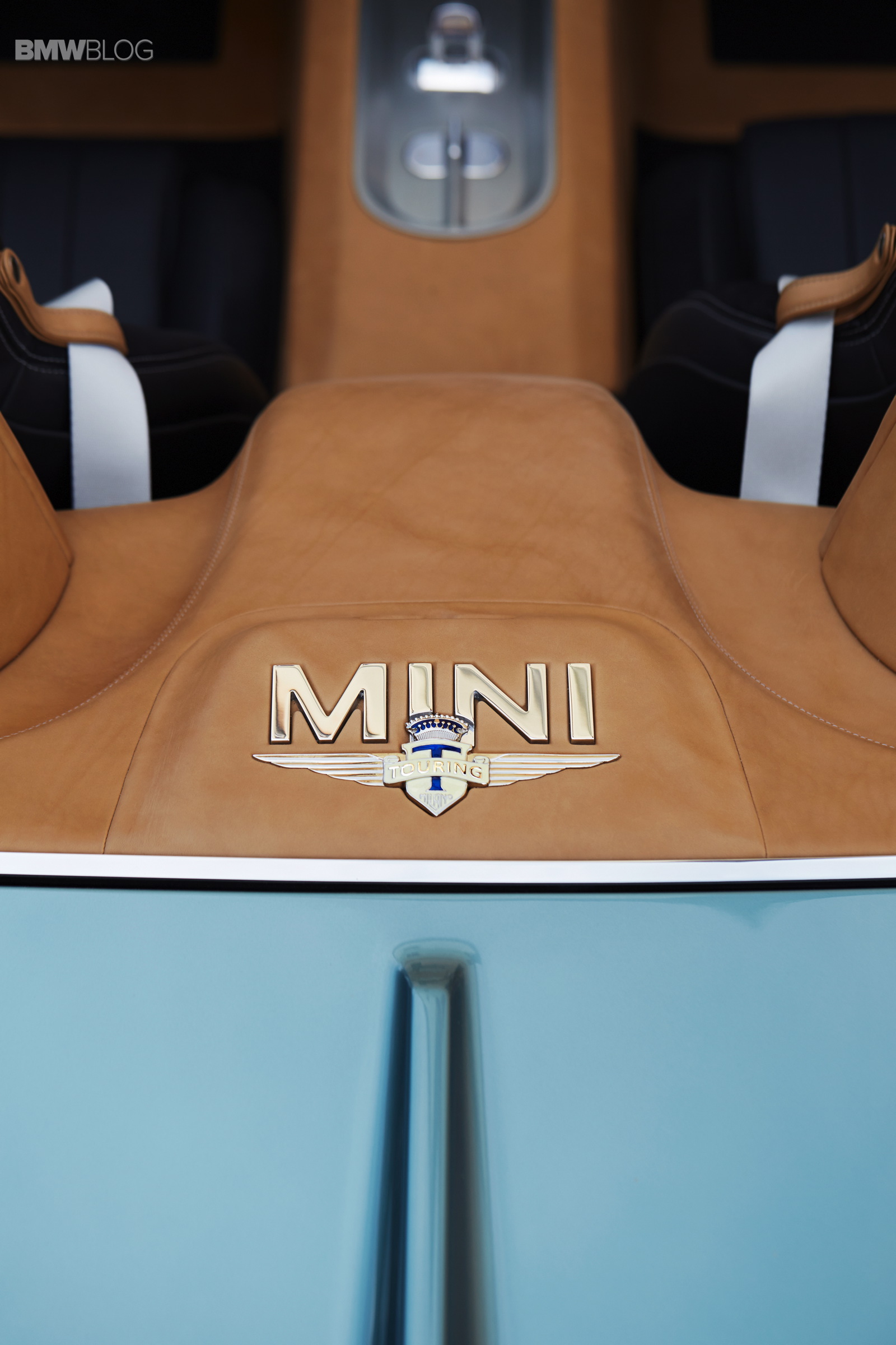 The new Mini was conceived, created and produced in a project between its Munich-based design department and Touring Superleggera’s coach building works in Milan. The former led the styling of the low slung two seater, while the latter undertook its traditional hand shaped metal sheet construction. Many classic MINI design cues have been carried over, including a hexagonal shaped grille, oval shaped headlamps, bonnet stripes and multi-spoke wheels.