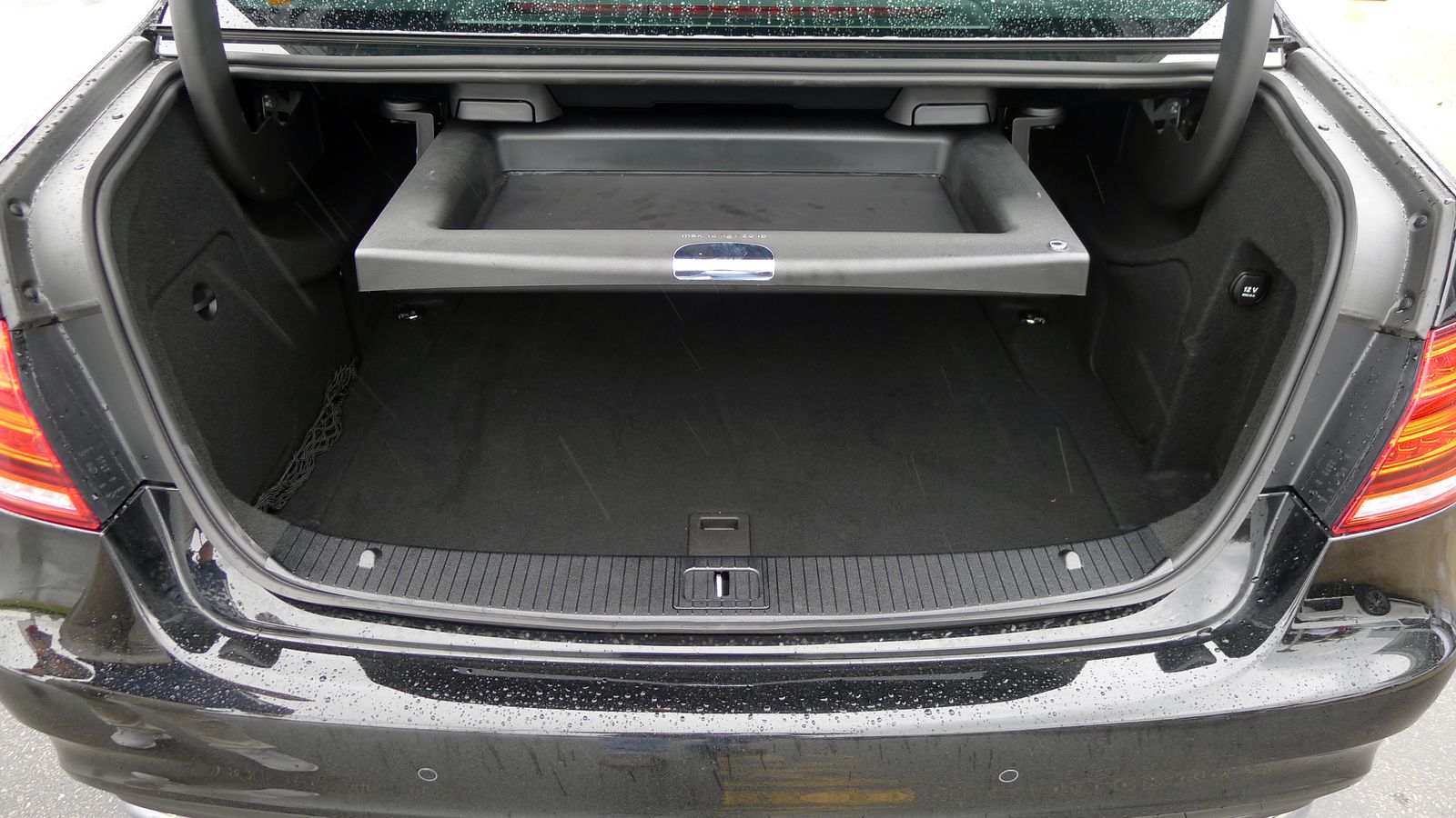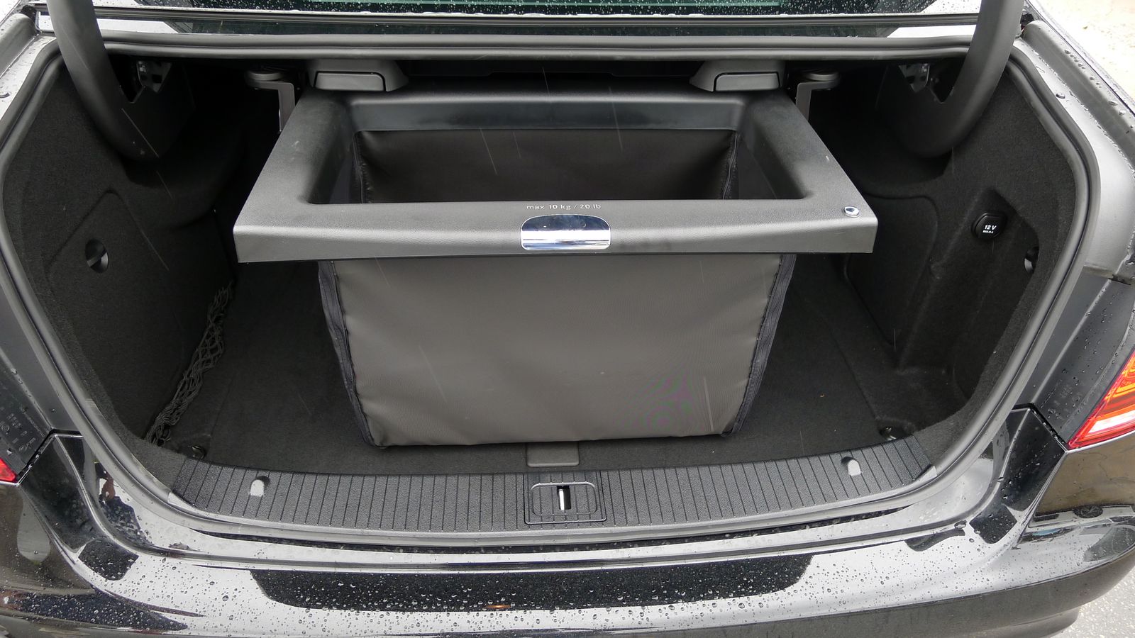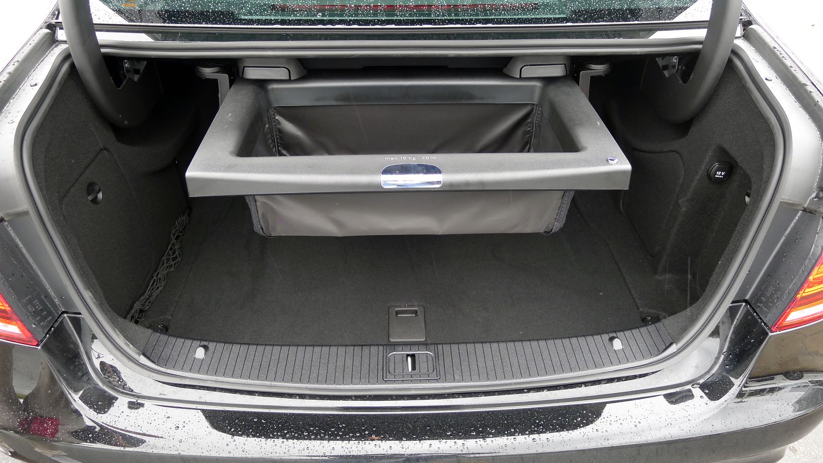 But there was an odd little bit in the trunk – there is a pull out shelf that has a fabric floor that can be dropped down, a holder for odds and ends. First I’ve seen this trick used.