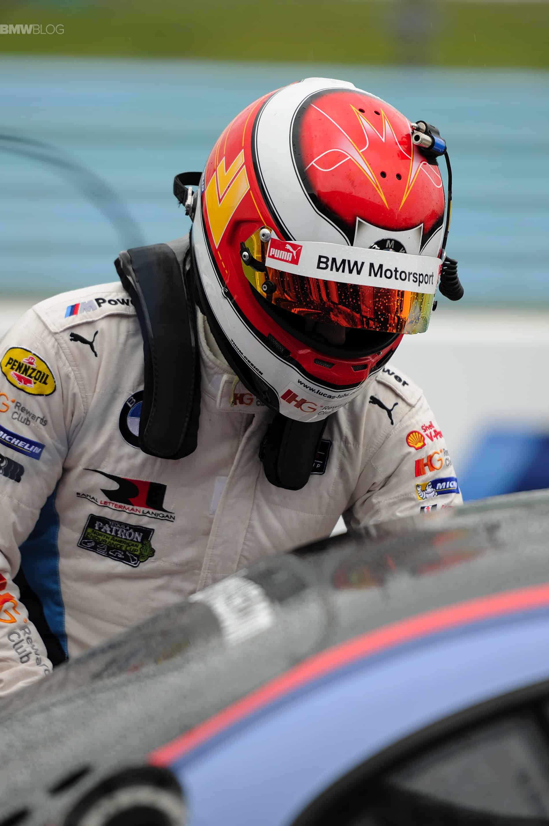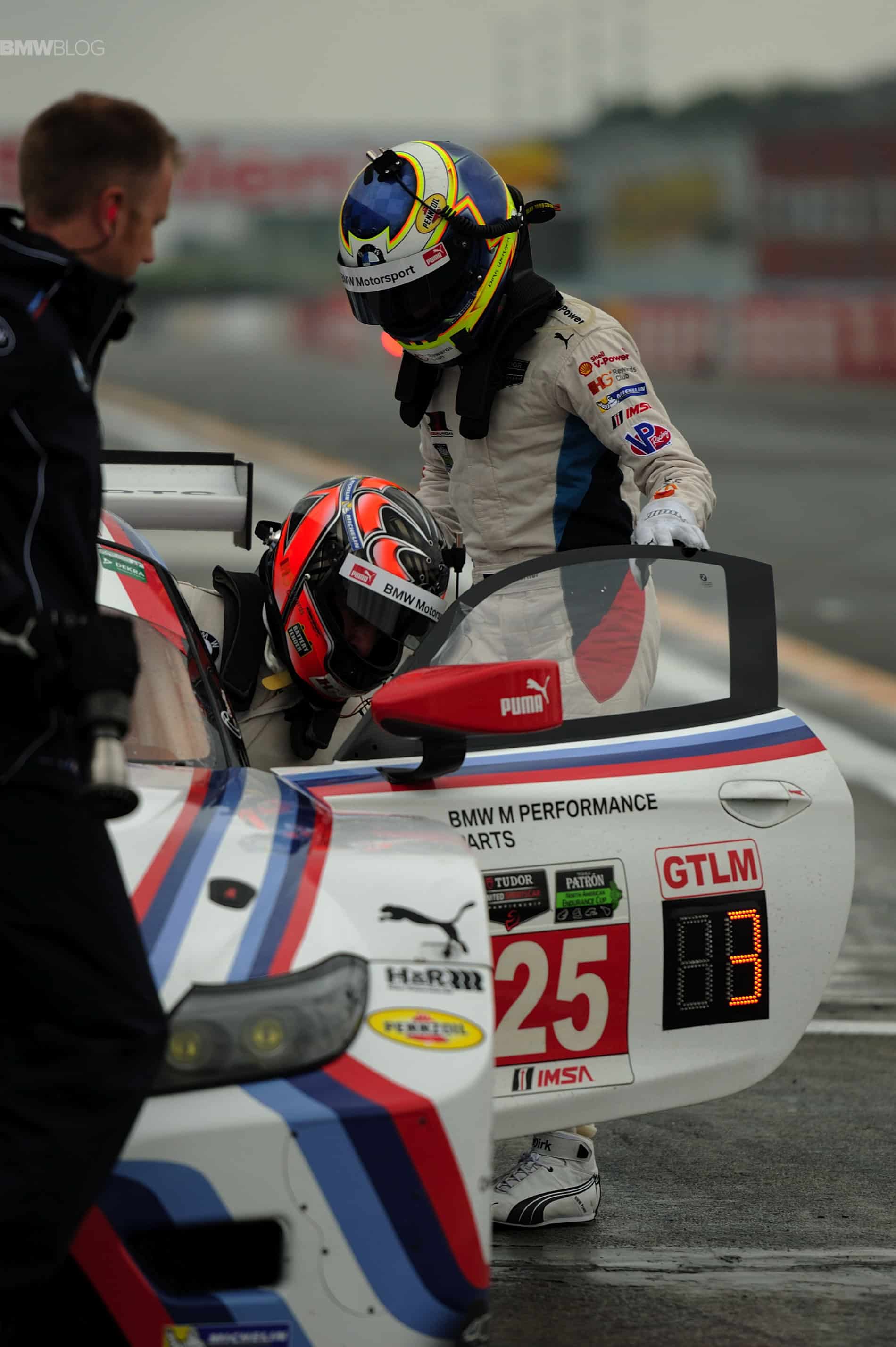 By mid-race the rain in control of the race and with two hours to go the entire field was racing on wet tires. Auberlen got back behind the wheel of the No. 25 Z4 on lap 118. He was in P3 as the race was red flagged with one-hour-and-28-minutes remaining and the race remained stopped for 14 minutes. The yellow flag waved and the race continued behind the safety car with the team choosing to pit Auberlen for his last stop as soon as the car could make it to the checkered flag. With 30 minutes to go he had moved into second place. The experienced veteran survived the difficult final minutes as the rain poured down causing the track to be extremely slick and affecting the car’s electronics causing the engine to shut off intermittently. He lost second on lap 151 and was unable to get the position back as the race ended under yellow.