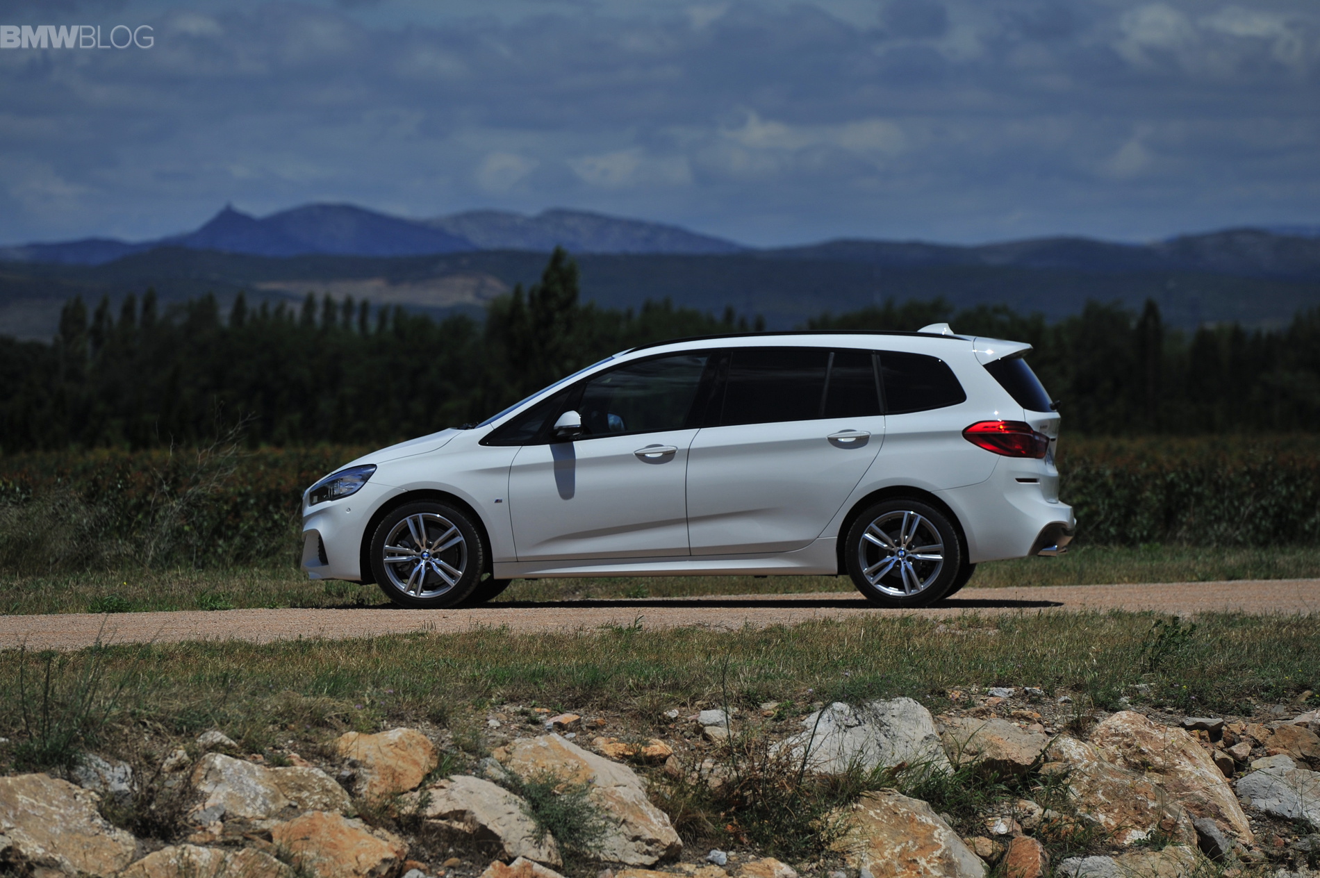 The series Gran Tourer shares its exterior styling with the Active Tourer through to the trailing edges of its front door. Its silhouette differs dramatically from traditional rear-wheel drive BMW models, with a short bonnet and heavily angled windscreen.