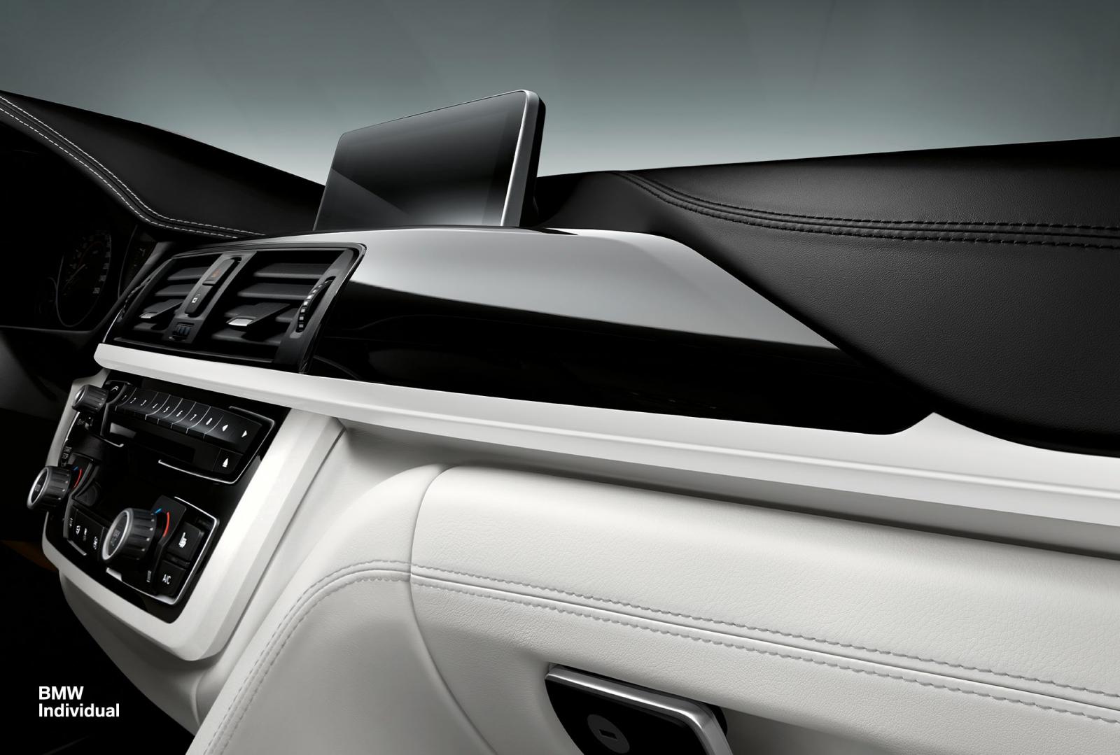 The 4 Series Gran Coupe comes with a new BiColor Opal White/Black finish with Opal White accents. The car also has a leather-wrapped dashboard and a BMW Individual Manufaktur logo on the rear parcel shelf. BMW also added Piano Black trim with Frozen Brilliant White metallic accents.