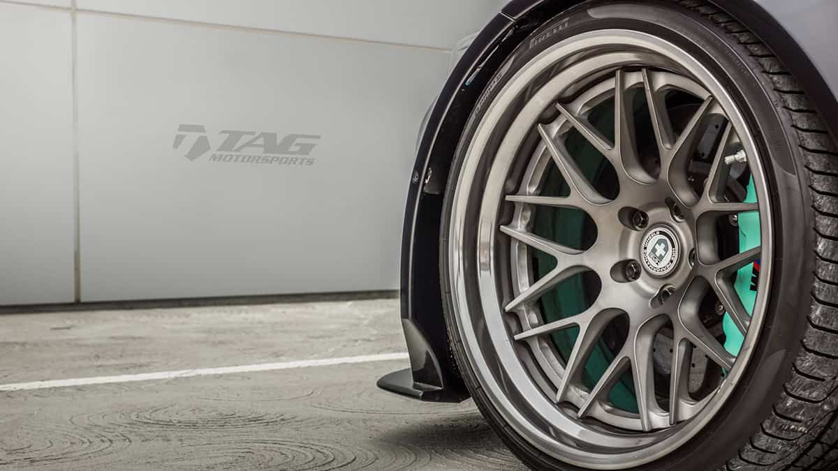 The car now sits on a set of HRE RS100 wheels, sized 20×10.5 and 20×13.5, front and rear. The wheels are finished in Brushed Titanium Centers and Polished Dark Clear Lip.