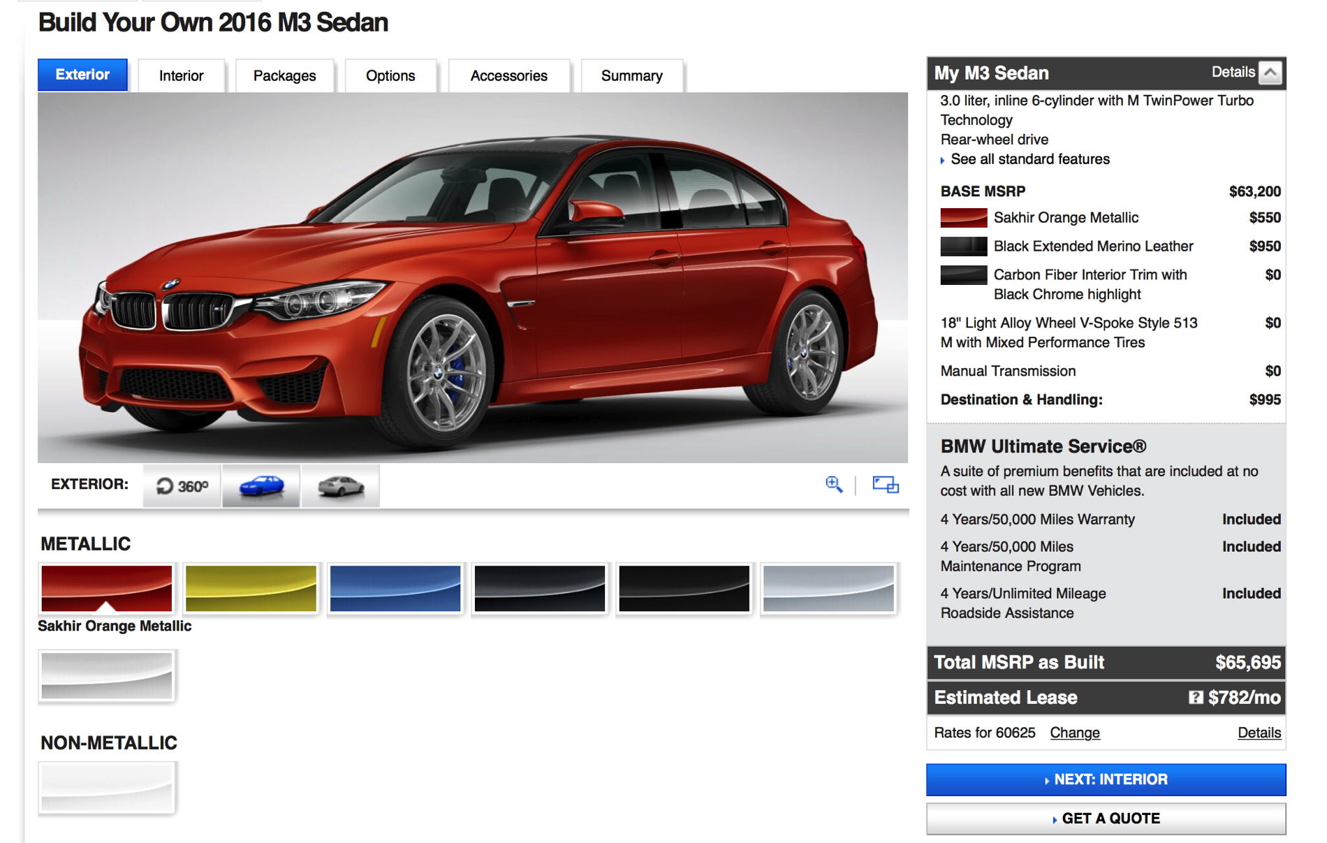 A demo version of the 2016 BMW M3 Online Configurator went live on bmwusa.com. The visual tool allows us to see the design changes brought by the M3 facelift, and also gives us the ability to see the car in different colors and trims.