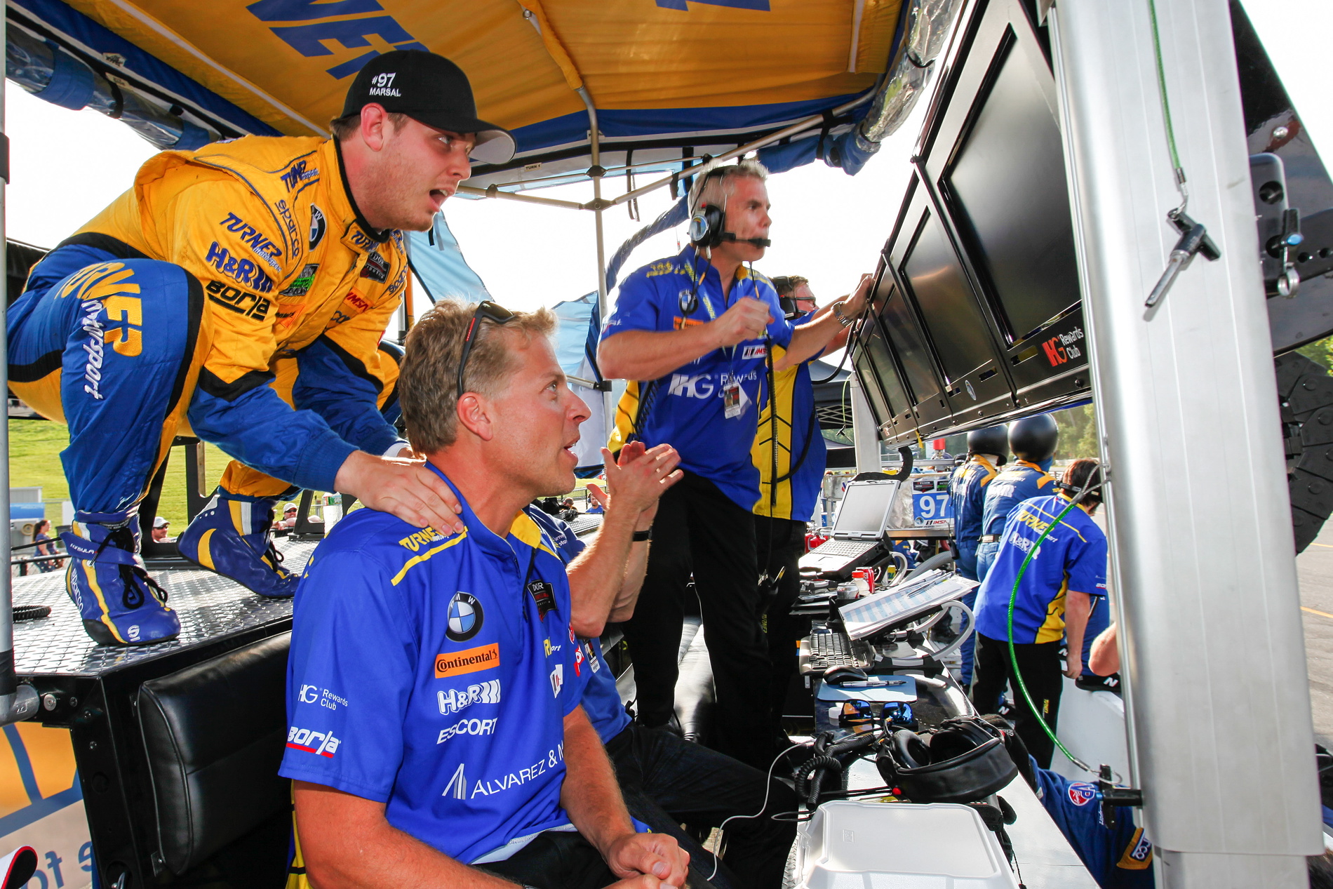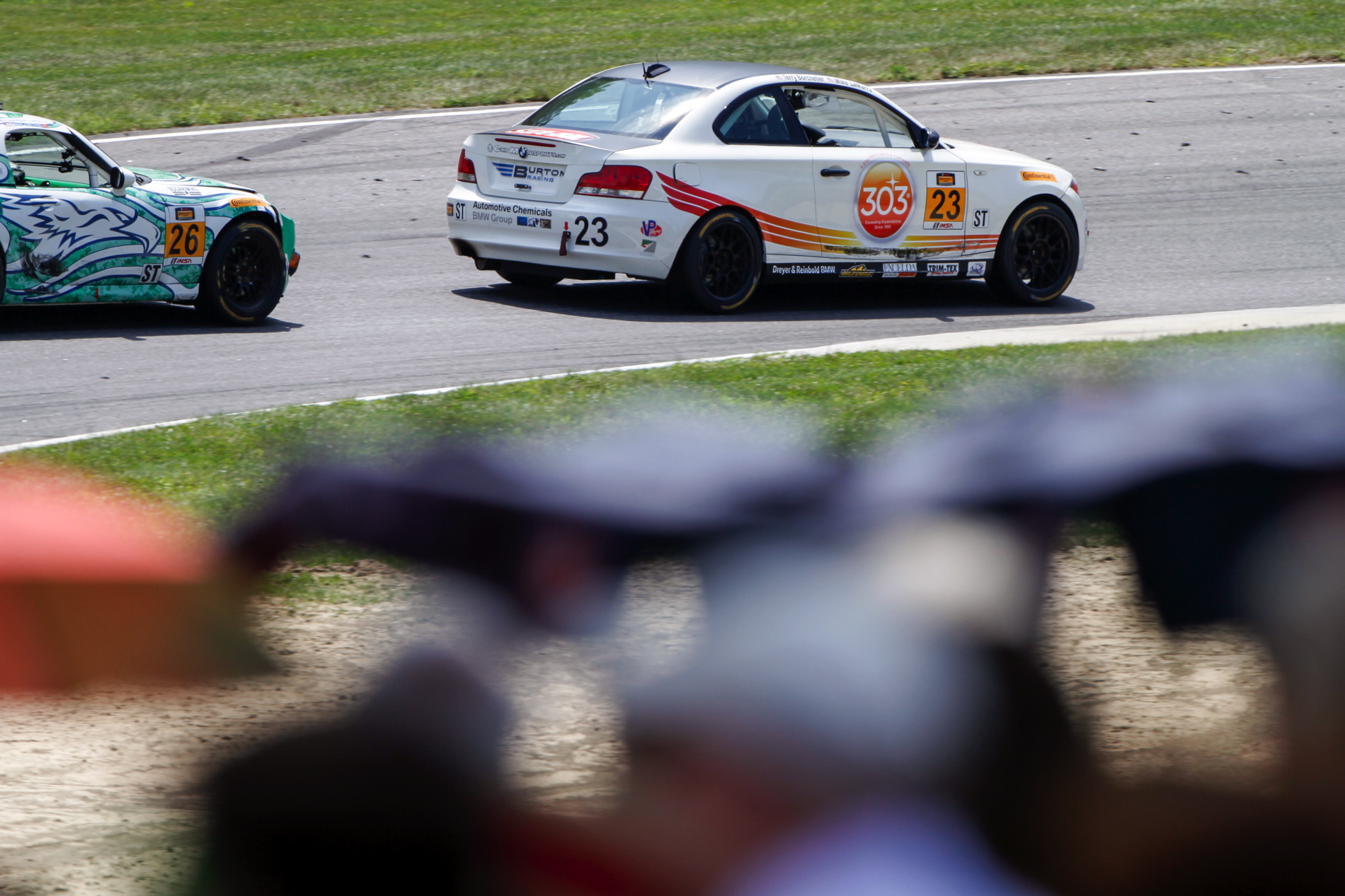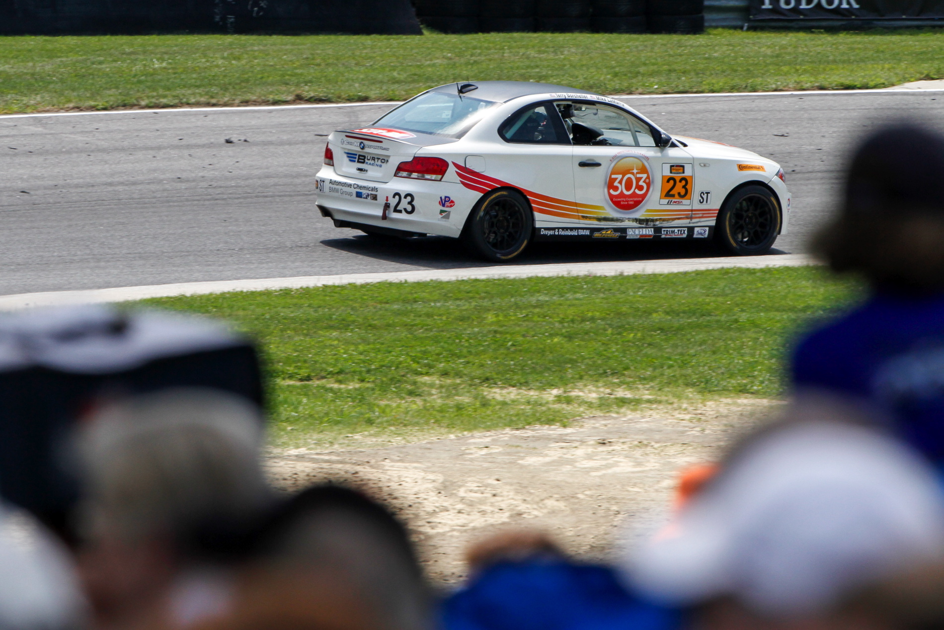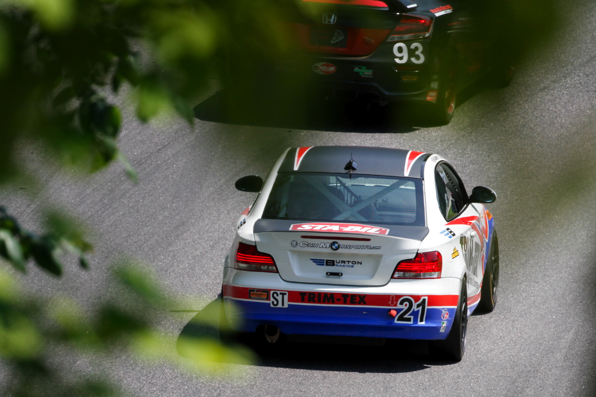 Bill Auberlen, making a guest drive in the No. 21 Burton Racing BMW 128i with BMW Team RLL teammate John Edwards, started from the eighth position. He quickly jumped to third after the restart, but dropped back almost as quickly as a suspected broken front sway bar crippled his progress around the 1.5-mile, 7-turn bull ring. Edwards took over the struggle on lap 61 with some 50 minutes remaining, ultimately finishing 22nd.