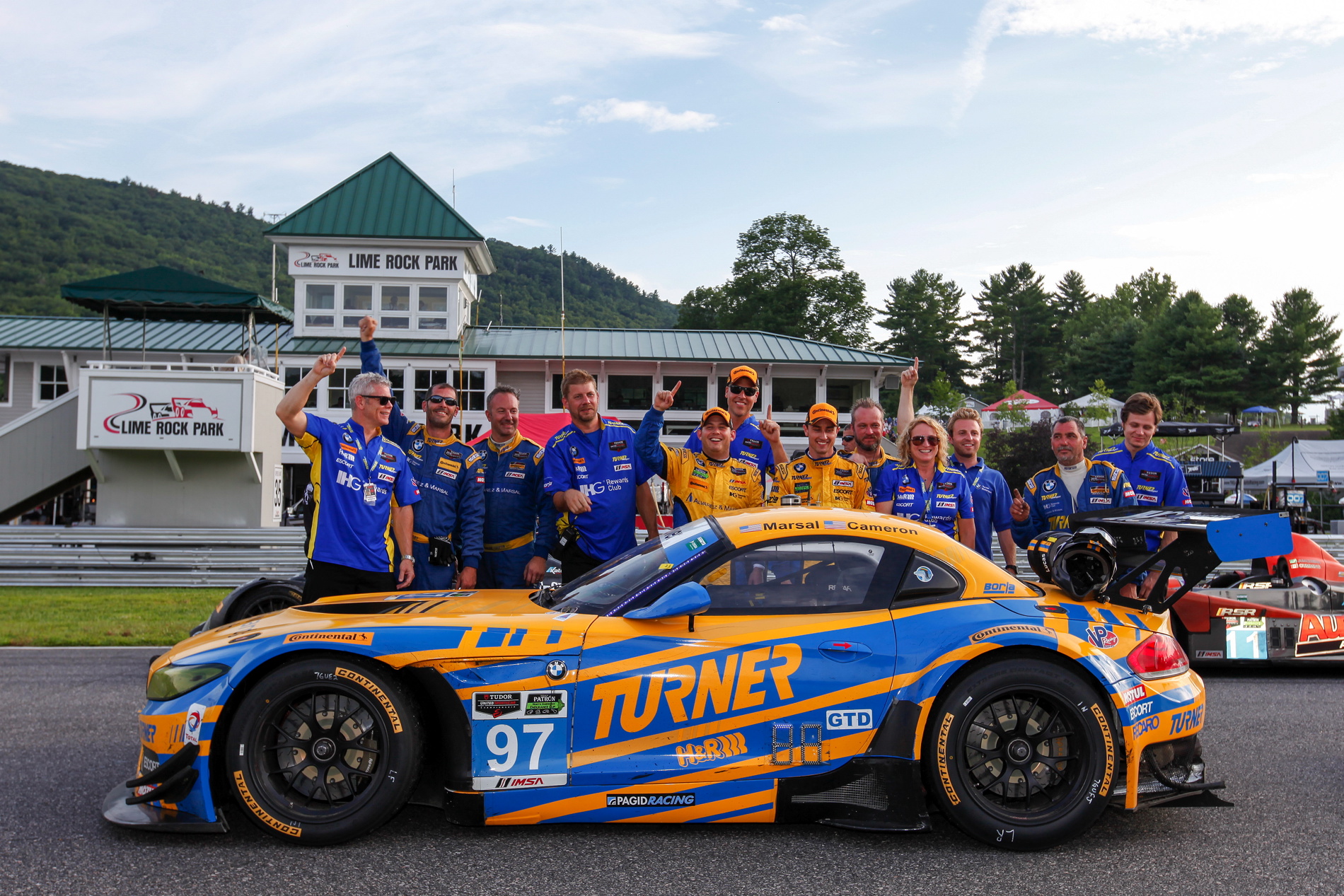 Dane Cameron and Michael Marsal, driving the No. 97 Turner Motorsport BMW Z4, scored BMW’s first GTD class victory of the 2015 TUDOR United SportsCar Championship season at Lime Rock Park, in Lakeville, Conn. The duo completed 162 laps of the 1.5-mile, 7-turn road course (the race utilized the uphill chicane) in the two-hour-and-forty-minute race, finishing 3.505 seconds ahead of the No. 33 Dodge Viper of Jeroen Bleekemolen and Ben Keating.