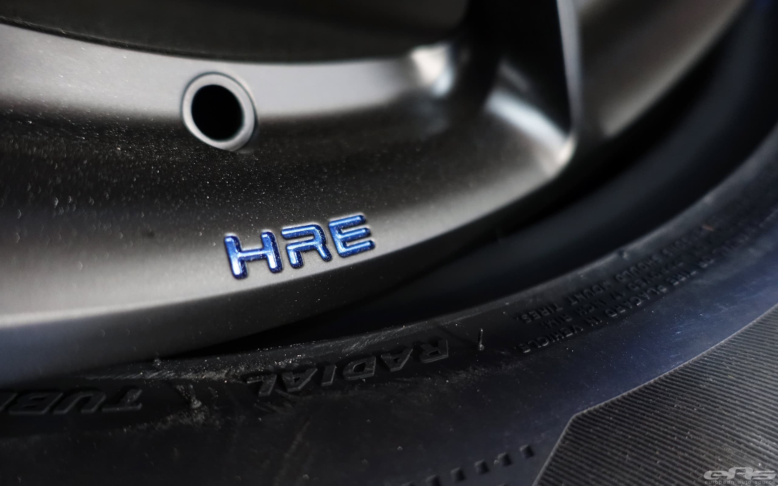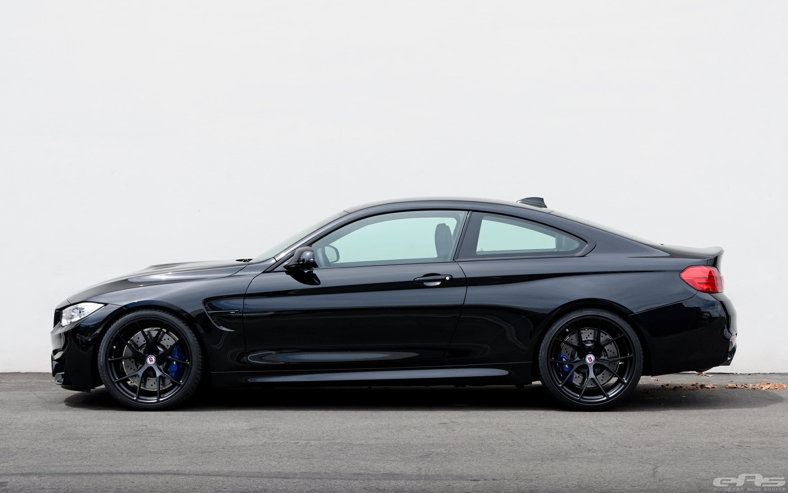 This BMW M4 is painted in the classy Black Sapphire color paired with blacked out kidney grilles and a set of HRE P101 wheels in matte black. Behind the wheels we can see an M Performance Brakes Kit with blue calipers.