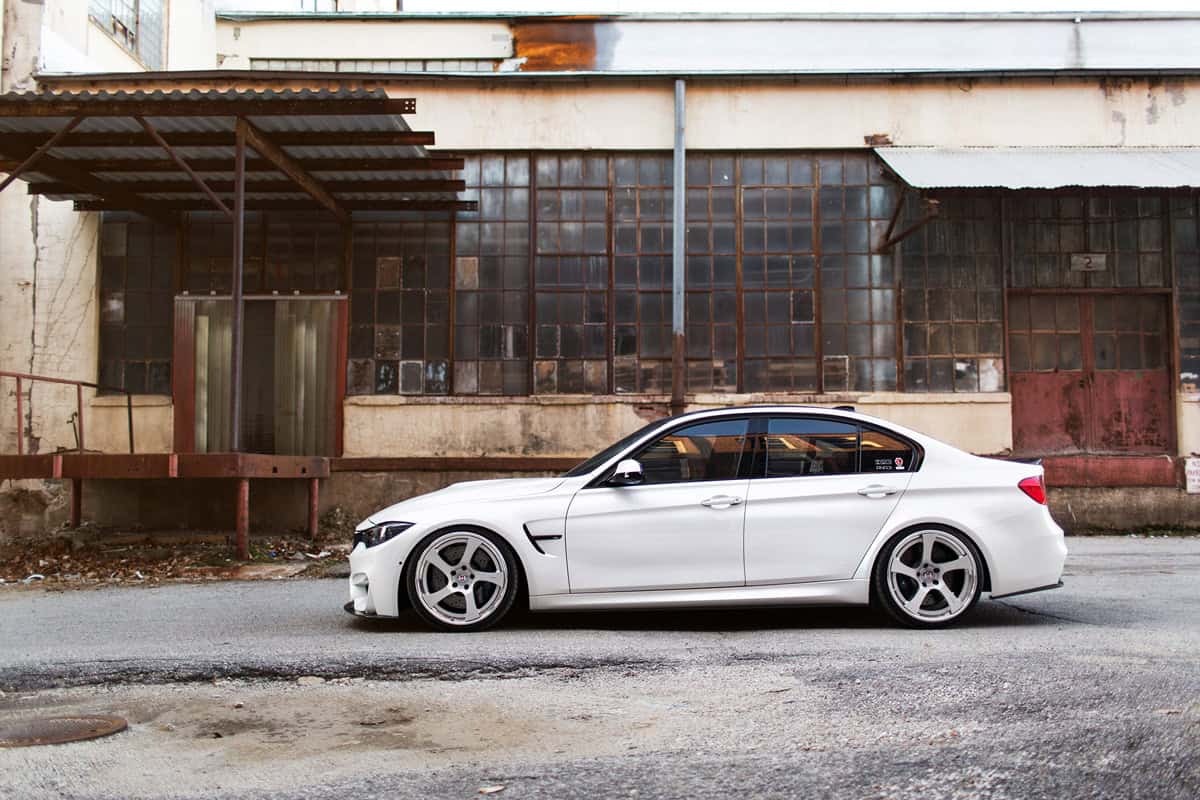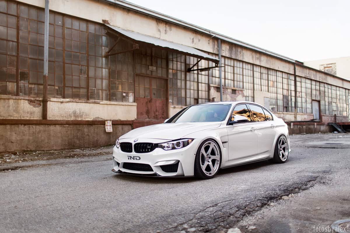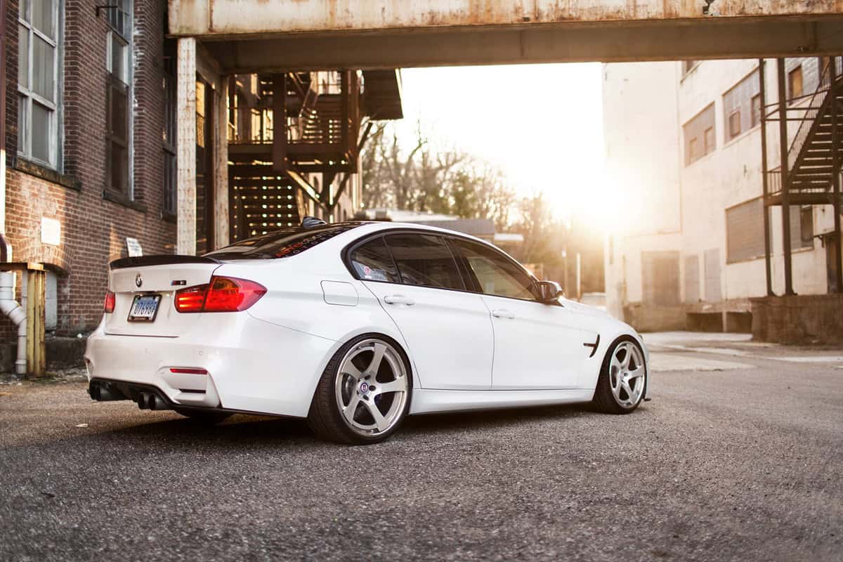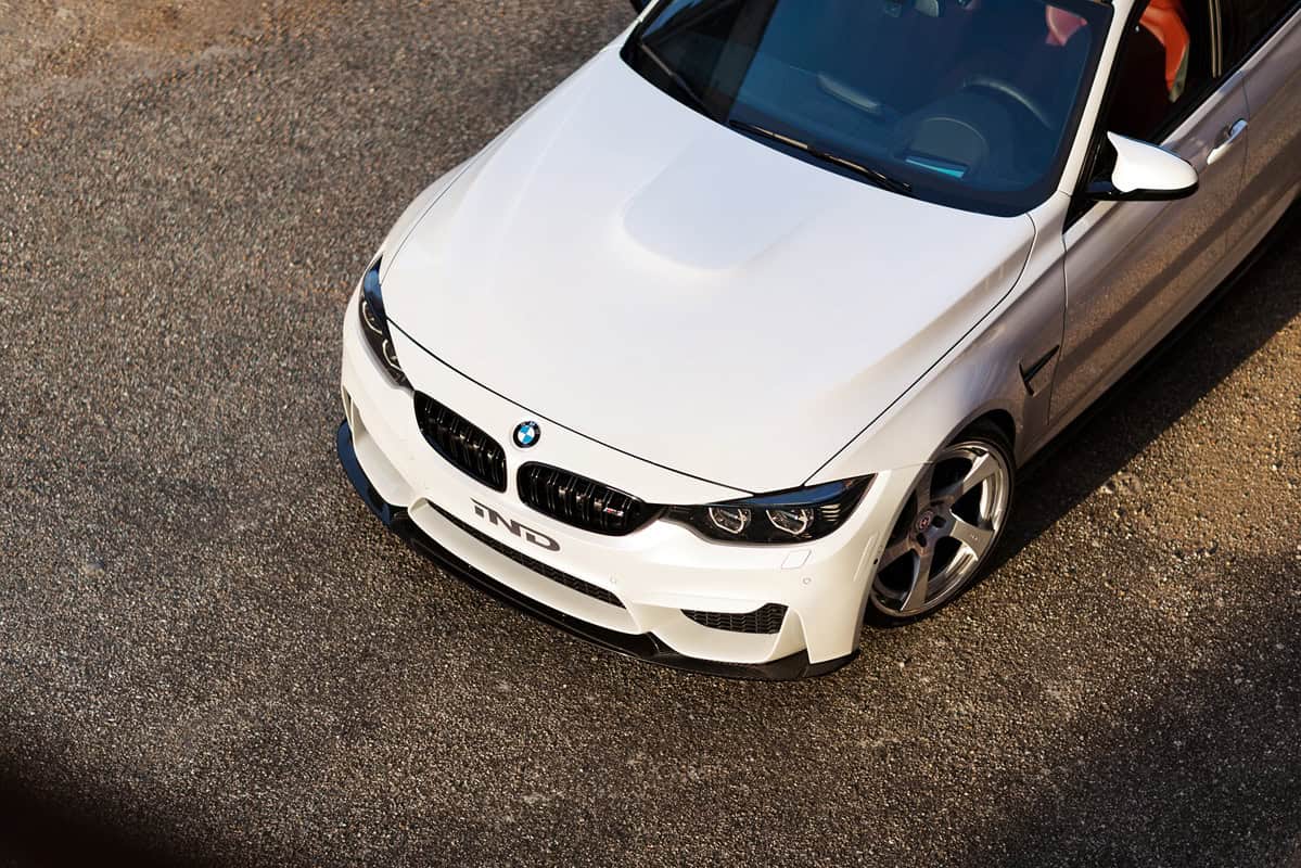 The aero parts also provide better aerodynamics while the lowering kit installed on this Alpine White BMW M3 improve the ride dynamics.