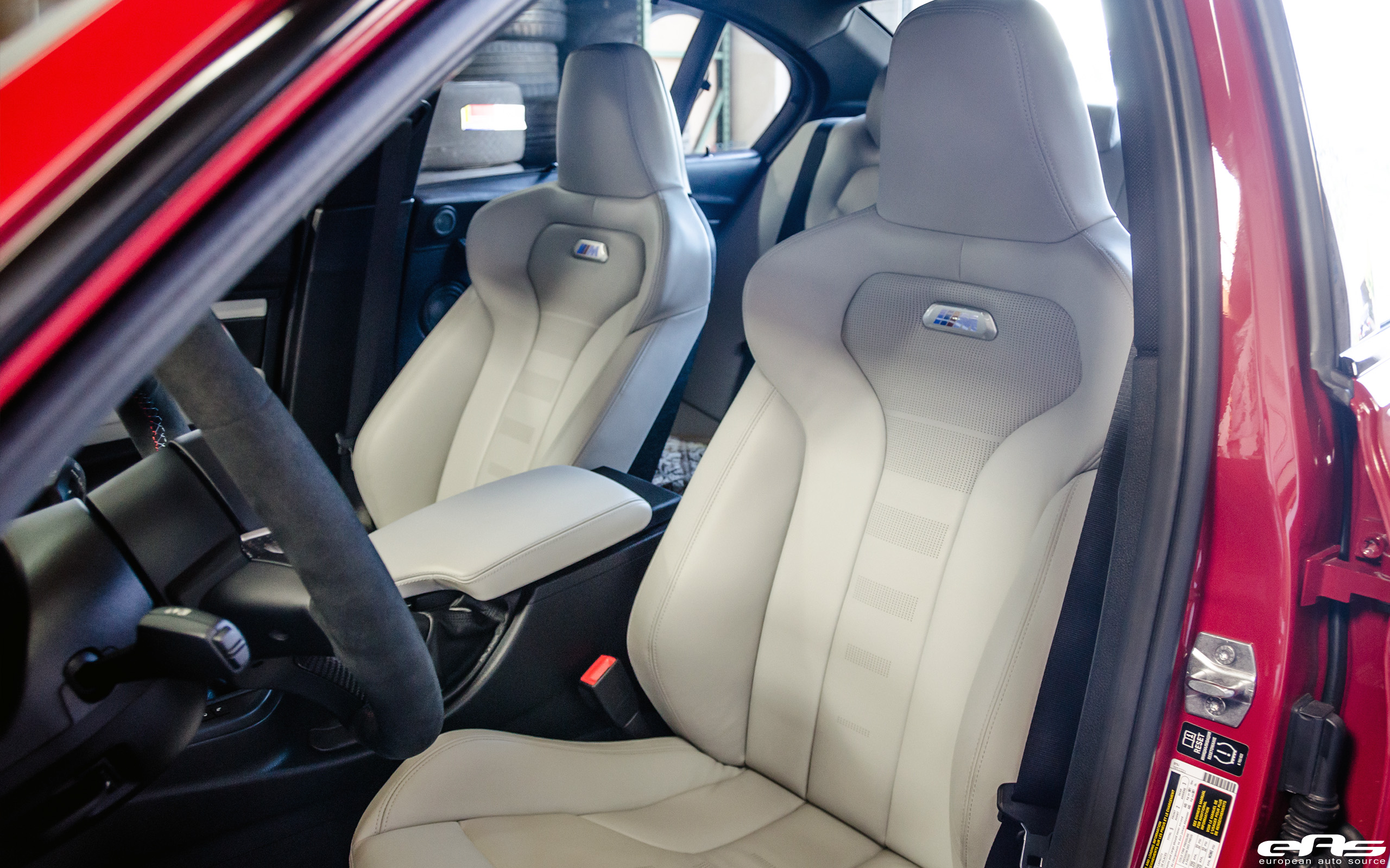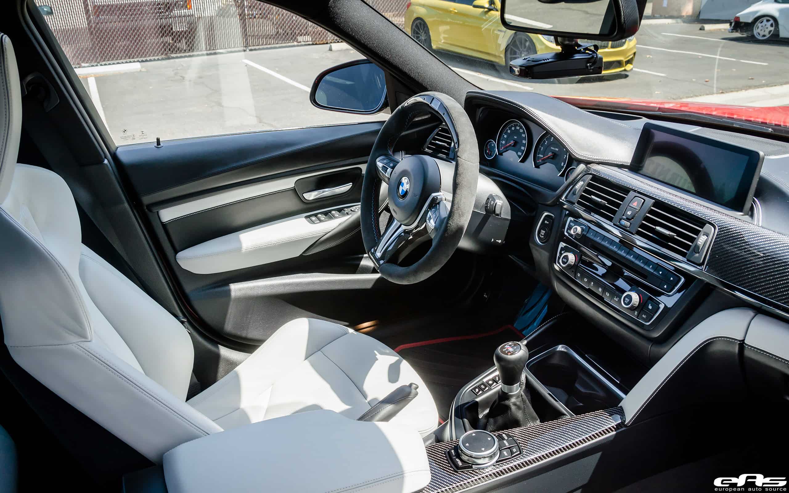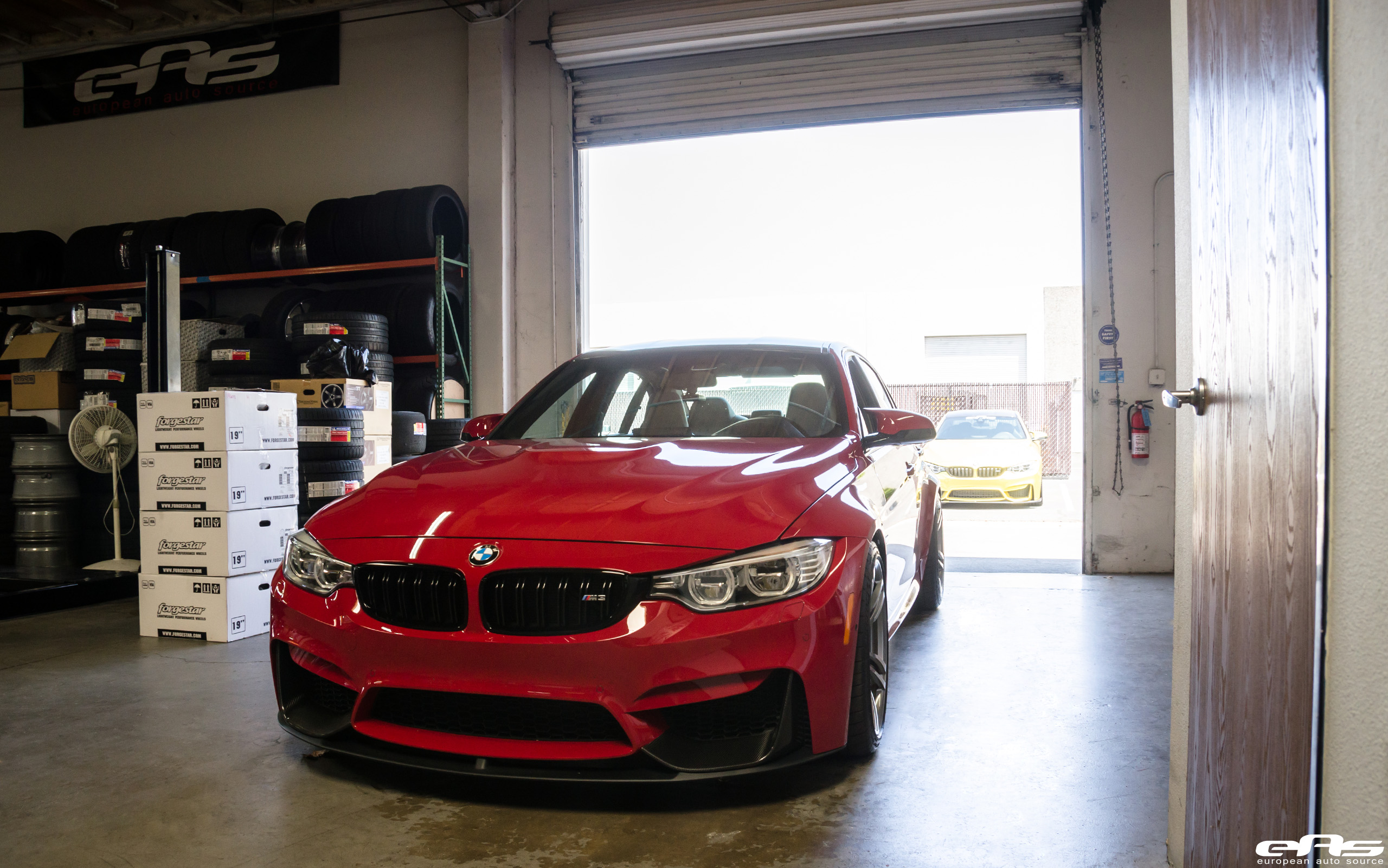 The folks at European Auto Source decided to give this Imola Red M3 a makeover, adding an aftermarket aggressive touch to match their customers’ needs. The list of modifications on this Imola Red M3 includes: BMC Performance Air Filters, BMW M Performance Carbon Fiber Splitters with Lip, BMW M Performance Electronic Steering Wheel, a BMW M Performance Gloss Black Kidney Grilles, the ESS E-Tronic ECU Tuner and Evolution Racewerks Competition Series Catless Downpipes installed.
