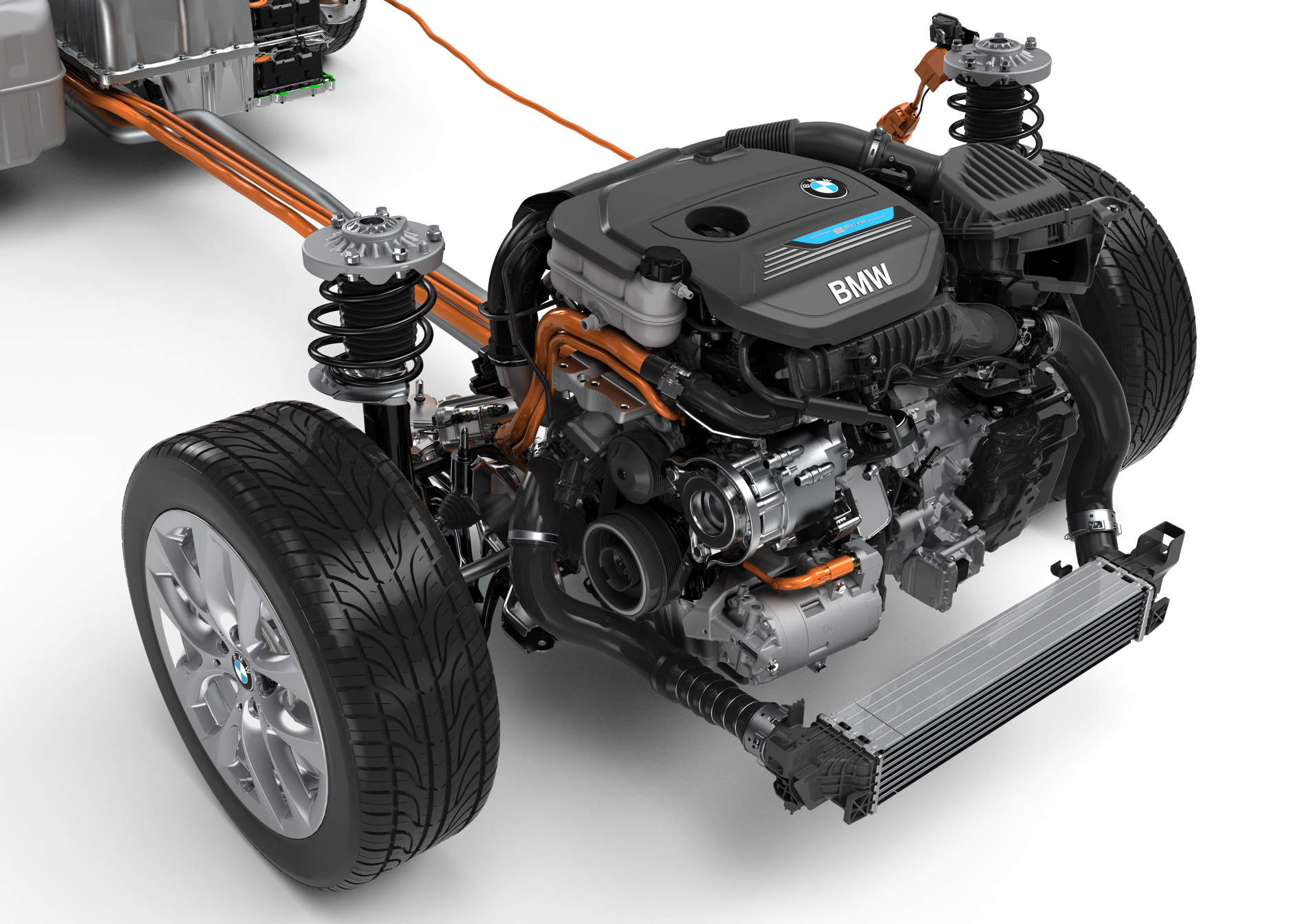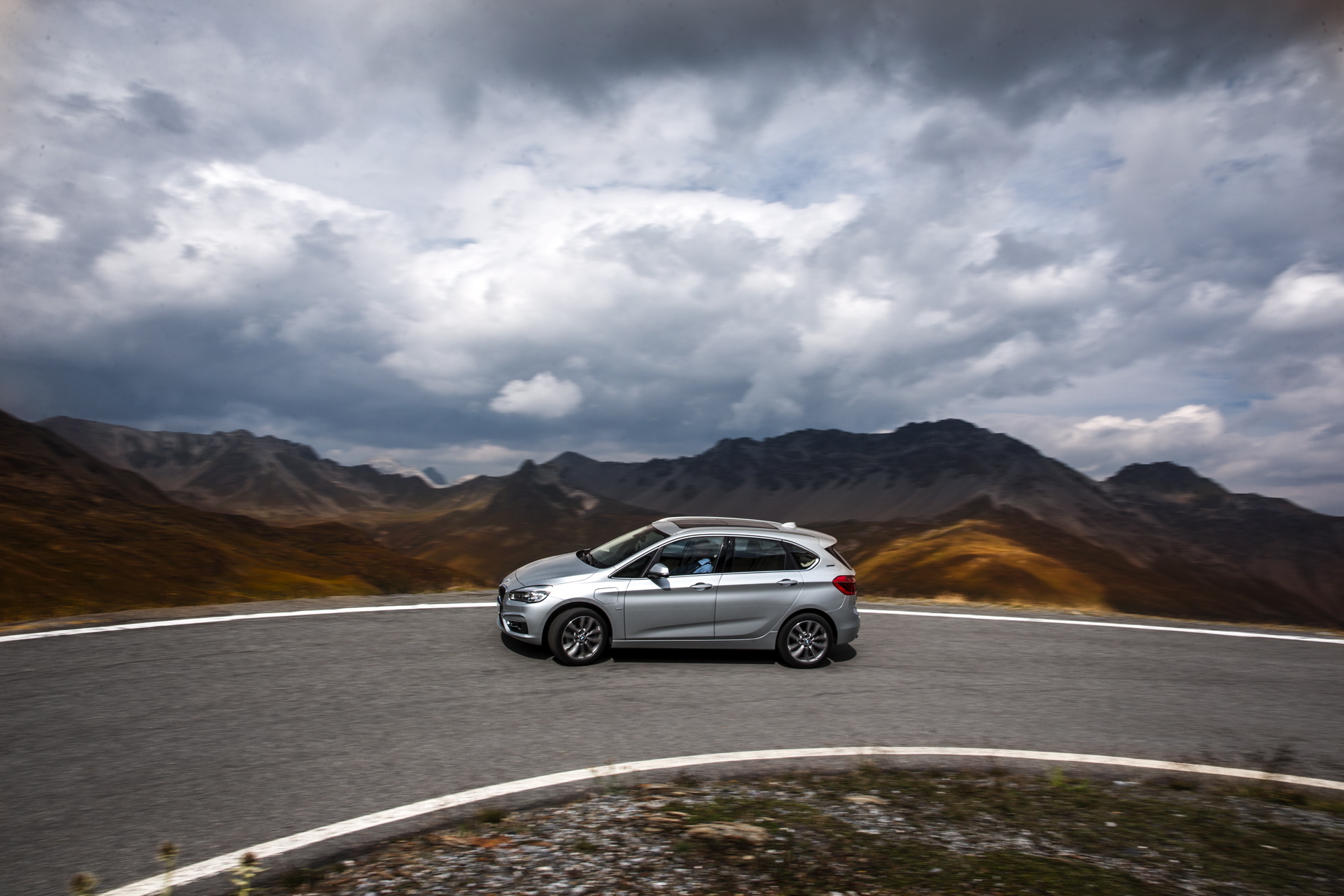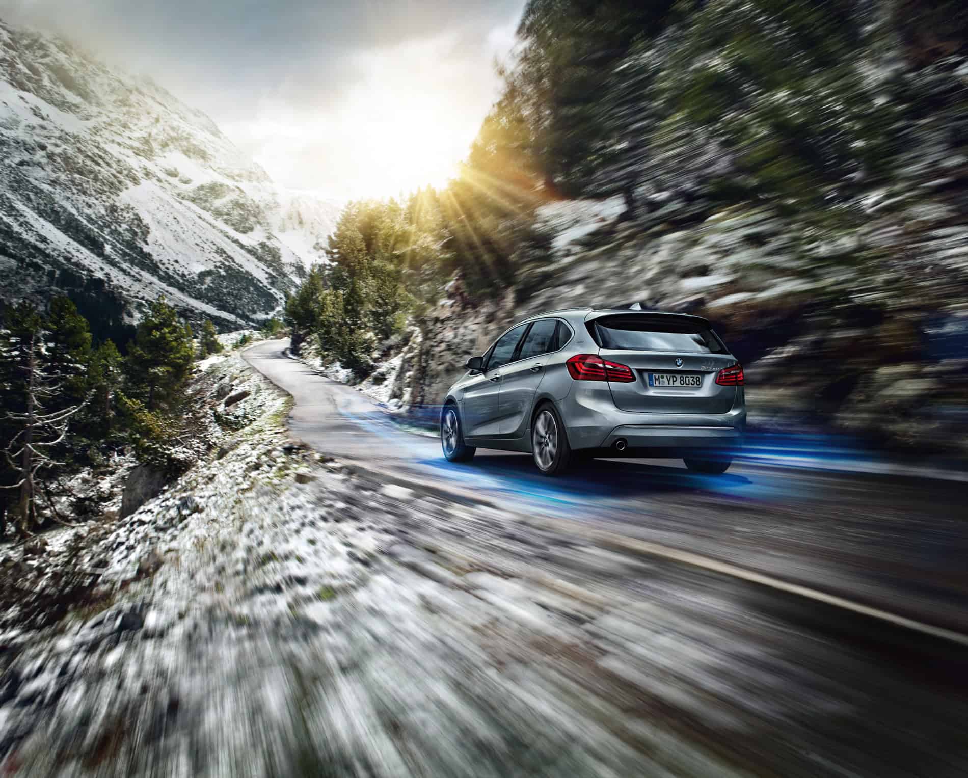 Driving the rear wheels with the electric motor and the front wheels with the combustion engine’s power furthermore produces an electrified all-wheel-drive system with great traction in all weathers, and especially in adverse conditions. The plug-in hybrid drive has an overall system output of 165 kW/224 hp. Average fuel consumption (combined) in the BMW 225xe is 2.1–2.0 liters/100 km (134.5–141.2 mpg imp), which equates to CO2 emissions (combined) of 49–46 g/km (in the EU test cycle).