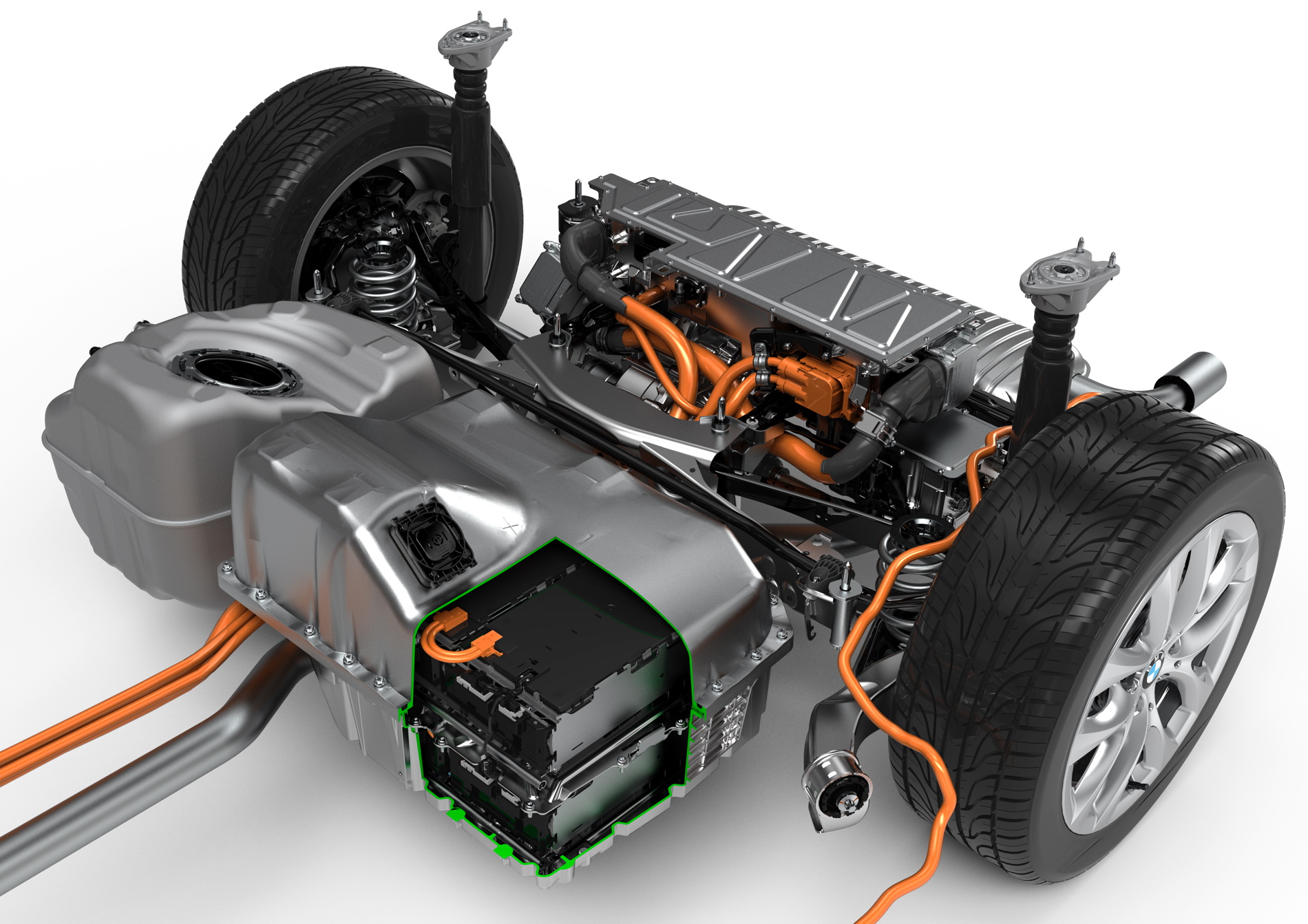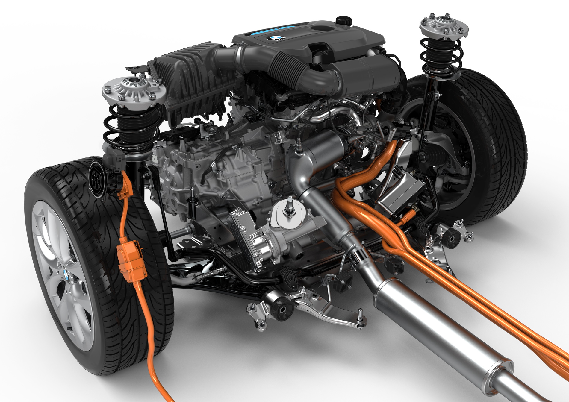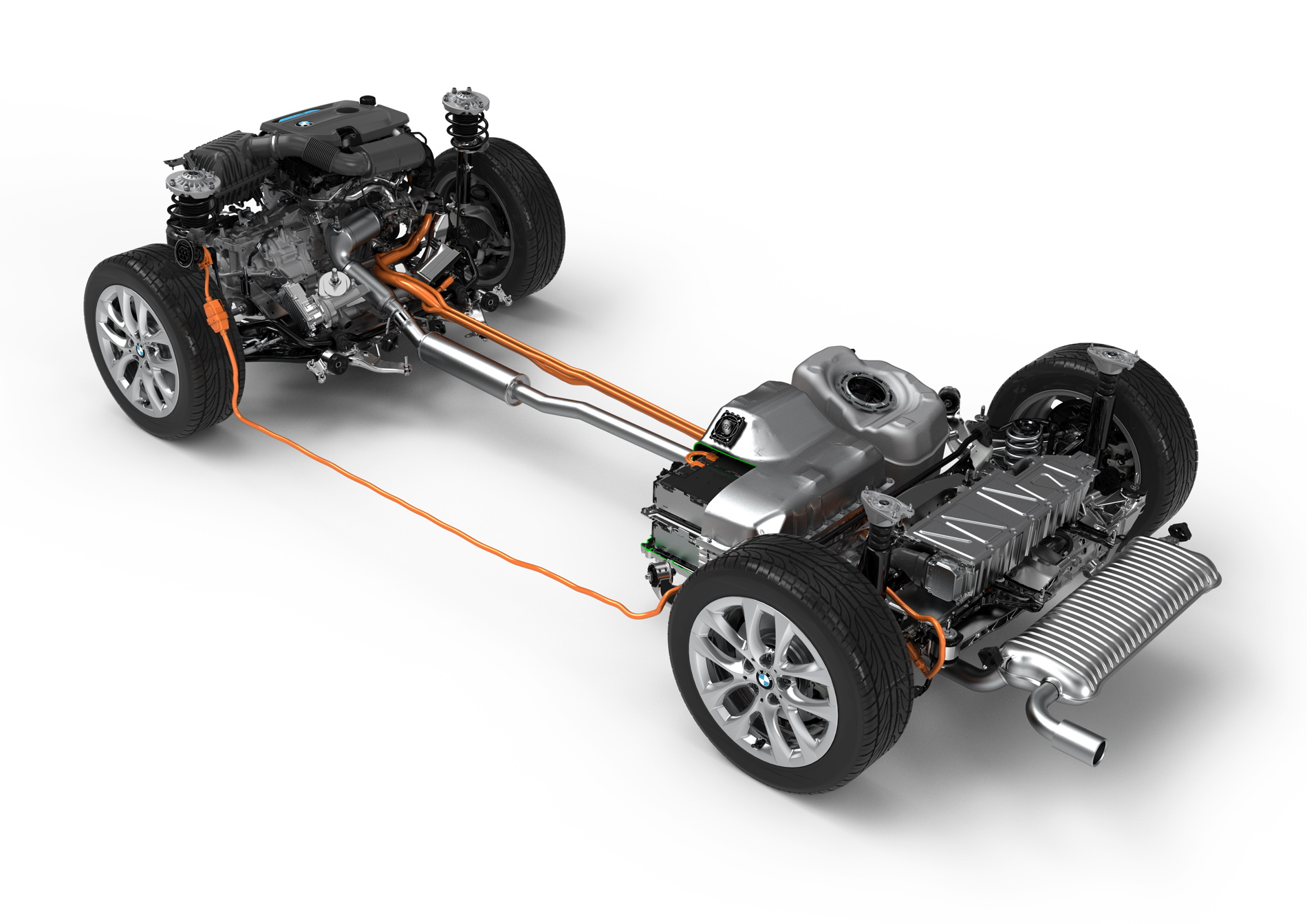 Driving the rear wheels with the electric motor and the front wheels with the combustion engine’s power furthermore produces an electrified all-wheel-drive system with great traction in all weathers, and especially in adverse conditions. The plug-in hybrid drive has an overall system output of 165 kW/224 hp. Average fuel consumption (combined) in the BMW 225xe is 2.1–2.0 liters/100 km (134.5–141.2 mpg imp), which equates to CO2 emissions (combined) of 49–46 g/km (in the EU test cycle).